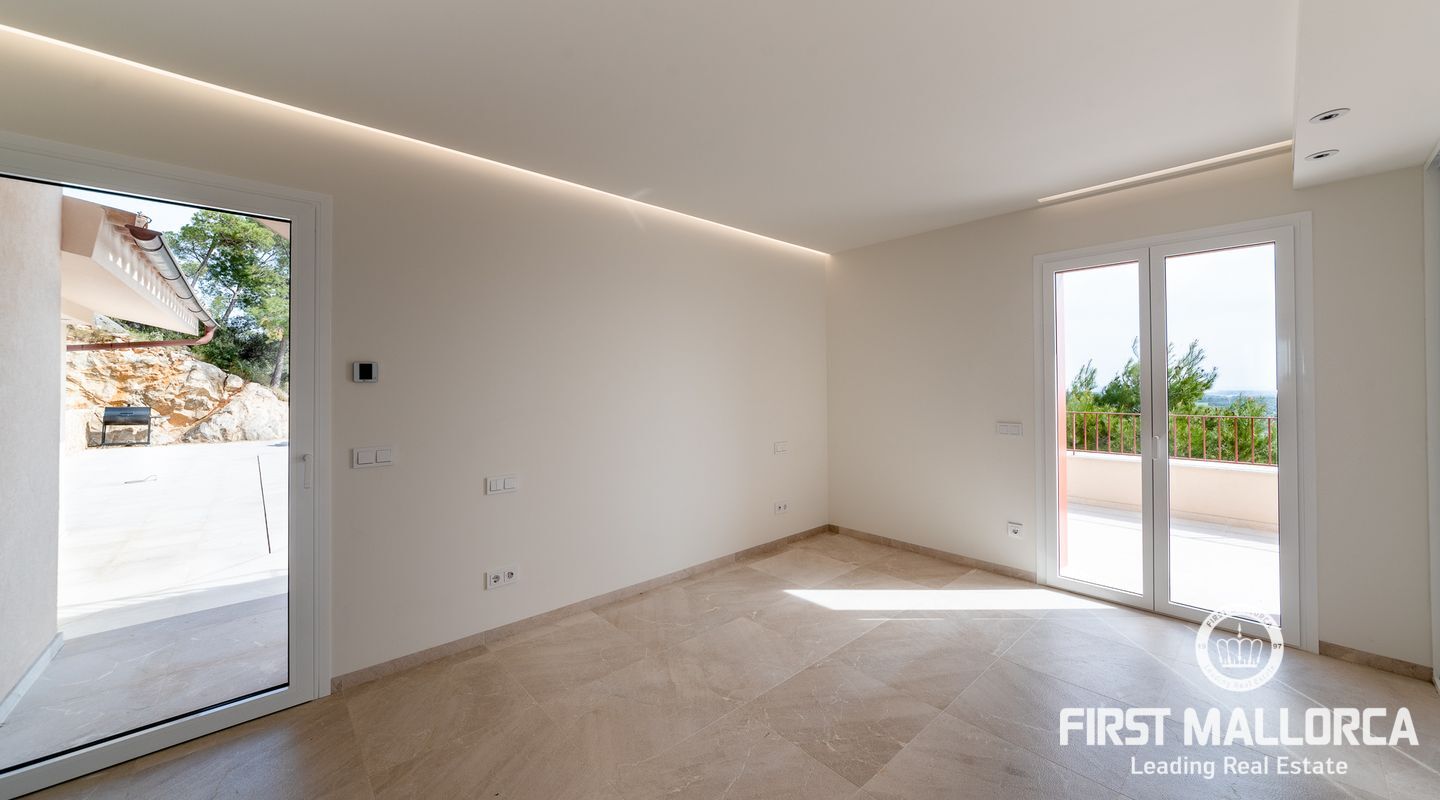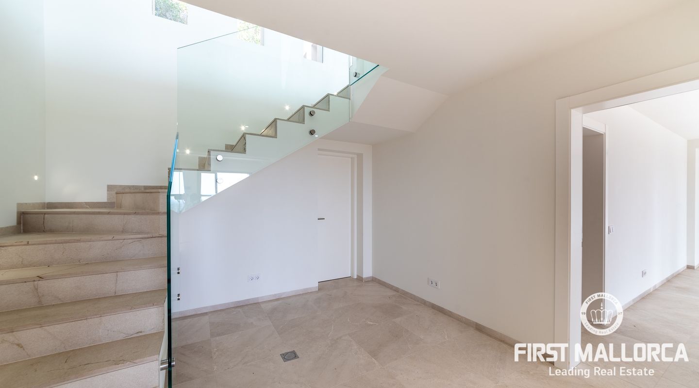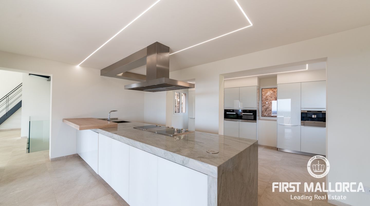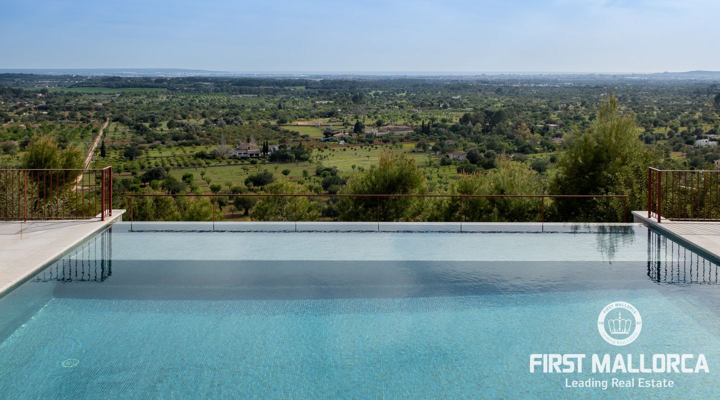 This villa of 460 sq. meters sits atop of a hill and land of 30.000 square meters and its built with the best quality materials. It is a two storey house. On the main level you have 3 double bedrooms with bathrooms 3-en suite plus a walk-in closet, guest room, garage for 3cars, utility room, barbecue-kitchen in the pool area with an outdoor bathroom. On the upper floor large living/dining area, kitchen with great quality brands, master bedroom with bathroom en suite plus a walk-in closet, guest toilet.