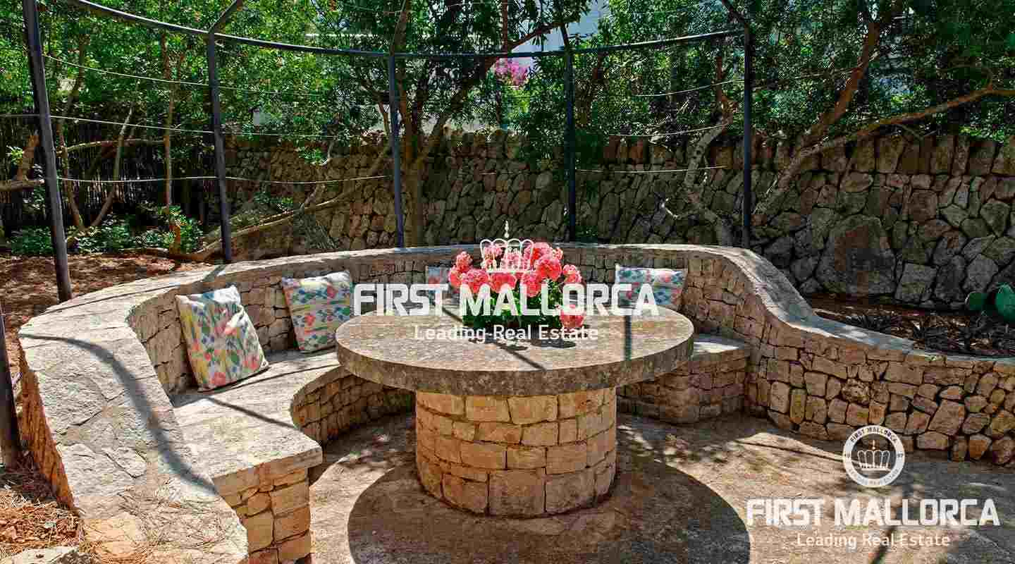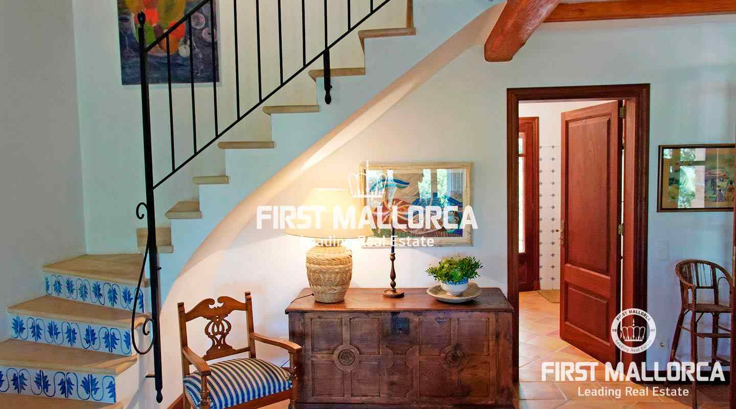 This charming finca, enjoying a tranquil and private location at the end of a cul-de-sac, is set in 3,217 m² of peaceful gardens with mature trees, which borders on one side with a nature reserve and on the other side with an exclusive residential area above the beach of Cala Santanyí.