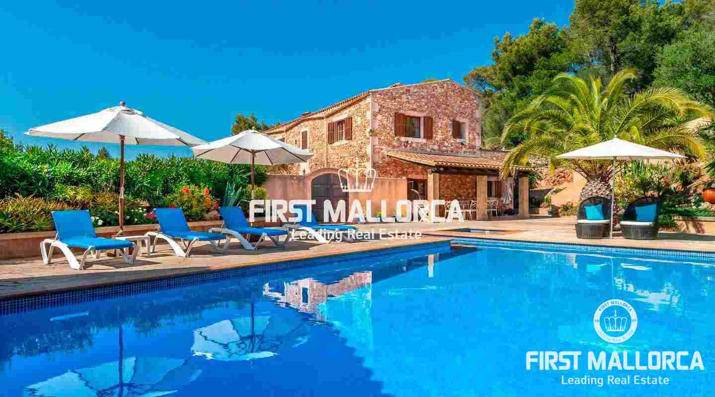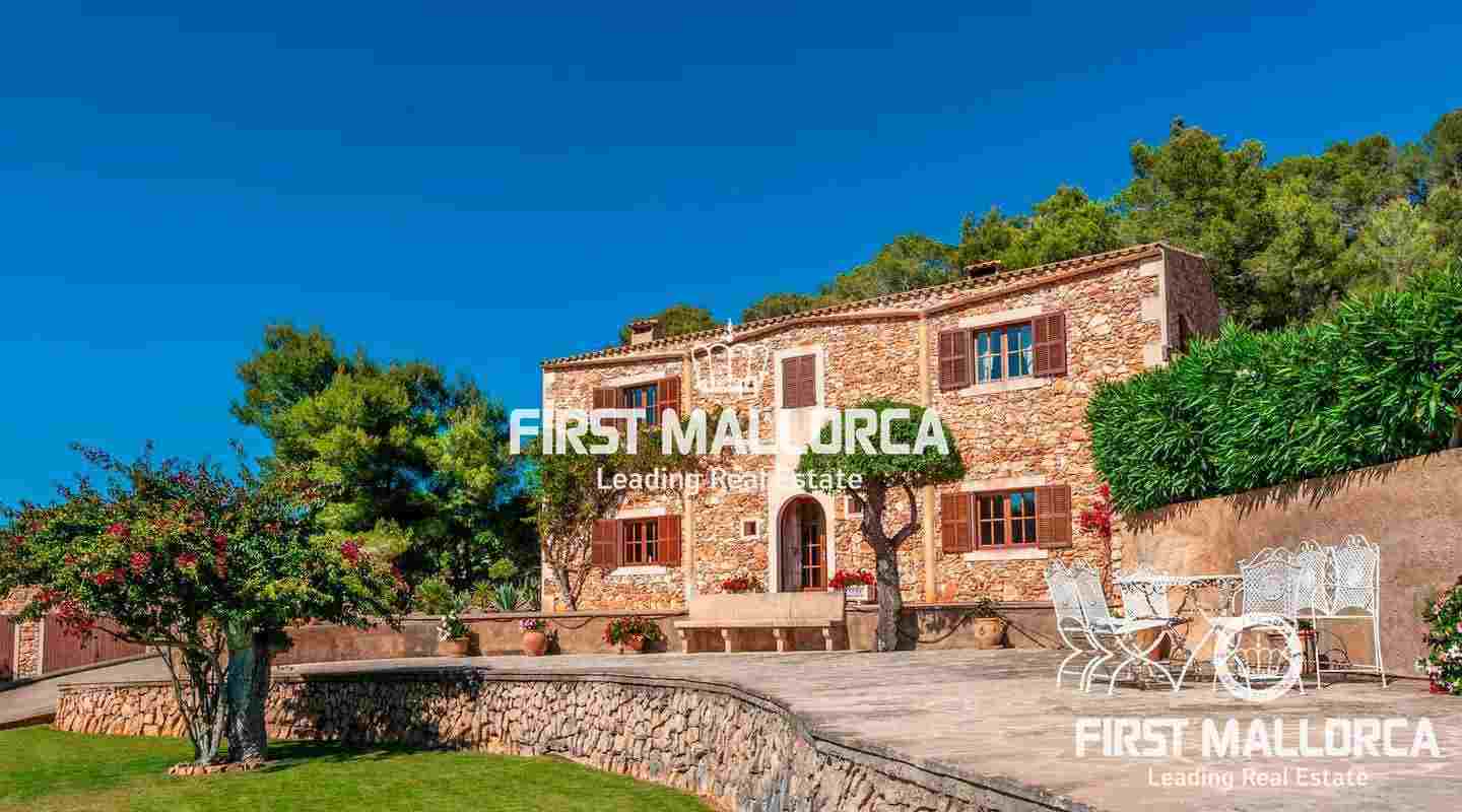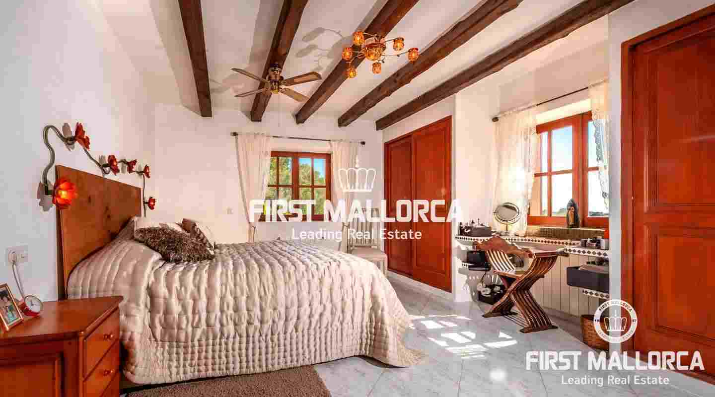Further facilities include a spacious double garage, storage rooms and oil central heating. Thanks to traditional features such as the natural stone facade, delightful wooden doors and beams, the finca has a unique character. The famous village of Santanyí, beautiful bays, the natural Es Trenc beach as well as several harbours are only a short drive away.
