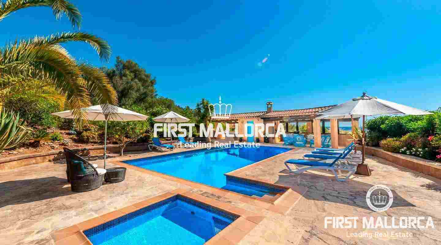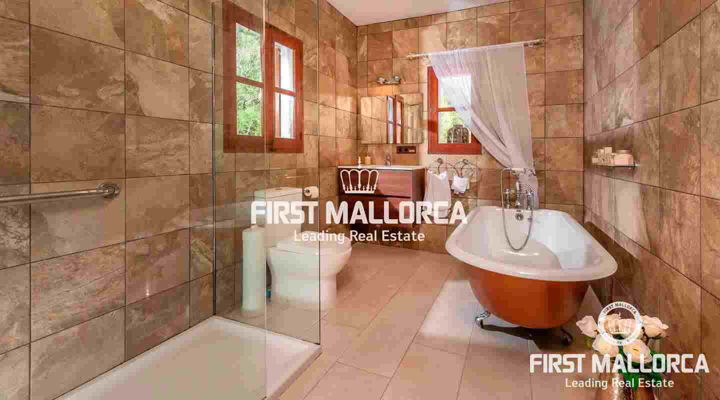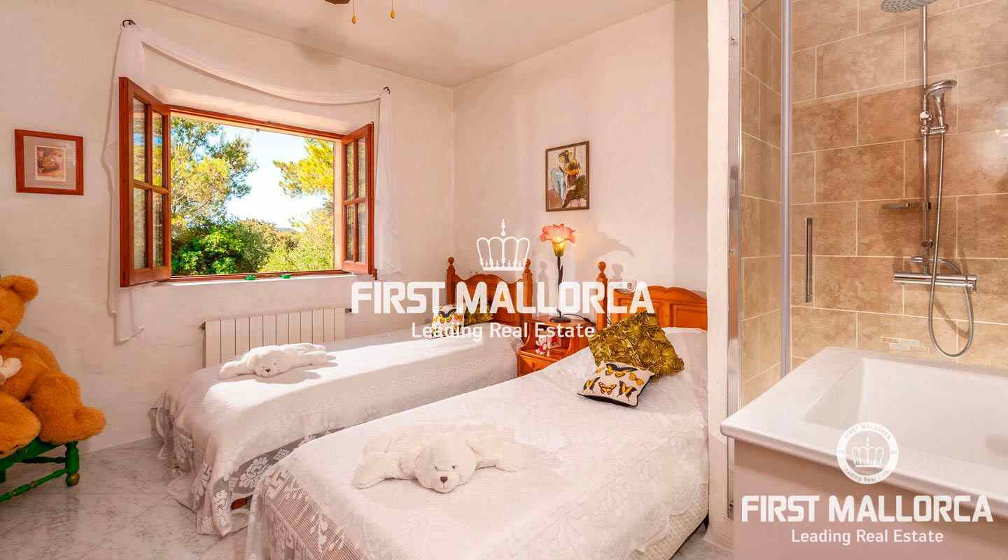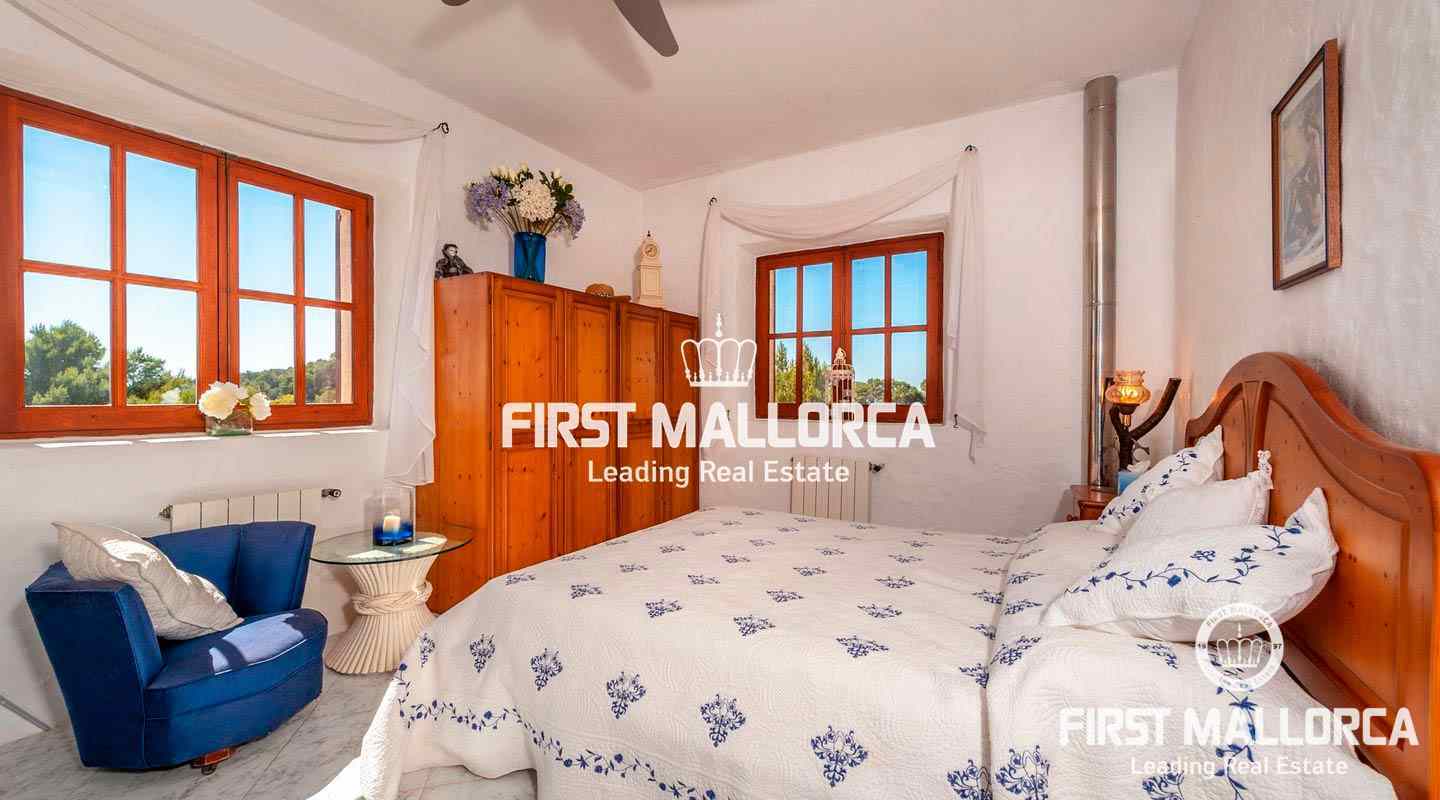 Further facilities include a spacious double garage, storage rooms and oil central heating. Thanks to traditional features such as the natural stone facade, delightful wooden doors and beams, the finca has a unique character. The famous village of Santanyí, beautiful bays, the natural Es Trenc beach as well as several harbours are only a short drive away.