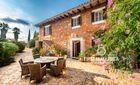 The building dates back to the 18th century and impresses with its strong brickwork and classic ceiling beams. On a constructed area of 619 m², the property has 5 bedrooms, 4 bathrooms and 3 living rooms. Features include oil central heating, air conditioning in the bedrooms and 2 fireplaces. In addition, there are 2 garages and a covered barbecue area, perfect for dining al fresco.