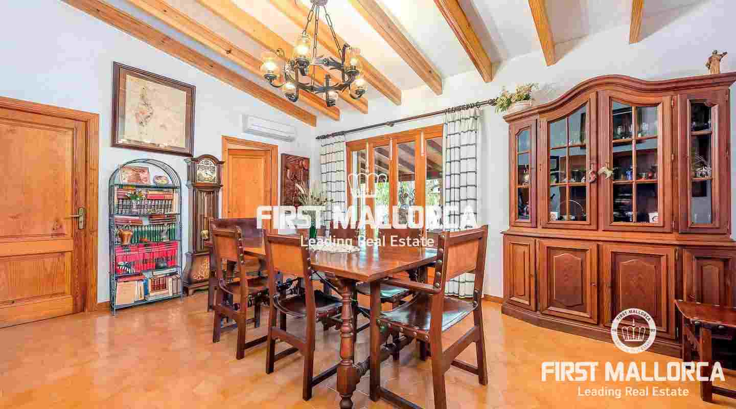 This traditional Mallorcan country house is located on 24,144 m² of land on the edge of Lloseta, in the centre of the island. A charming wooden door gives access to the main living area on the ground floor, comprising 3 bedrooms, 2 bathrooms, a dining room, a kitchen with pantry and a living room with fireplace. In addition, there is another bedroom and a bathroom on the upper floor.