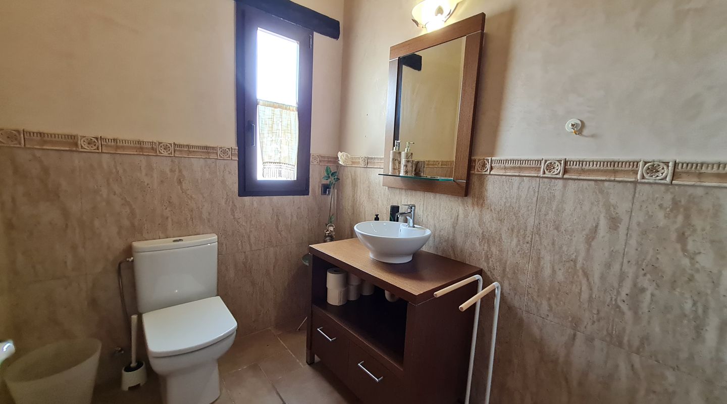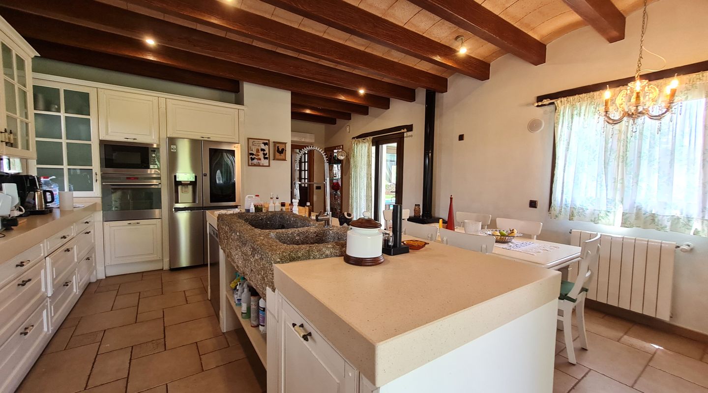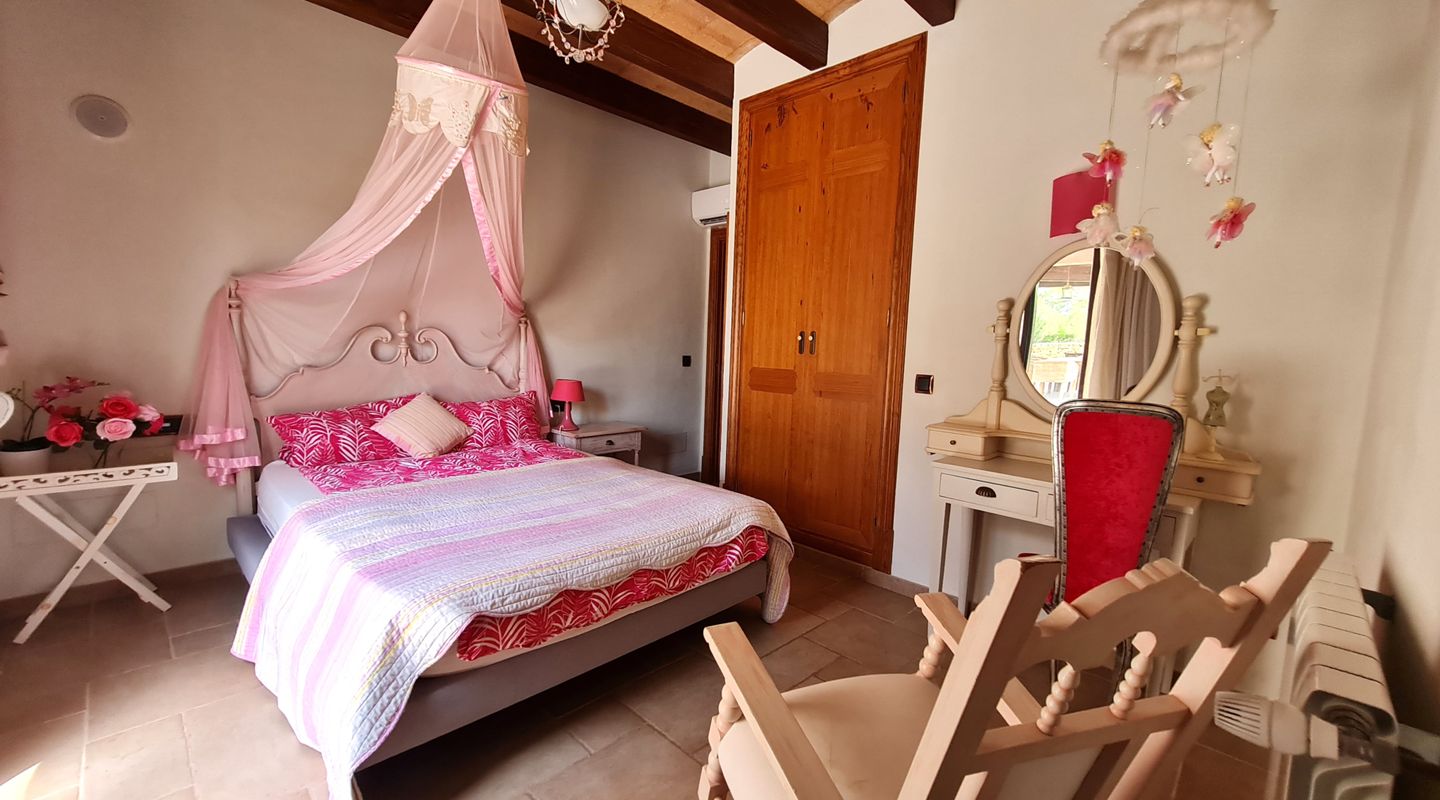 The house is built with the traditional materials of this type of property: ceramic tiled floors, stone walls and exposed wooden beams. It combines modern comfort with rustic charm, offering air conditioning, radiator heating, as well as fireplaces in the main living room and the master bedroom upstairs.