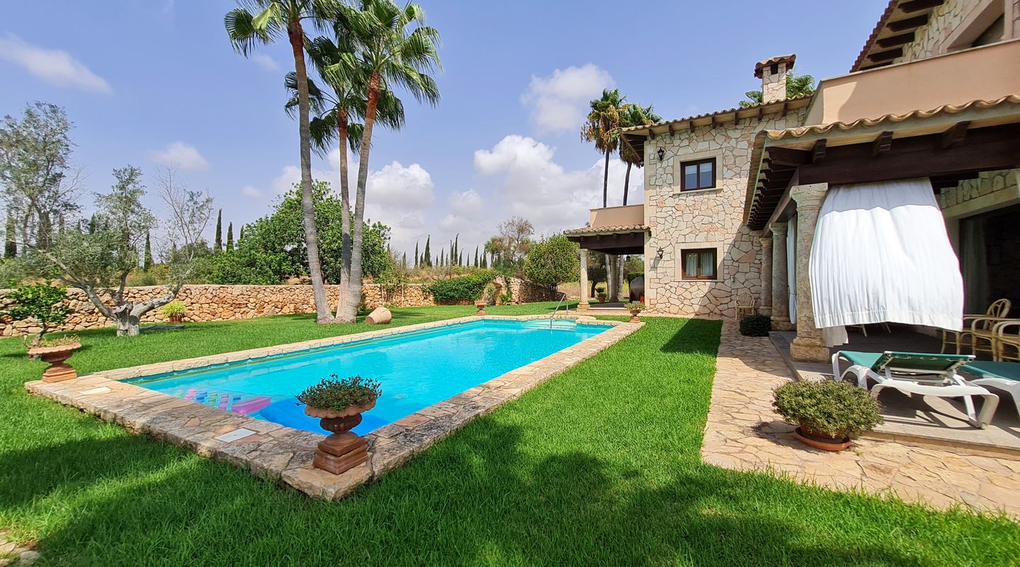 Beautiful Mallorcan finca, showcasing all the Mediterranean character typical of the houses in this part of the island. Located between Llucmajor and S’Estanyol, this charming property features 6 bedrooms and 6 bathrooms, three of them en suite, distributed over two floors. The separation between day and night areas provides the home with excellent functionality. A special mention goes to the spacious kitchen with island and natural stone sinks, full of character.