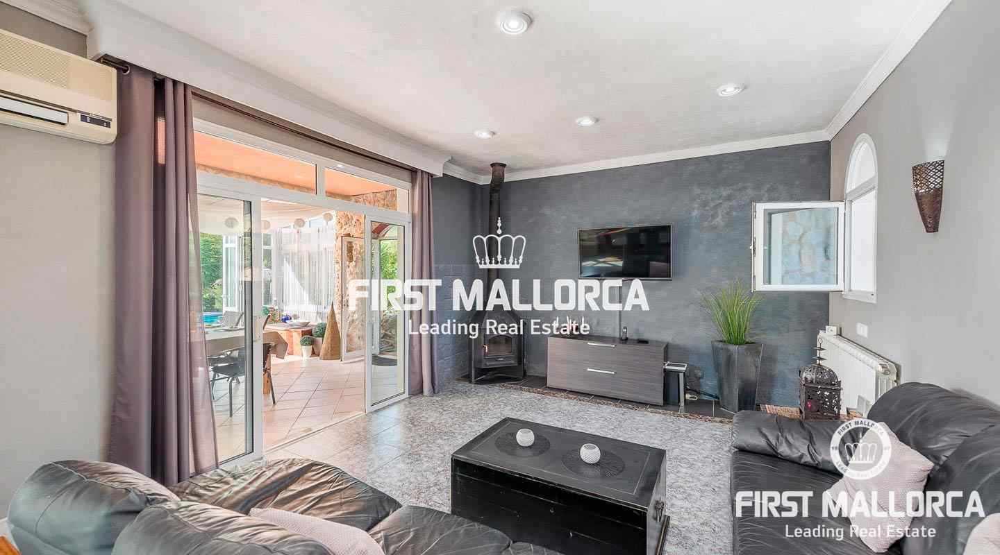 This very charming and spacious stone villa is located near the golf course of Puntiro, only 20 minutes away from Palma. On the ground floor there is the large living-dining area, which adjoins the light-flooded winter garden, the cosy living-kitchen, a bedroom and a bathroom. Upstairs there are two more bedrooms and two bathrooms, one of them en suite. The master bedroom also has its own terrace with a fantastic view. The beautifully landscaped garden has many covered terraces and idyllic spots to relax. A wonderful place close to Palma.
