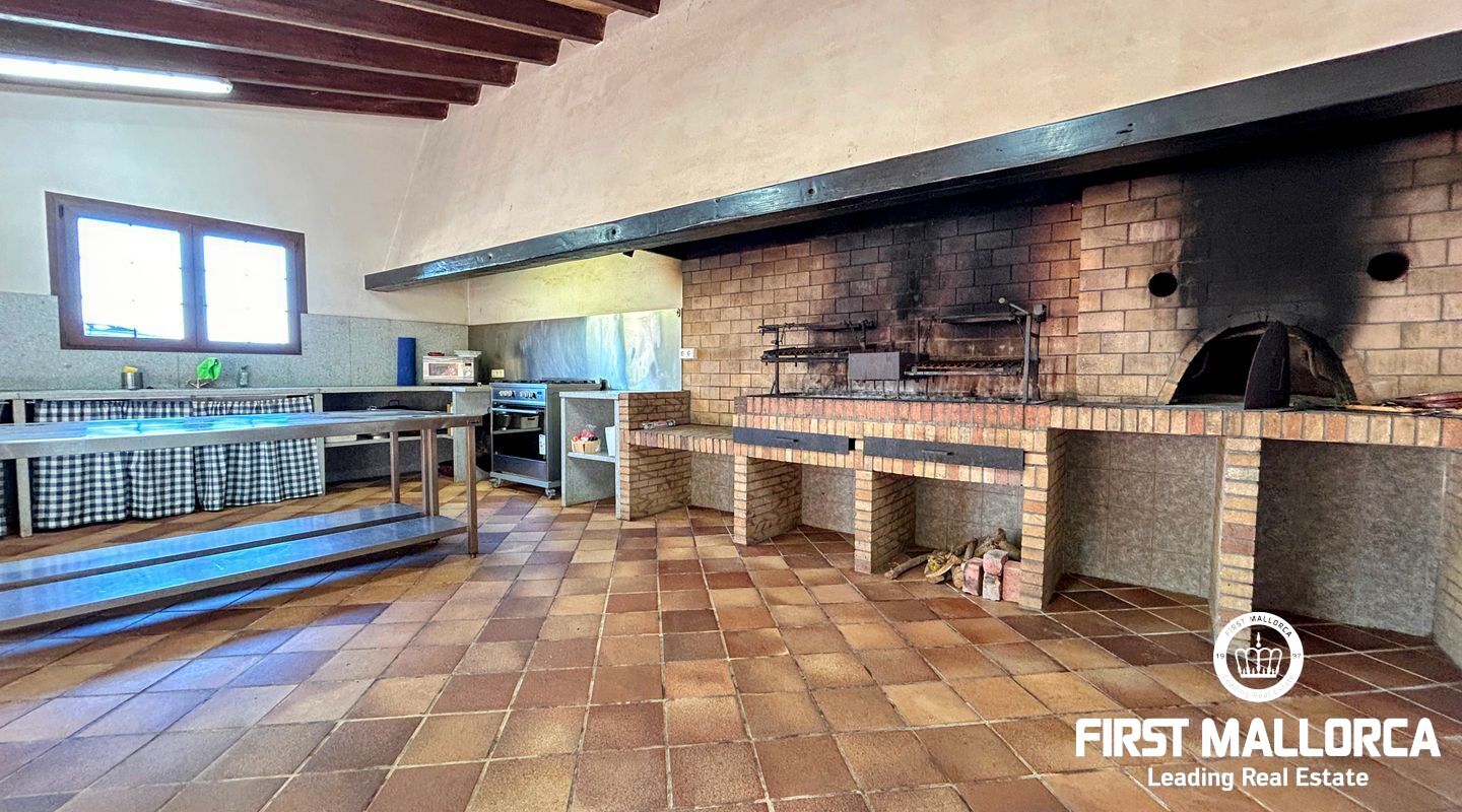 Notable features and amenities of the finca include a substantial second kitchen measuring 79 m², equipped with a traditional wood oven. The property also boasts a delightful swimming pool of approximately 77 m², situated on a sun-drenched terrace, with two storage rooms conveniently located beneath. Additionally, there are three covered porches measuring 32 m², 32 m², and 48 m², offering versatile outdoor living spaces. An extra room is available, which can be easily converted into a sixth bedroom. A third spacious bathroom is accessible from the large porch, along with a dedicated machinery room housing the heating system.