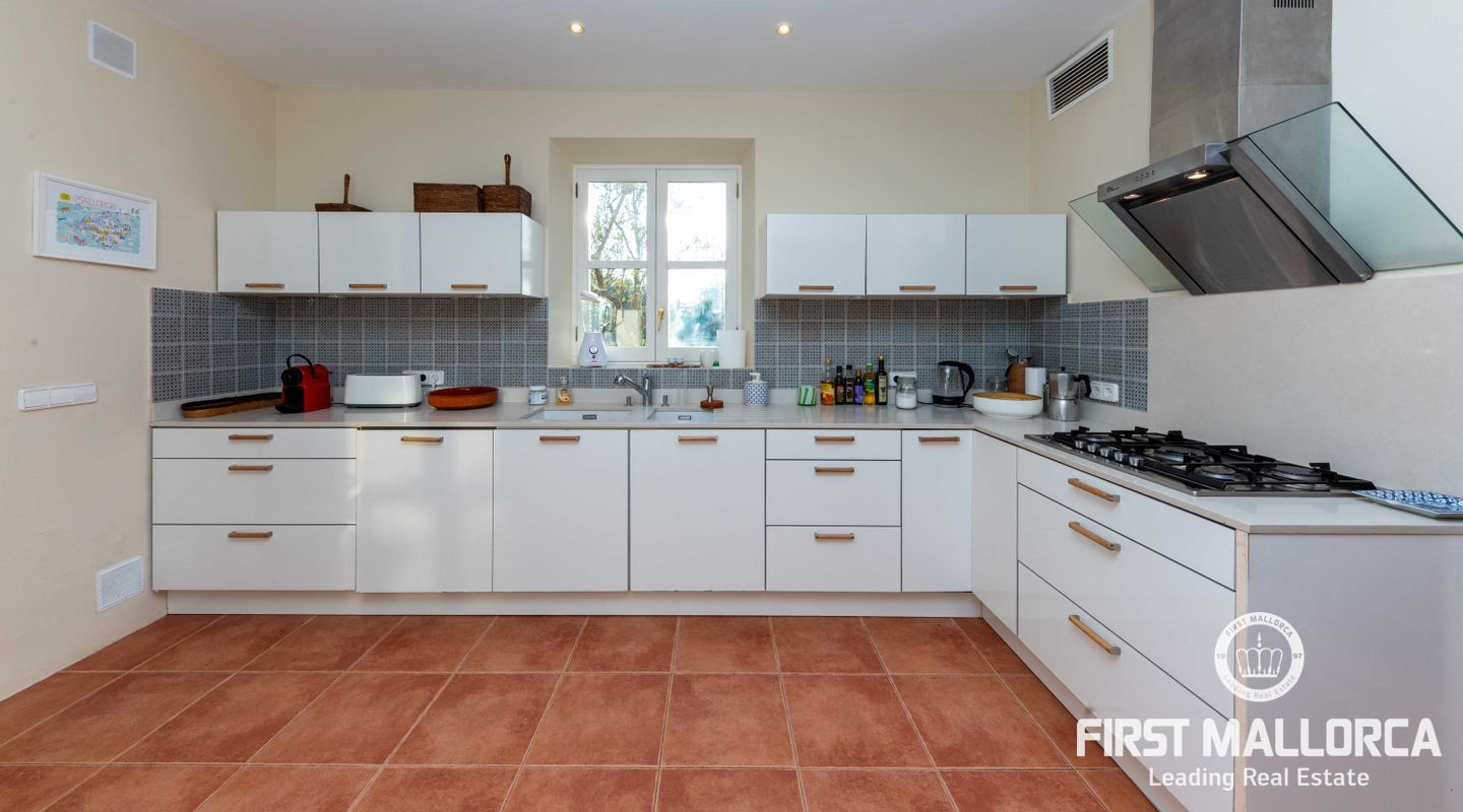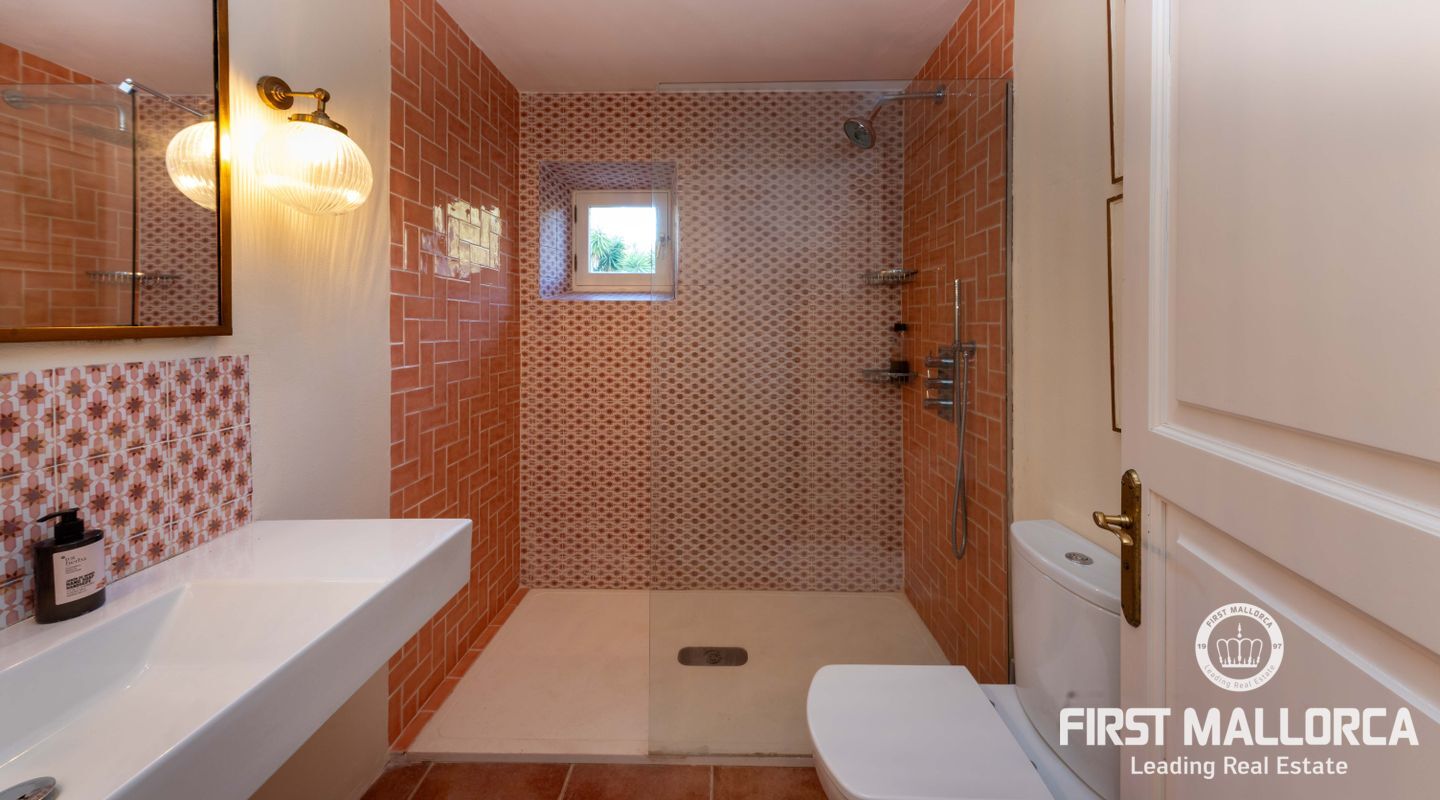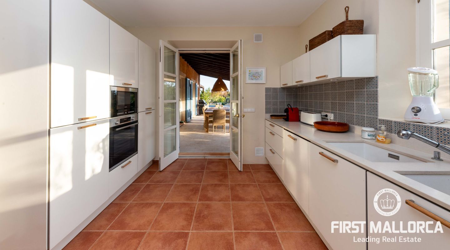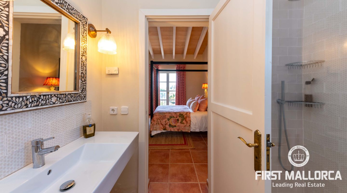 The finca in classic natural stone style was recently renovated and offers space for five double bedrooms with en suite bathrooms on a total living area of 240 m². On the ground floor, in addition to two bedrooms, you will also find the large living room with access to the terrace, several storage rooms and the bright and modern kitchen with direct access to the veranda.