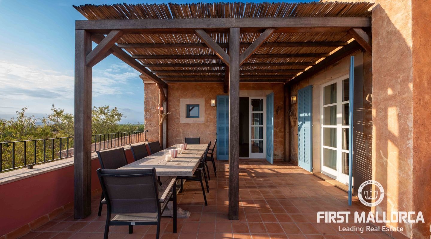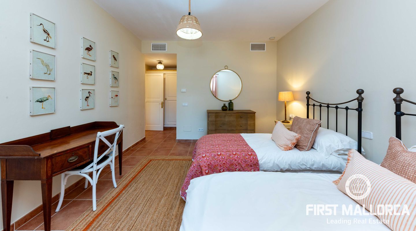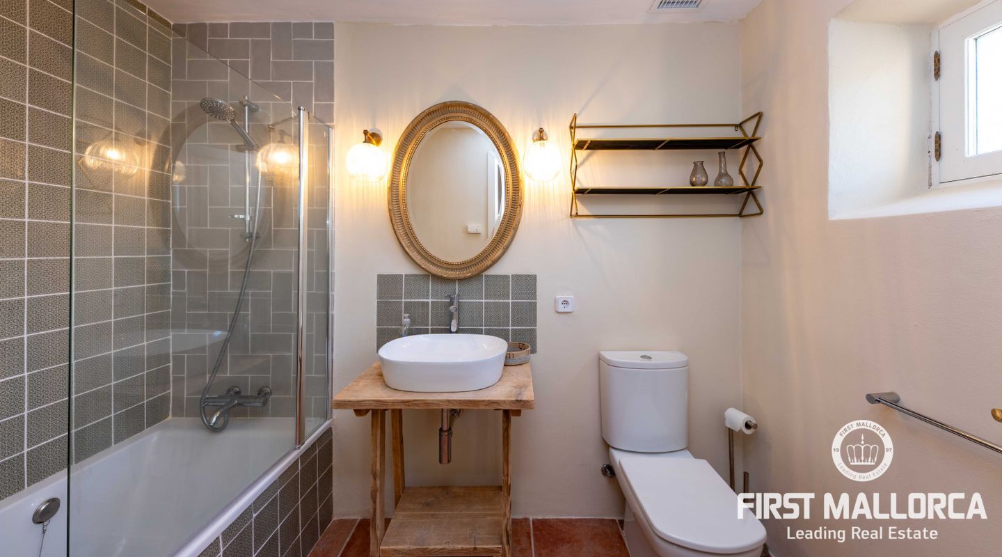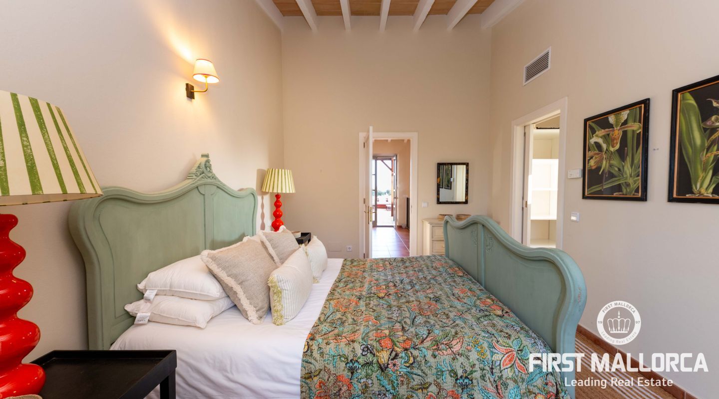 The finca in classic natural stone style was recently renovated and offers space for five double bedrooms with en suite bathrooms on a total living area of 240 m². On the ground floor, in addition to two bedrooms, you will also find the large living room with access to the terrace, several storage rooms and the bright and modern kitchen with direct access to the veranda.