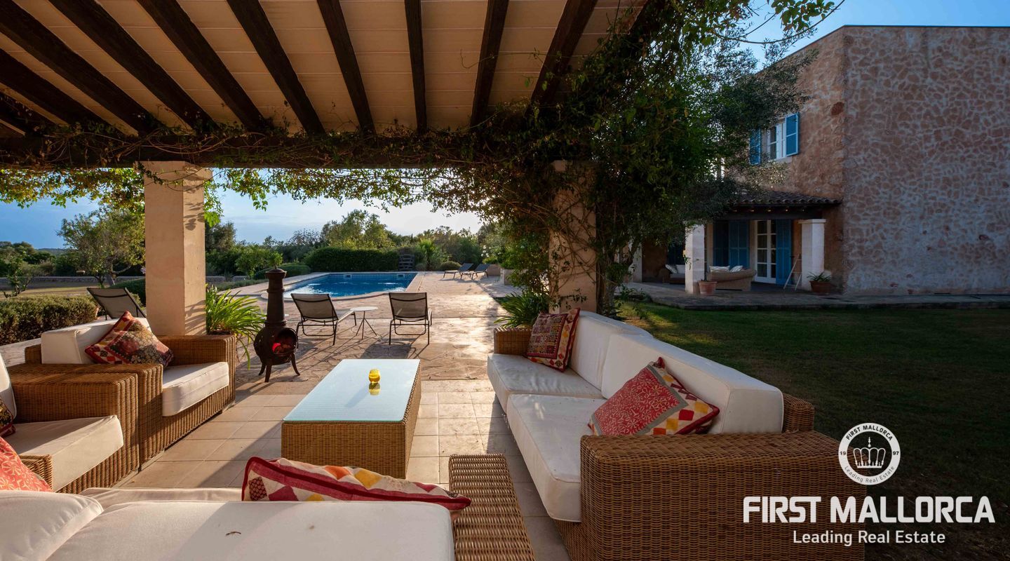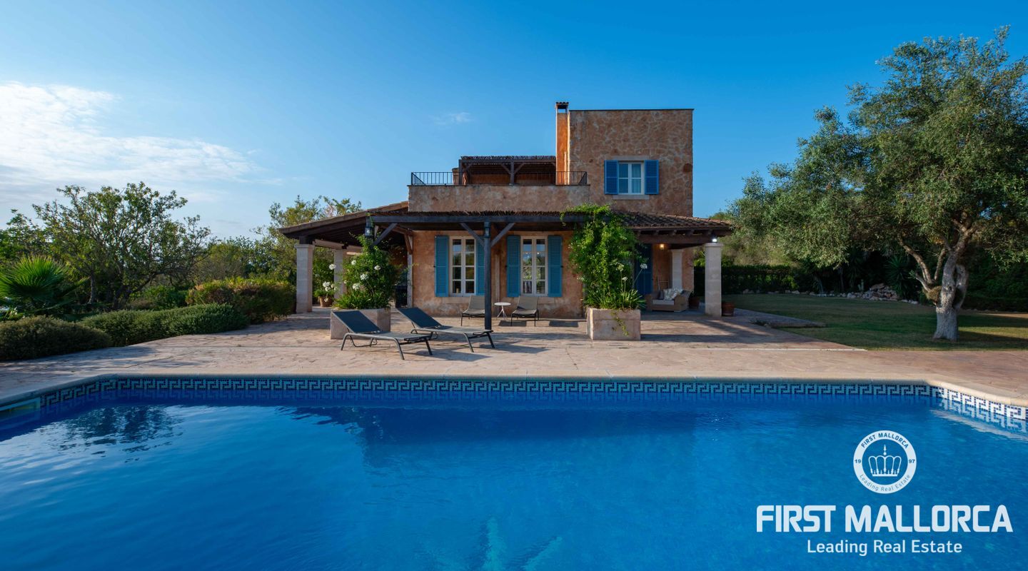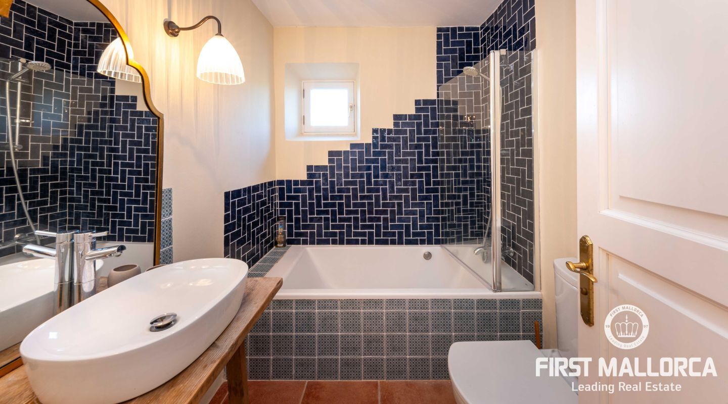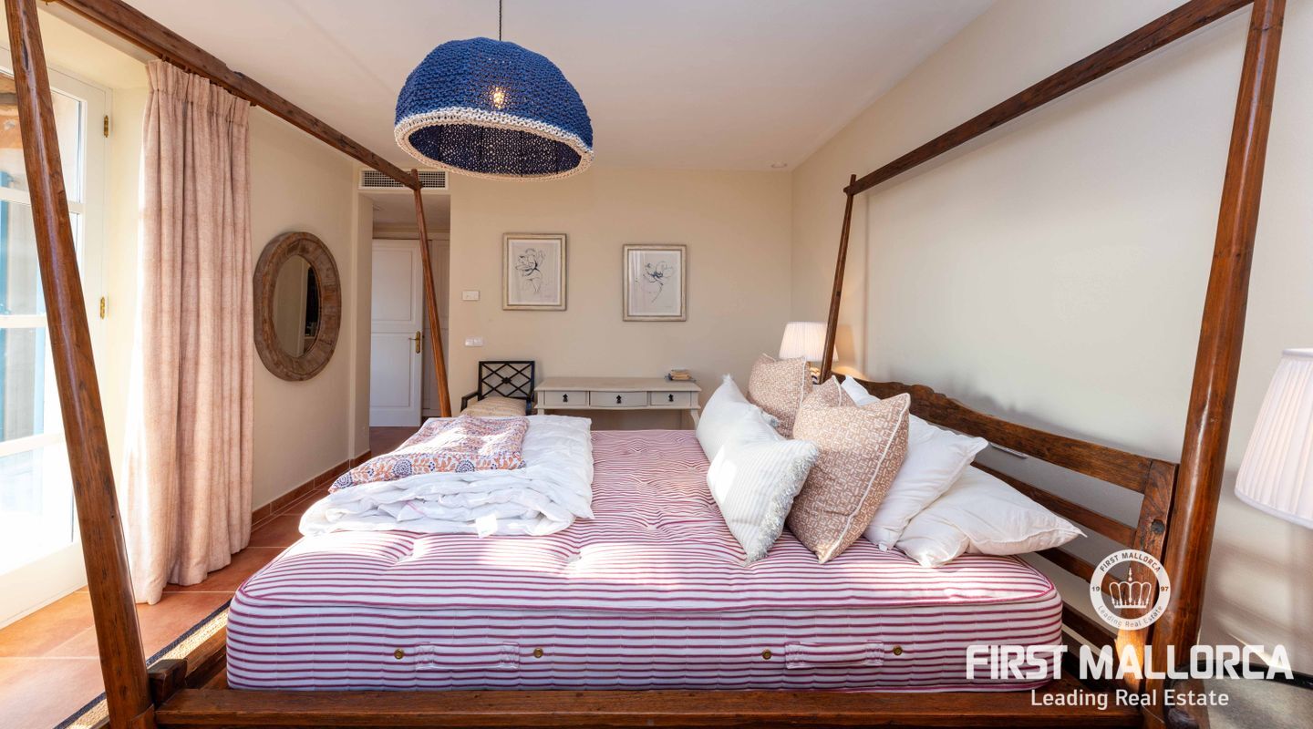 The finca in classic natural stone style was recently renovated and offers space for five double bedrooms with en suite bathrooms on a total living area of 240 m². On the ground floor, in addition to two bedrooms, you will also find the large living room with access to the terrace, several storage rooms and the bright and modern kitchen with direct access to the veranda.