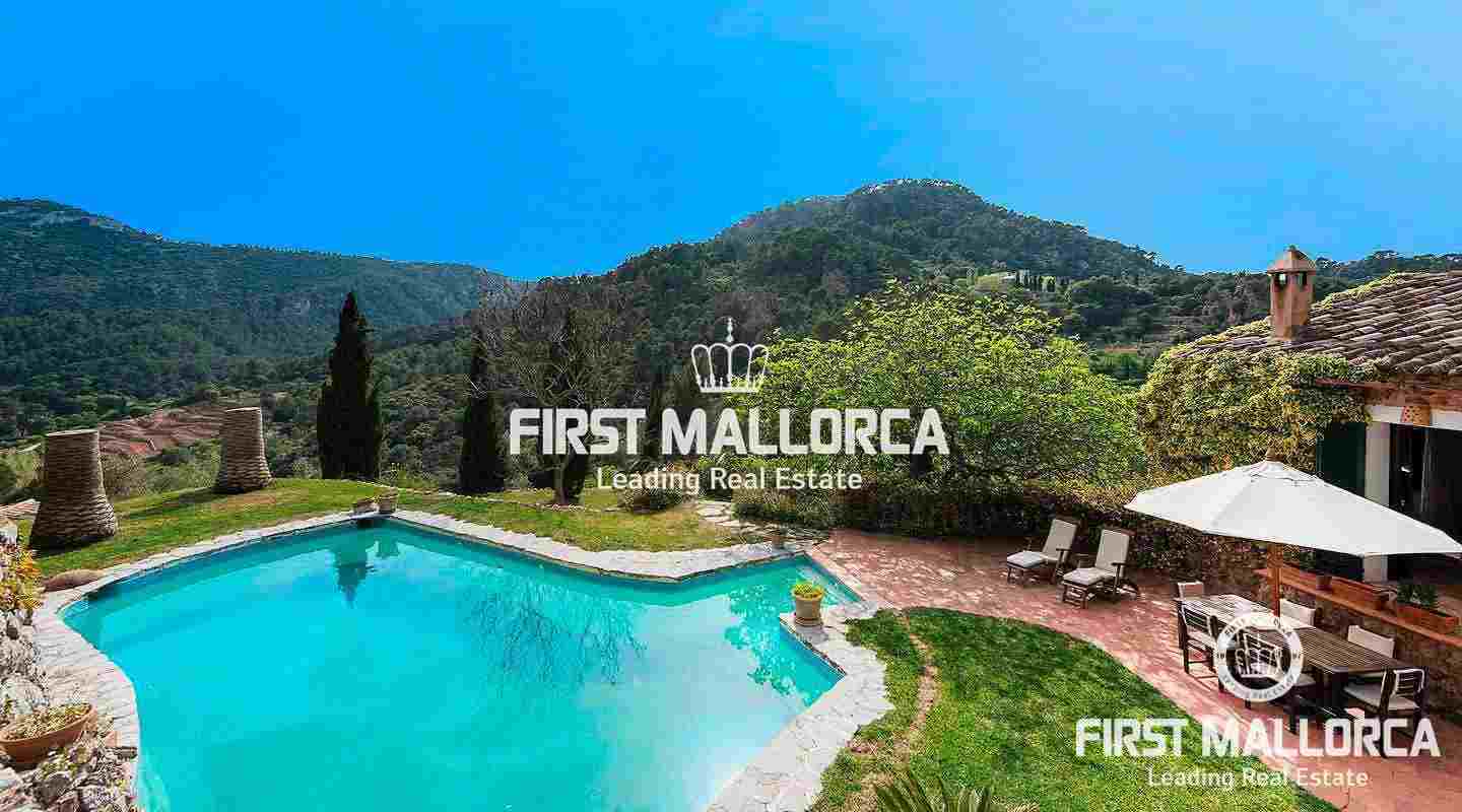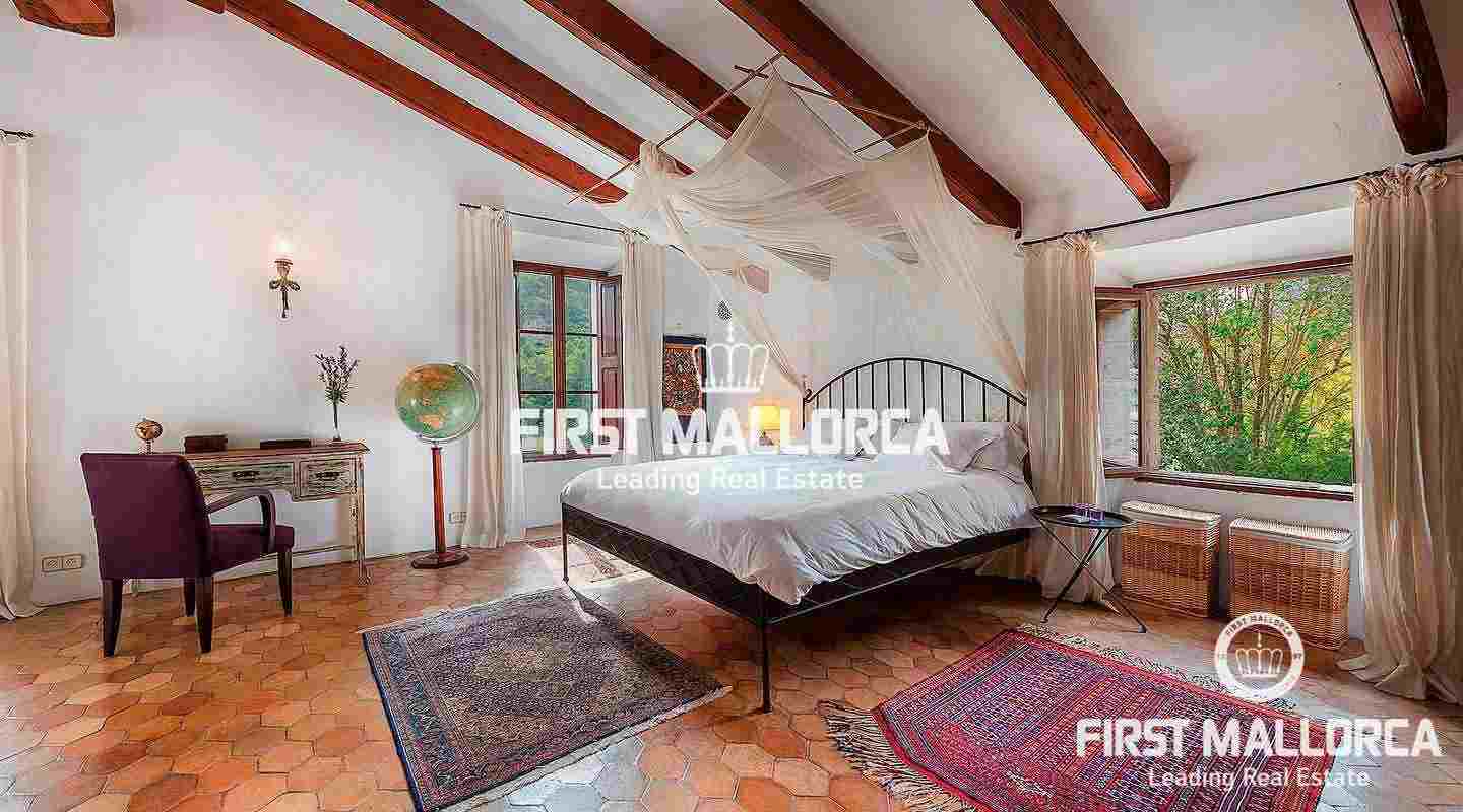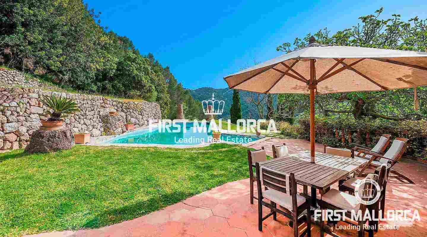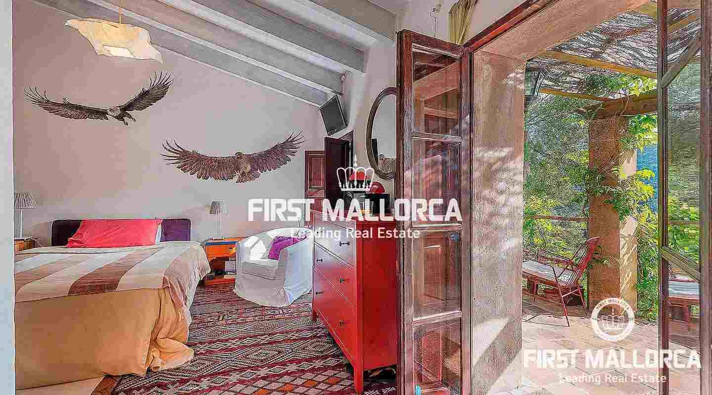 This delightful Mallorca finca with swimming pool is located in Valldemossa on the beautiful west coast of the island and enjoys magnificent views of the village and the countryside. On 2 floors, the main house has a living-dining room with fireplace, a kitchen with pantry, a guest toilet and 3 spacious bedrooms, each of them with bathroom en suite.