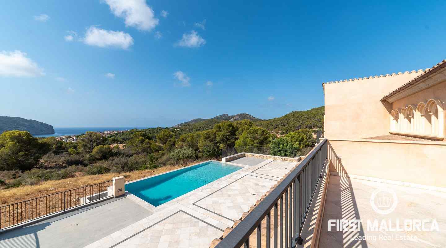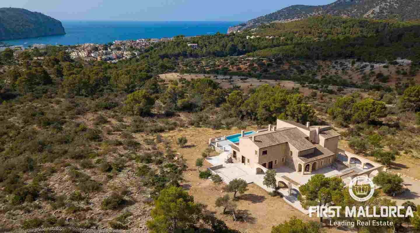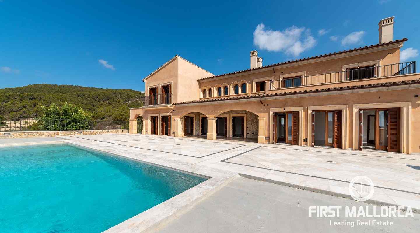Impressive manor house under construction overlooking the Bay of Camp de Mar and enjoying extensive views over a vast panorama of the south west coastal area. The construction of this very private property, set in 200,000 m2 of nature, is of a very high standard. The built area is of 800 m2 with 5 bedrooms and 5 bathrooms, including 50 m2 of covered terraces plus 500 m2 of uncovered terraces. Additional features of this Mallorca Property include 4 car garage, space for a sauna, gymnasium, staff quarters and wine cellar.