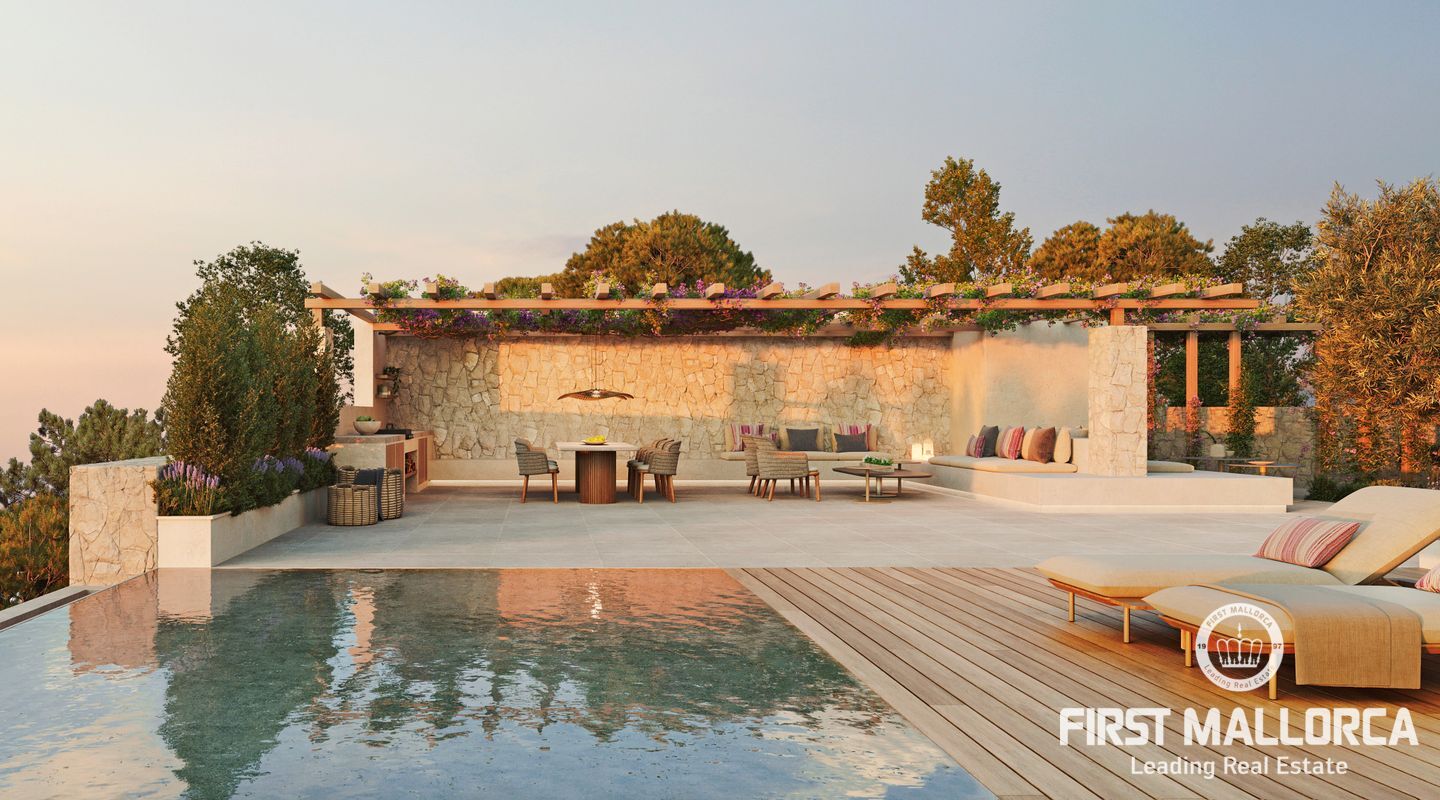 S'Olivera - fusion of Mallorcan culture with the Kira Kira concept. Kira Kira refers to the beauty of light and its presence in nature. The light that remains silent and invisible, waiting to find a space or an object. The light that accompanies us and that evokes unique sensations in us when we see how it illuminates every corner. S'Olivera will be more than a home. It is a place that creates harmony between light and shadow patterns and reflects emotions. Through the use of natural materials that change over time and the use of warm colour tones, an environment is created that reflects natural beauty and the identity of the island, the sea and the earth. Introspective, relaxing and revitalising - S'Olivera Exclusively with First Mallorca! Copyright TERRAZA BALEAR, PART OF GUNNI & TRENTINO
