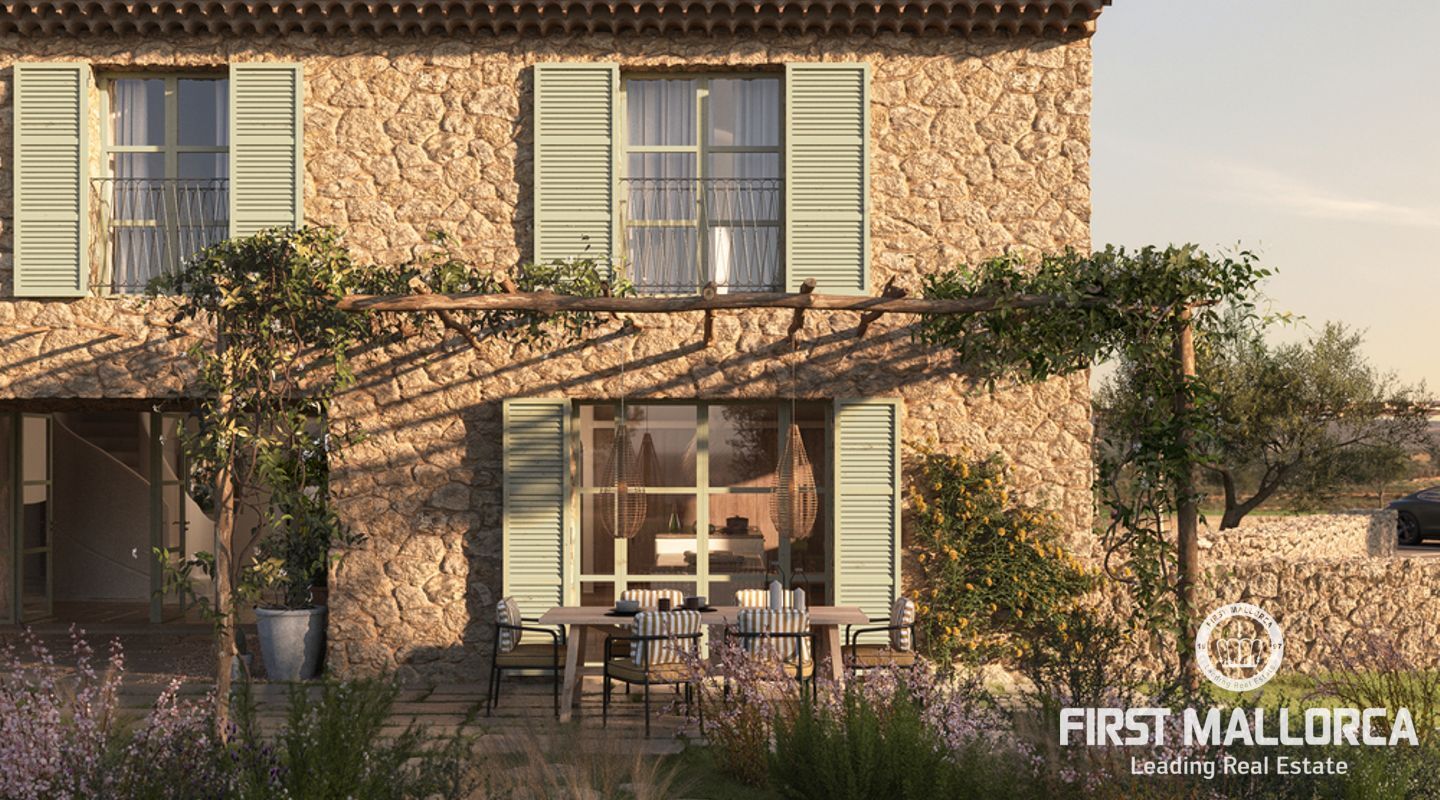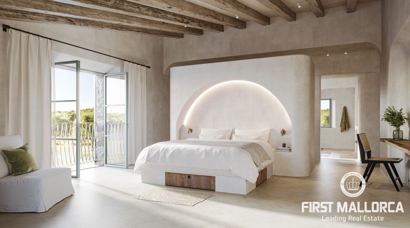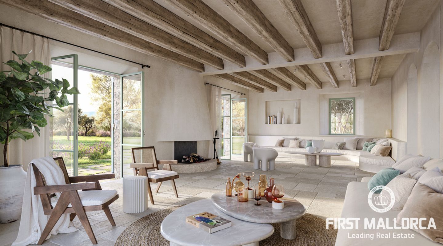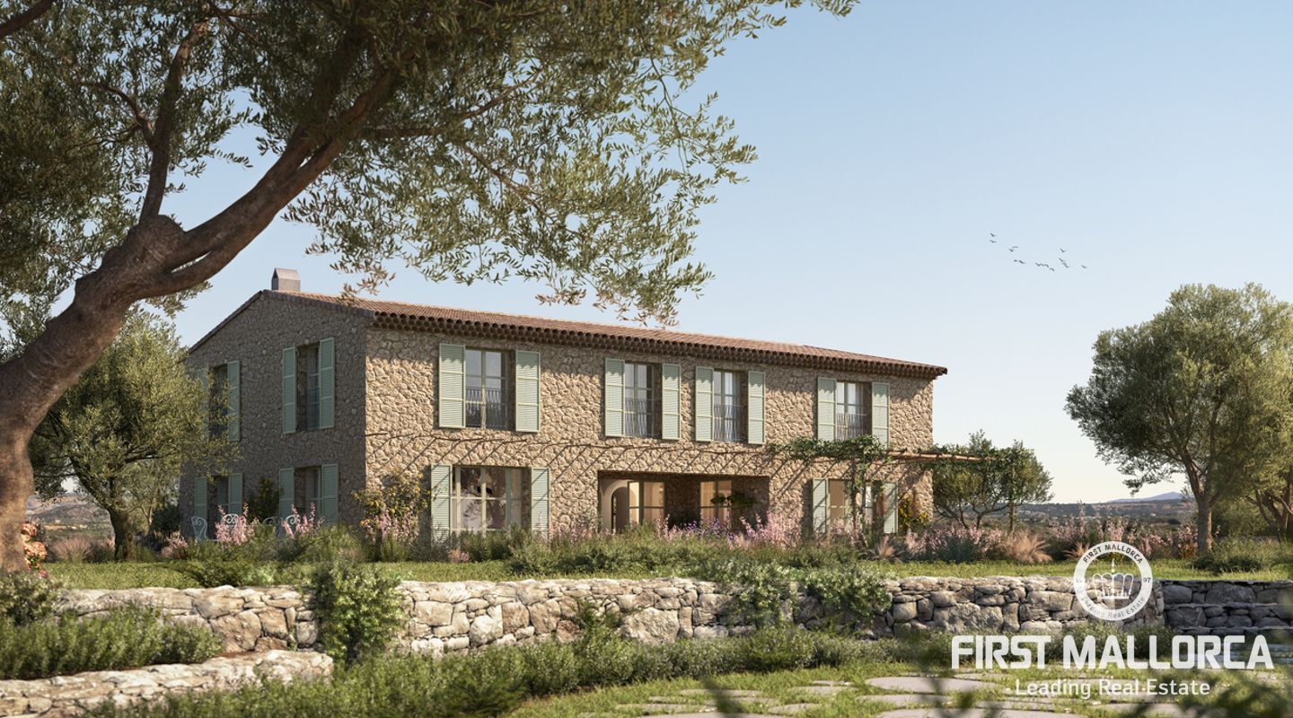 Situated in the heart of Mallorca, Alaró, this new estate is a testament to the timeless allure of Majorcan architecture, harmonising tradition with modern living. The project sprawls across a vast land area of more than 16,000 m2, blending rustic charm with contemporary elegance. Throughout the entire house, beautiful wooden beams extend from the ceiling, creating a rustic and charming atmosphere. The rooms and bedrooms are designed with a simple yet elegant character, adorned in natural hues. Large windows illuminate the spaces, seamlessly merging the interior with the surrounding nature, providing a remarkable connection to the outdoors. The extraordinary spiral staircase gracefully connects the ground floor to the upper level. On the ground floor, an inviting entrance hall sets the tone, leading to a stylish powder room and a hallway that seamlessly connects various living spaces. A well-designed pantry offers practical storage solutions, and the kitchen/dining area becomes a spacious culinary hub. The living room and chill-out area provide versatile and cozy retreats. Access to a terrace on this level invites al fresco dining amidst the beauty of the outdoors. The first floor reveals an inviting hallway facilitating easy access to bedrooms and the master suite. The master bedroom, with an adjoining dressing room and spa-like bathroom, promises a luxurious escape. Additional bedrooms, each with its own dressing and bathroom, offer comfort and style. The basement unfolds as a practical space with stairs connecting levels, a laundry room for essential chores, machinery housing utilities, a rainwater deposit for sustainability, and a spacious garage ensuring secure parking. Complimenting this stunning property is a swimming pool, featuring comfortable sofas and loungers a perfect retreat for relaxation. Every element is thoughtfully crafted to harmonize the home with its natural surroundings, creating a serene and inviting ambiance.