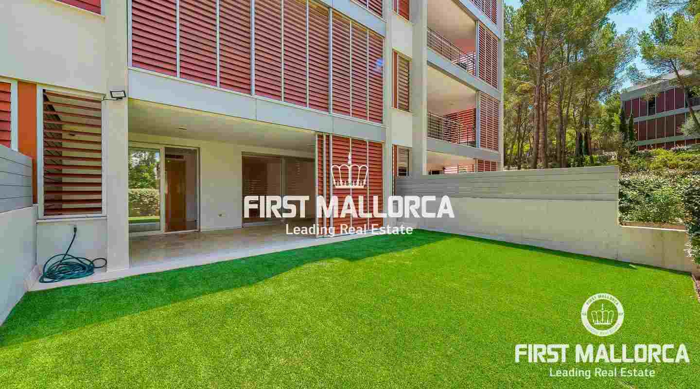 This high-quality garden-apartment in a contempory-style development enjoys an exclusive location alongside the Royal Bendinat Golf Course of Mallorca.