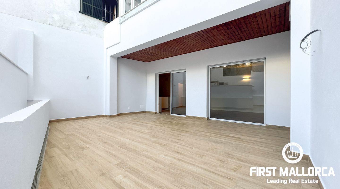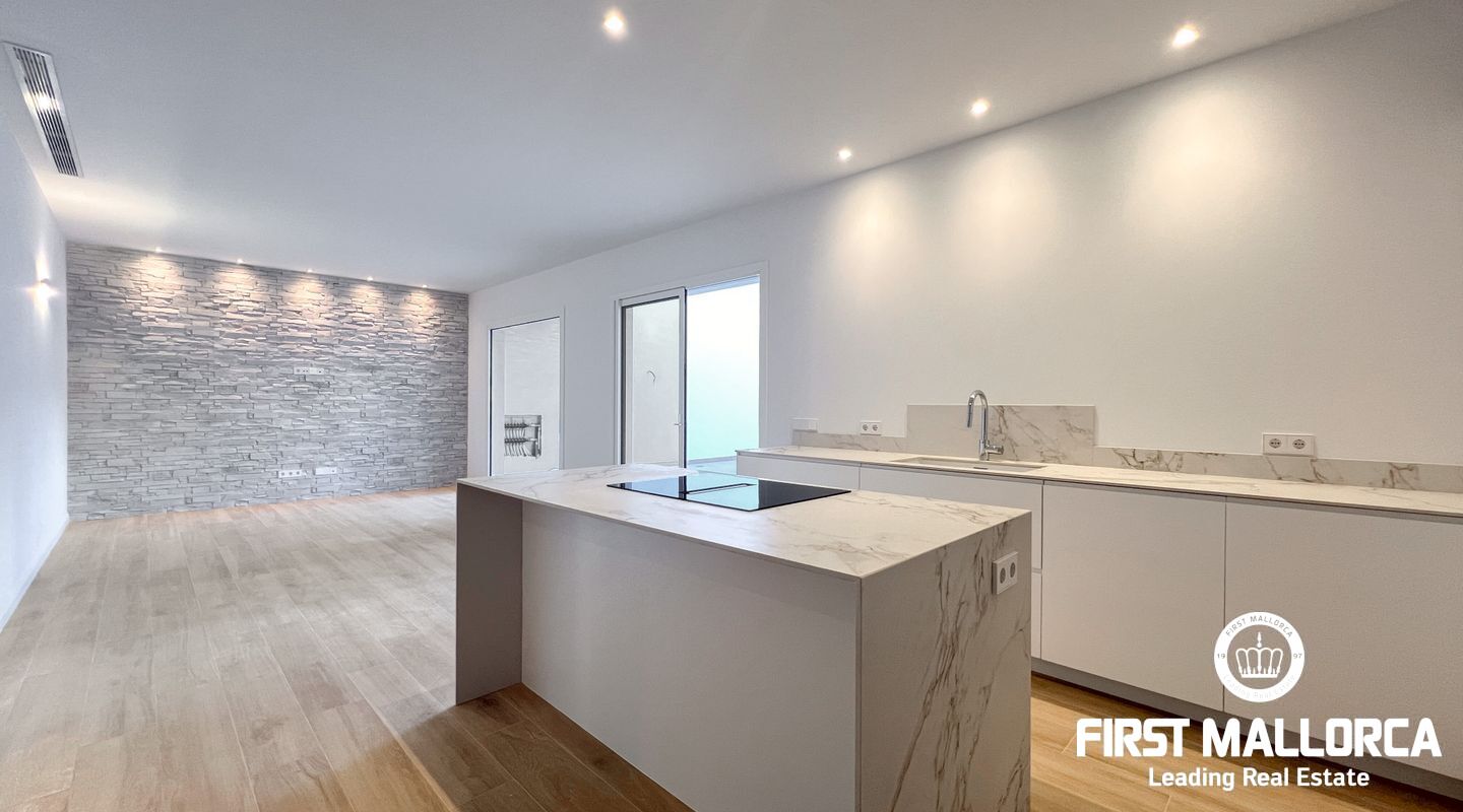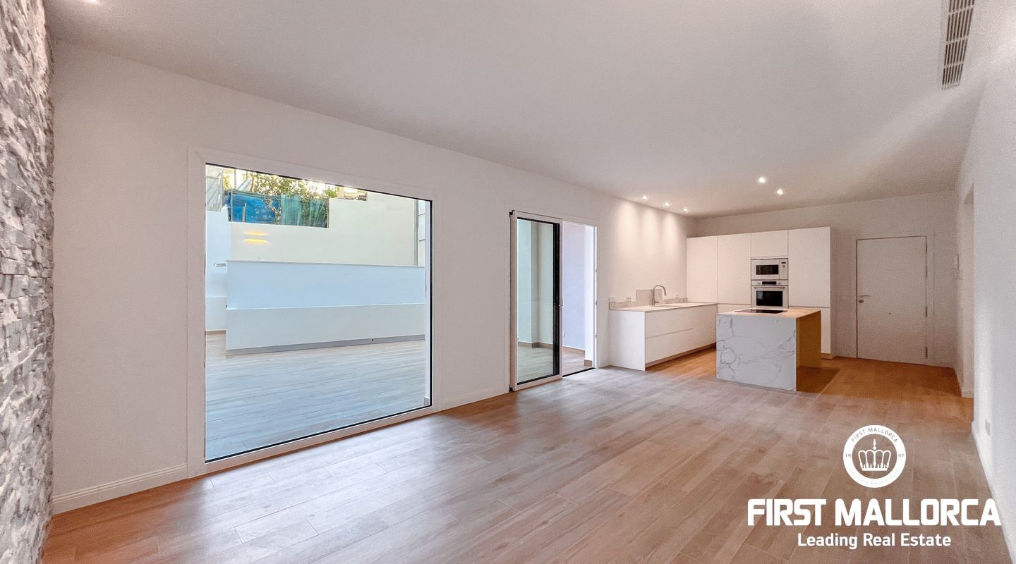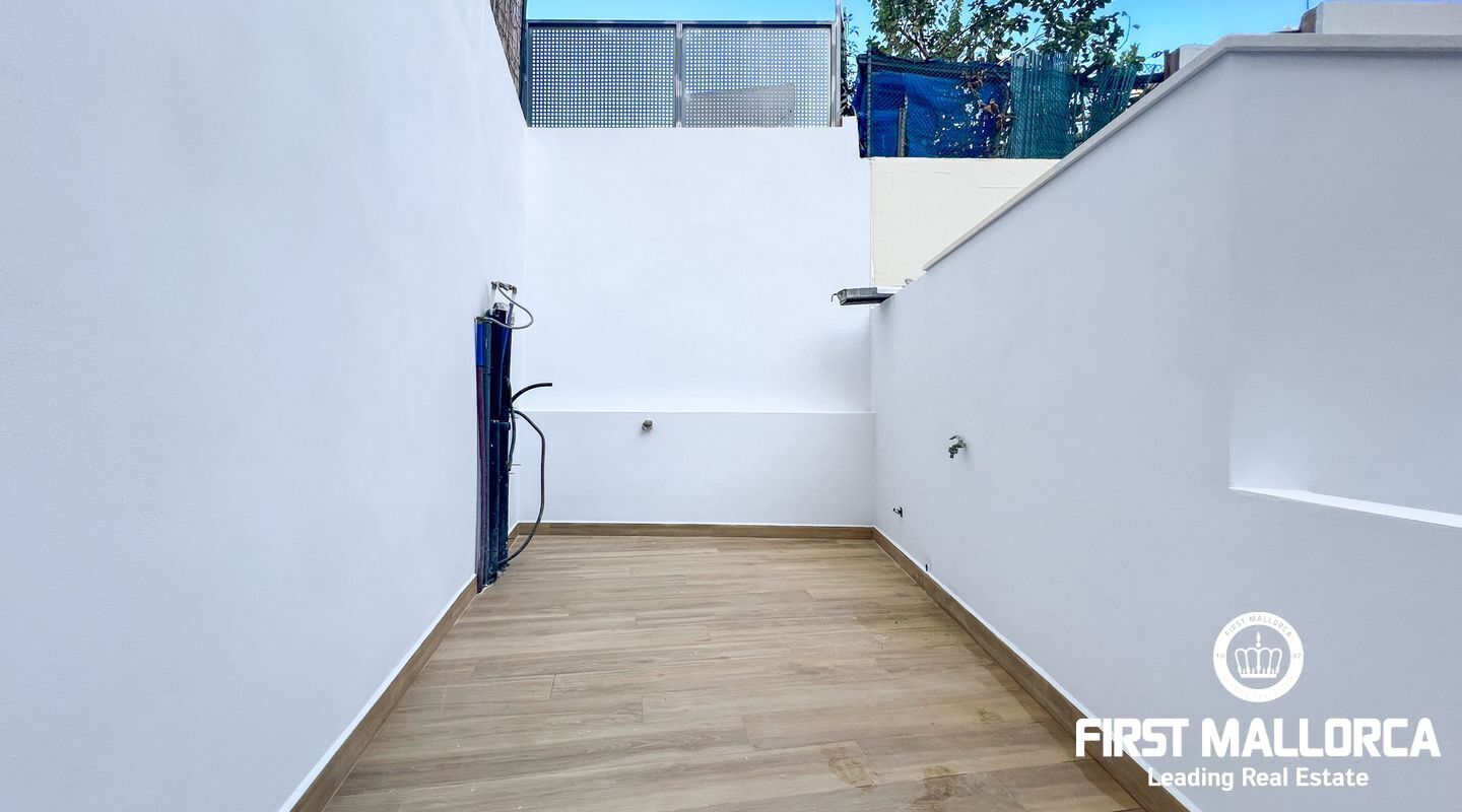 This charming ground floor apartment in Son Espanyolet offers a living area of approx. 75 m2 and impresses with a spacious patio of approx. 45 m2, which is partly covered and therefore represents a perfect extension of the living space. The flat has two bedrooms, one of which has an en suite bathroom and a small dressing room. The second bathroom also has a modern design. The bright living/dining room flows seamlessly into the modern white kitchen, equipped with high quality BOSCH appliances. Underfloor heating and air conditioning ensure a pleasant climate all year round. The entire property has been extensively renovated and modernised, including the façade, which now looks in new splendour and enhances the appearance of the property. All daily amenities are within walking distance and the popular market, numerous bars and restaurants of Santa Catalina are only a 5-10 minute walk away.