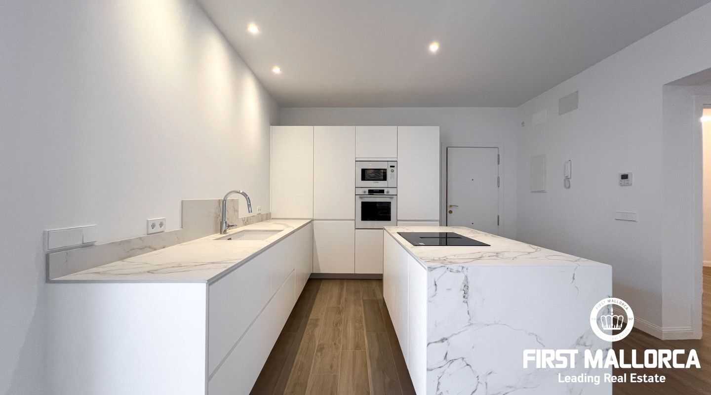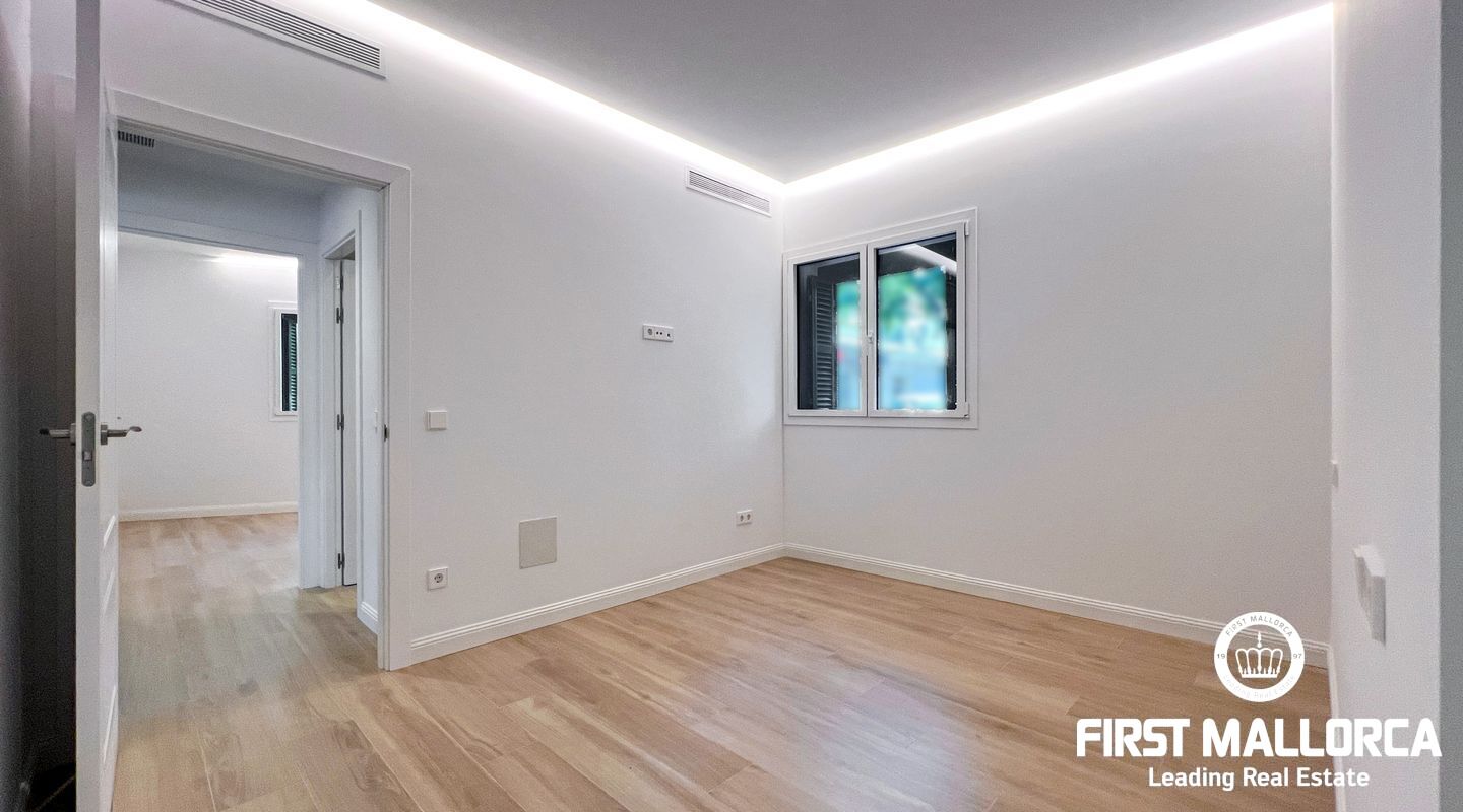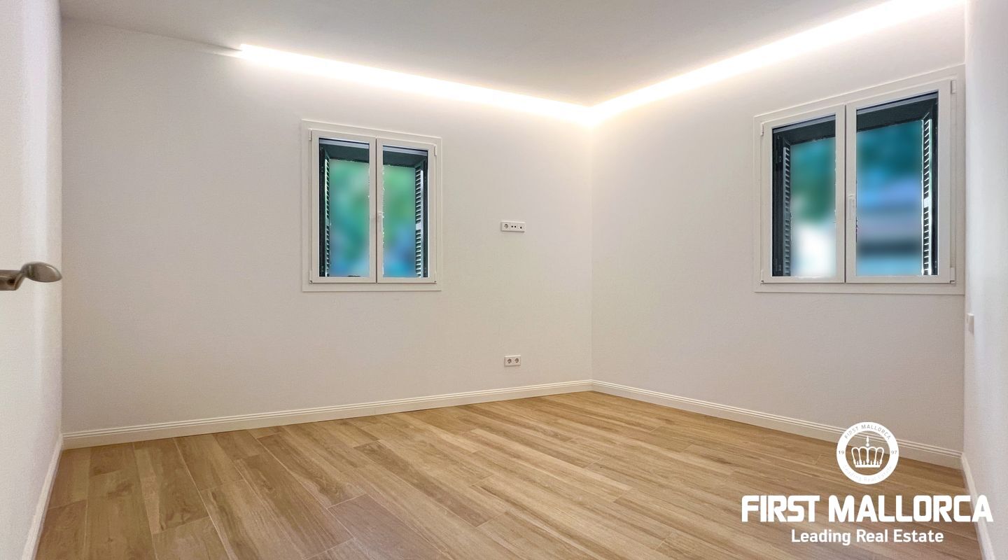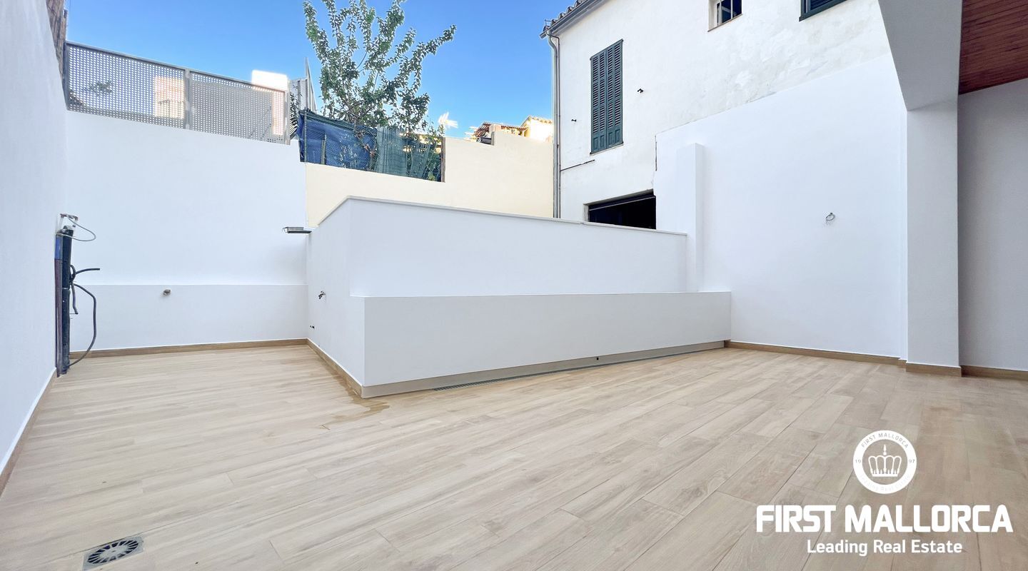 This charming ground floor apartment in Son Espanyolet offers a living area of approx. 75 m2 and impresses with a spacious patio of approx. 45 m2, which is partly covered and therefore represents a perfect extension of the living space. The flat has two bedrooms, one of which has an en suite bathroom and a small dressing room. The second bathroom also has a modern design. The bright living/dining room flows seamlessly into the modern white kitchen, equipped with high quality BOSCH appliances. Underfloor heating and air conditioning ensure a pleasant climate all year round. The entire property has been extensively renovated and modernised, including the façade, which now looks in new splendour and enhances the appearance of the property. All daily amenities are within walking distance and the popular market, numerous bars and restaurants of Santa Catalina are only a 5-10 minute walk away.