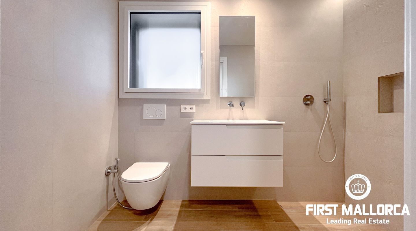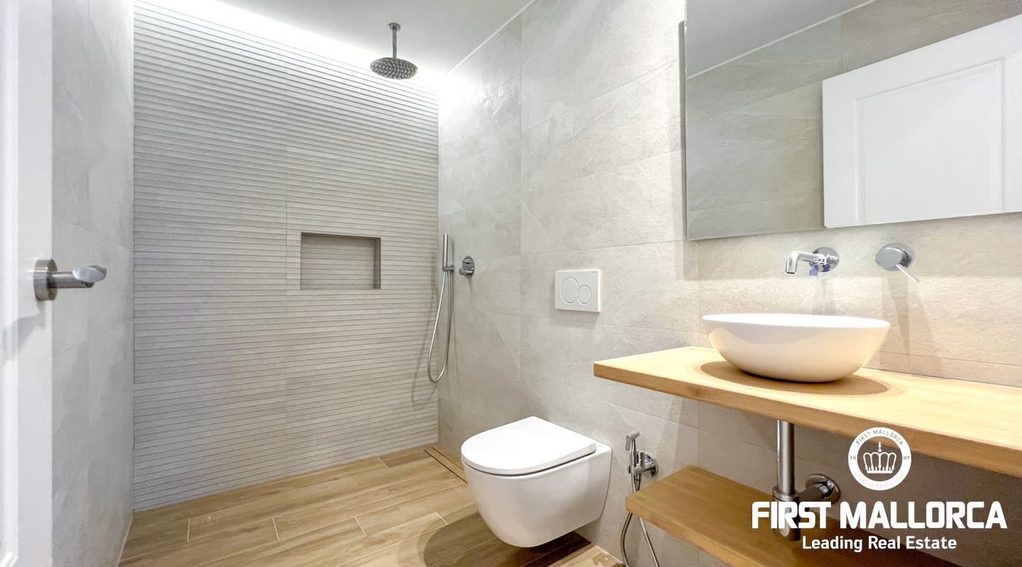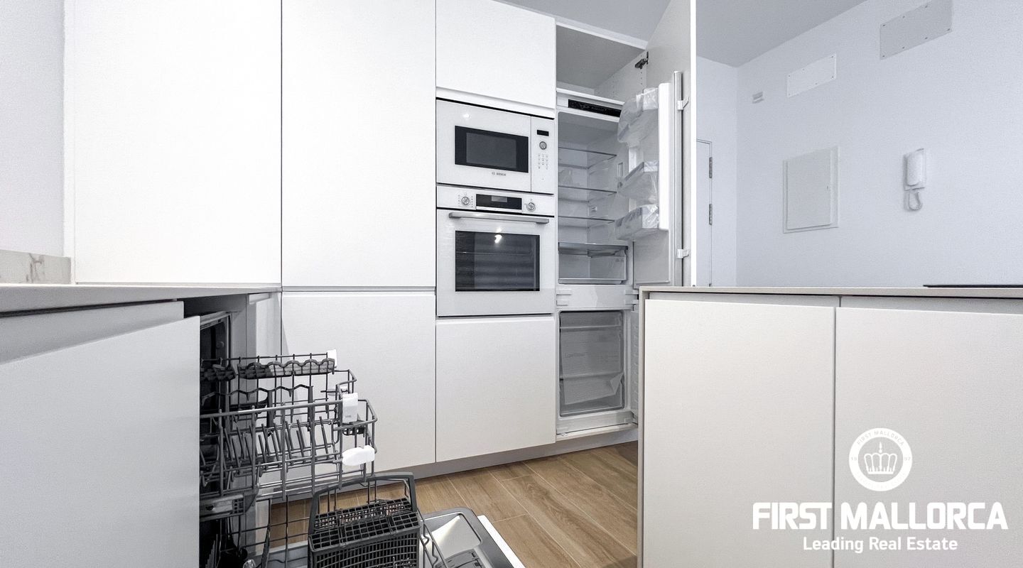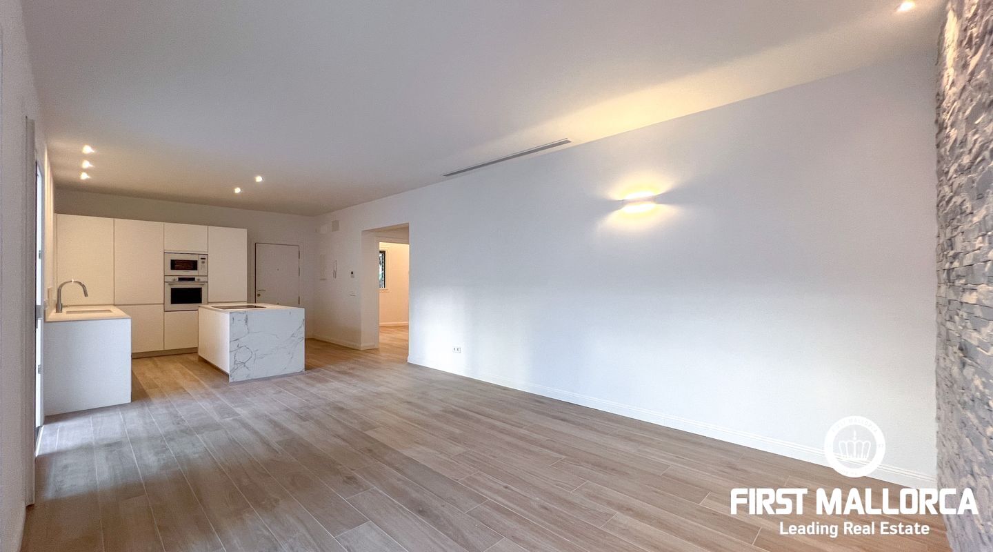 This charming ground floor apartment in Son Espanyolet offers a living area of approx. 75 m2 and impresses with a spacious patio of approx. 45 m2, which is partly covered and therefore represents a perfect extension of the living space. The flat has two bedrooms, one of which has an en suite bathroom and a small dressing room. The second bathroom also has a modern design. The bright living/dining room flows seamlessly into the modern white kitchen, equipped with high quality BOSCH appliances. Underfloor heating and air conditioning ensure a pleasant climate all year round. The entire property has been extensively renovated and modernised, including the façade, which now looks in new splendour and enhances the appearance of the property. All daily amenities are within walking distance and the popular market, numerous bars and restaurants of Santa Catalina are only a 5-10 minute walk away.
