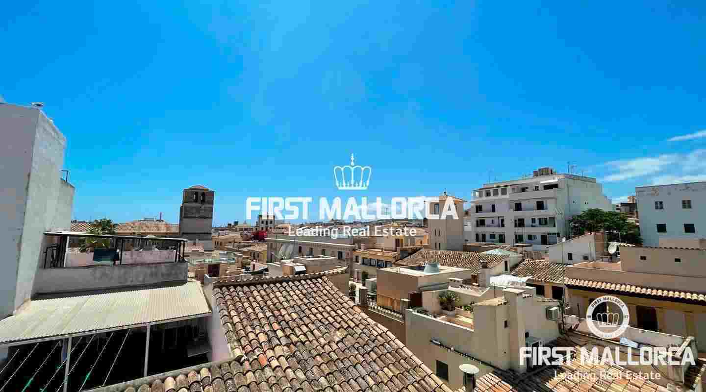 The flat is located in a typical Palma building, which was built in the 19th century. There are many charming details, such as the old and mostly well preserved floors. The flat is spread over two floors - mezzanine and basement - and has its own entrance as well as direct access to the small communal patio. There is also a communal roof terrace with fantastic views over the rooftops of Palma. The flat is ideal for those who are looking for the typical and individual Palma. The flat on the first floor can also be purchased (Listing 64749).