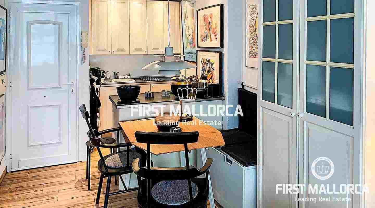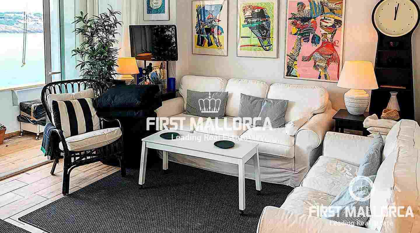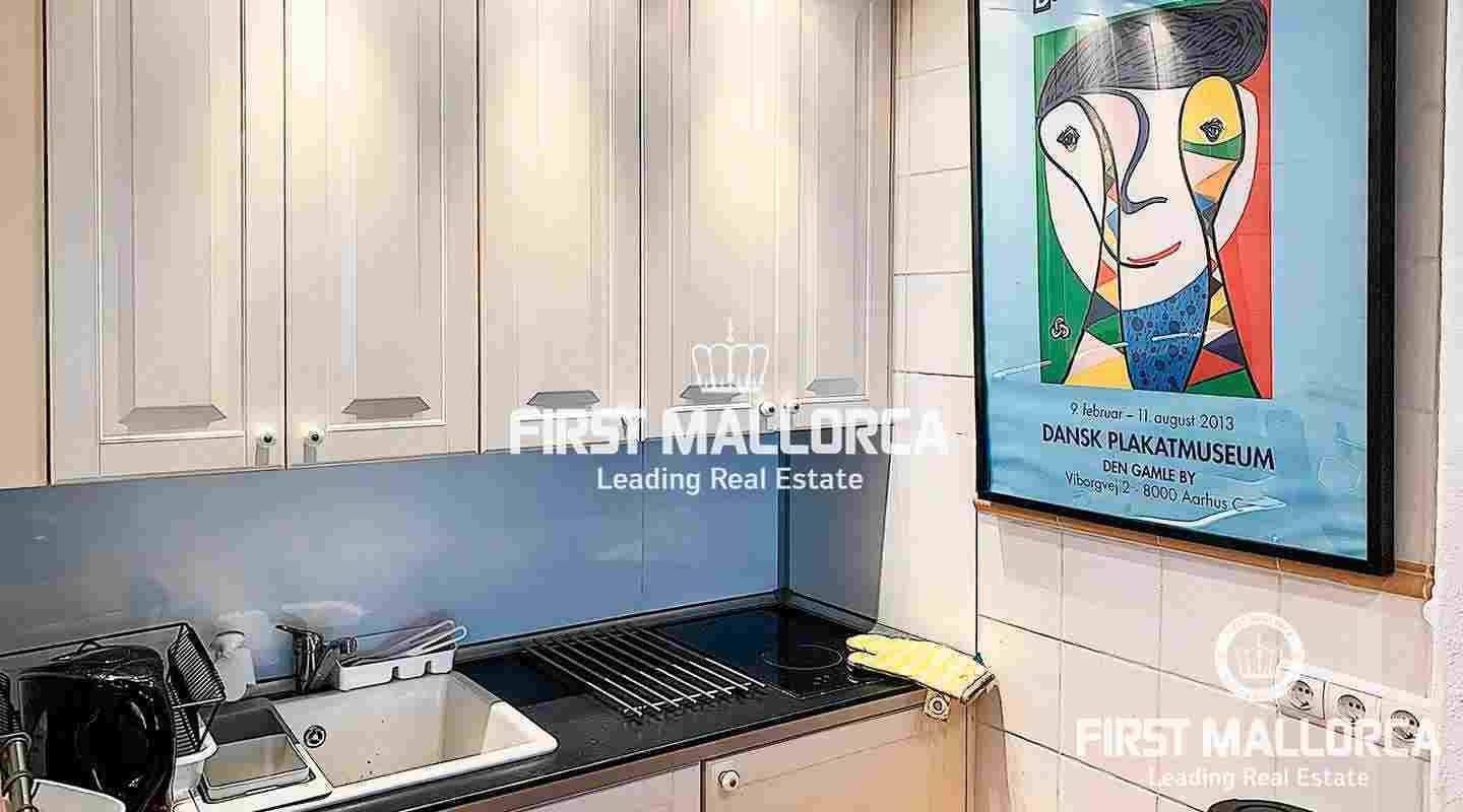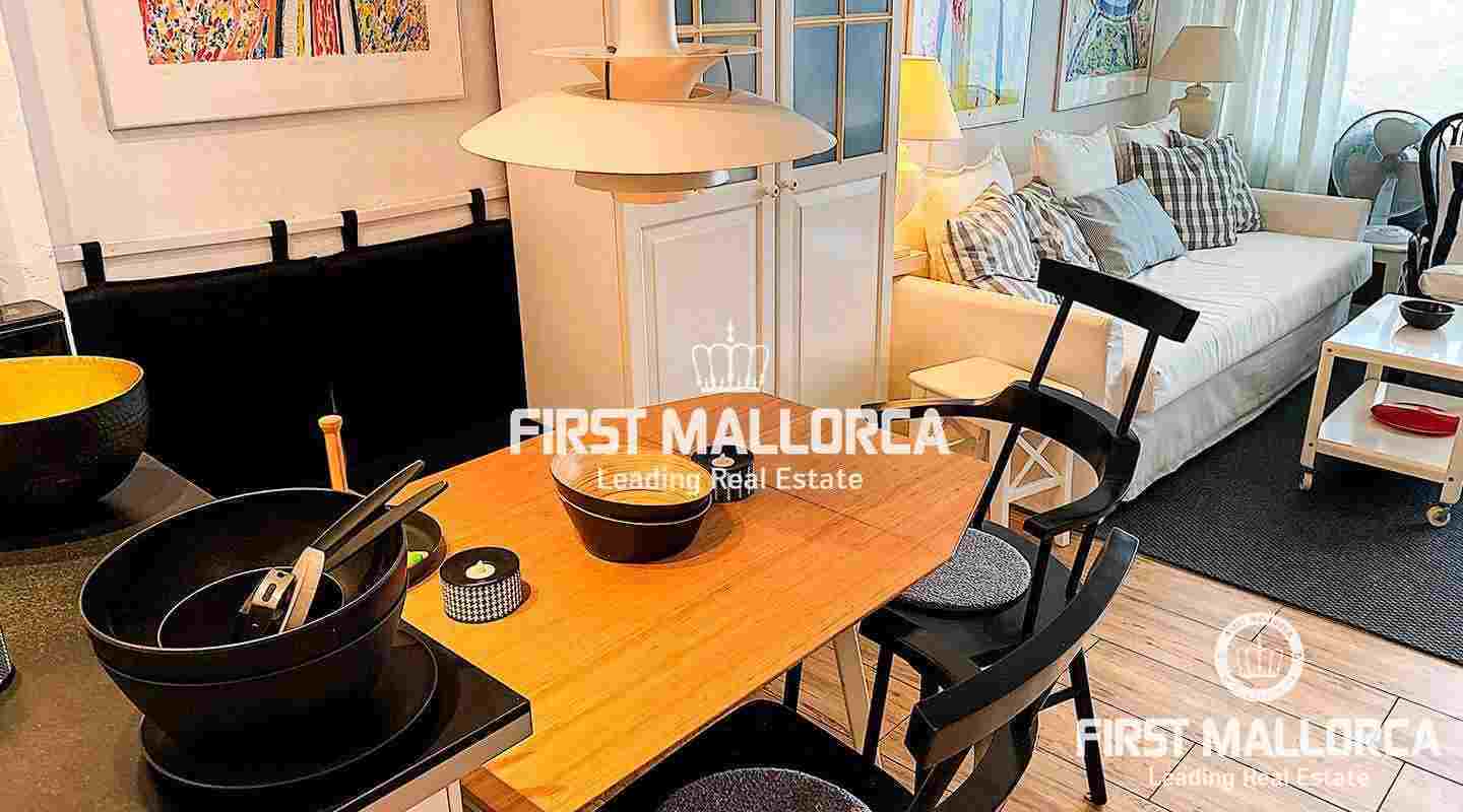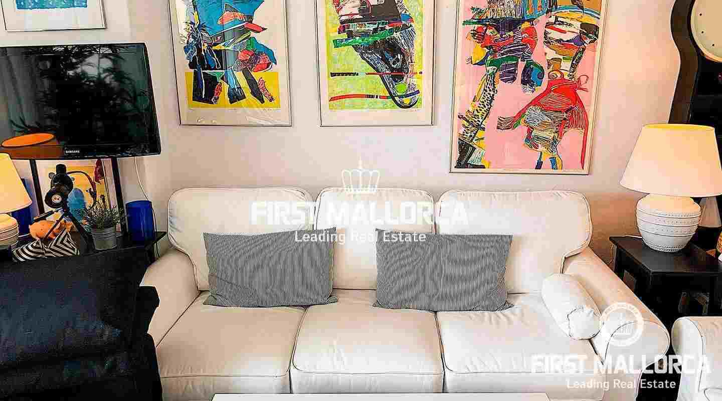 This studio apartment is located at the port of Port Andratx, in a community with direct access to the beach and sea. The living area is 40 m² including 6 m² covered terrace area. The apartment has a fitted kitchen, a ceramic hob with two plates and a kitchen island. The living area comprises 3 sofas, one of which can be converted into a bed. In the bathroom there is a shower and a washing machine. The whole apartment has been recently renovated. The advantage is the direct access to the beach, making it an excellent vacation home.