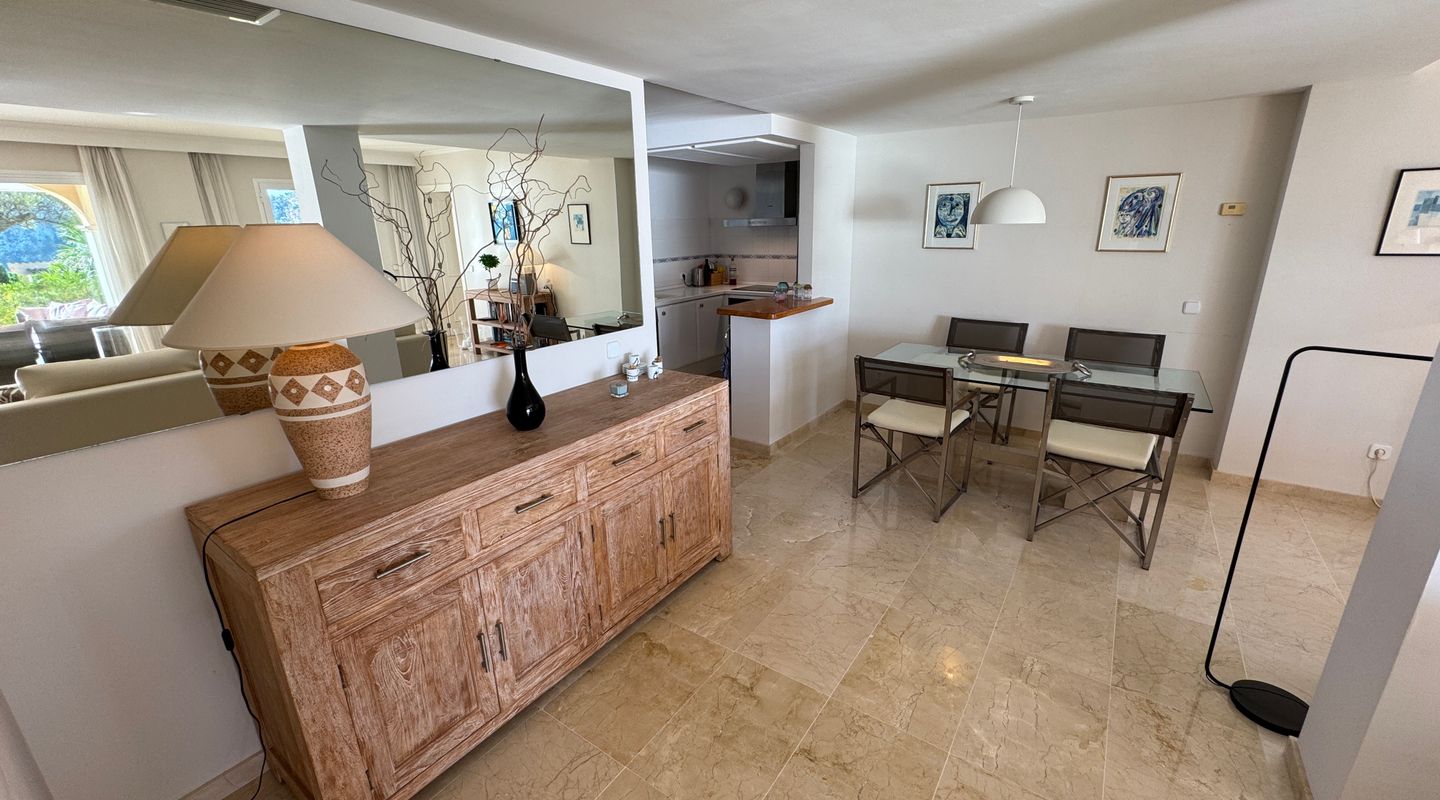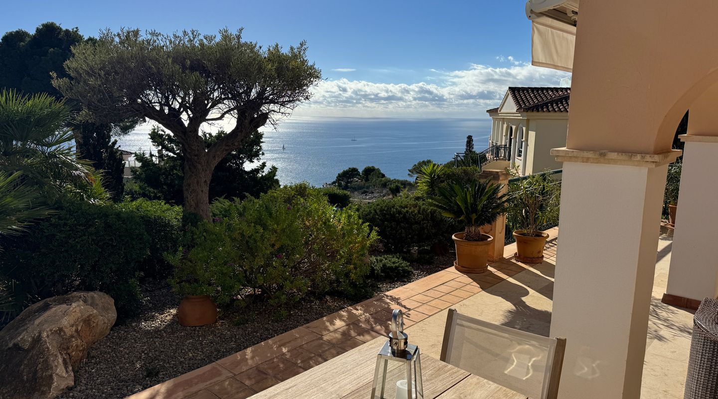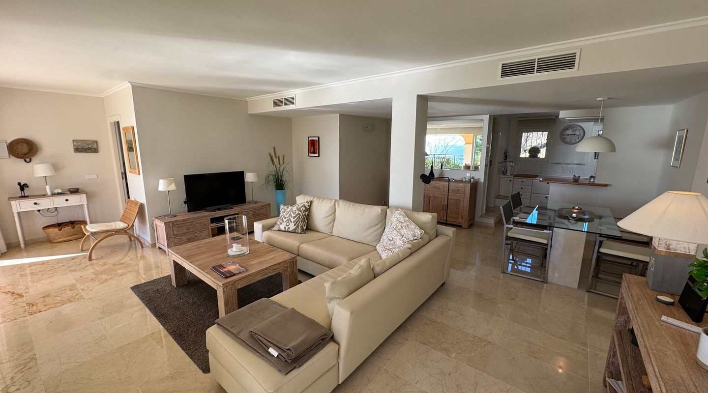 Experience Mediterranean living at its finest in this elegant apartment in Port Andratx. Perched high above Cala Llamp in the exclusive D’Alt Andratx complex, the property offers breathtaking panoramic sea views and a peaceful, sun-soaked setting. The south-facing terrace and private garden are perfect for outdoor living. Enjoy sunshine from morning until sunset, with views stretching out to Ibiza on clear days. Part of the terrace is covered for shade, and awnings extend comfort throughout the day. Inside, the bright open-plan living and dining area flows seamlessly into the kitchen, offering sea views from every angle. A practical utility room adjoins the kitchen. Both bedrooms feature en suite bathrooms, and sea views directly from the bed. Set within a beautifully maintained complex in one of Port Andratx’s most desirable locations, this apartment combines modern comfort with the timeless beauty of Mallorca’s coastline. If you would like more information or would like to arrange a viewing do not hesitate to contact us.