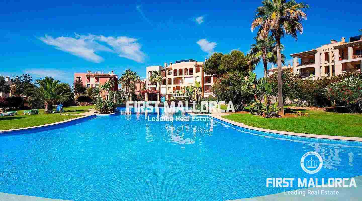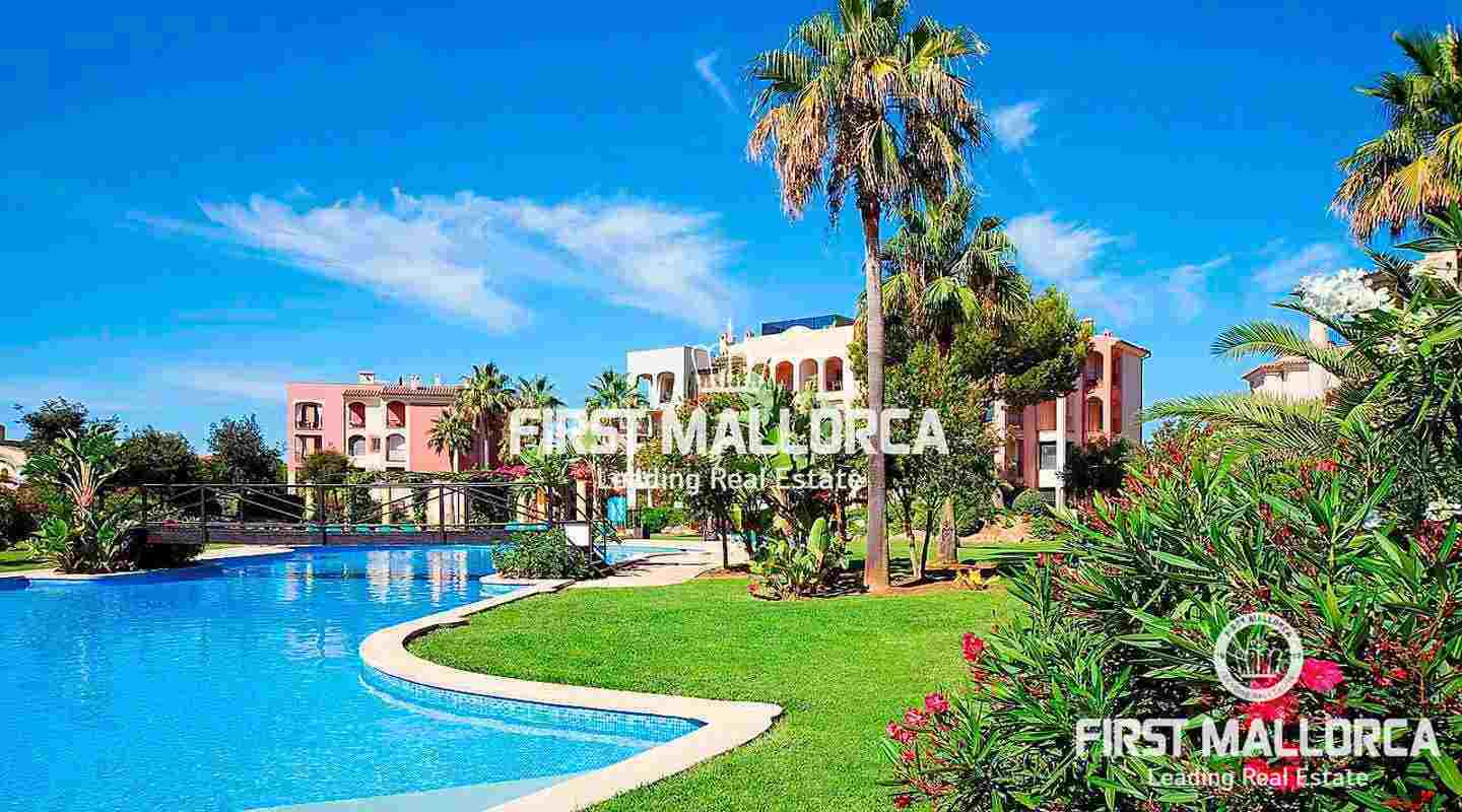 Sunny garden apartment in beautiful complex with 3 community pools and gardens next to the golf course in Santa Ponça. The exclusive marina of Port Adriano is only a 10 minute stroll away offering a variety of amenities and sandy beach.