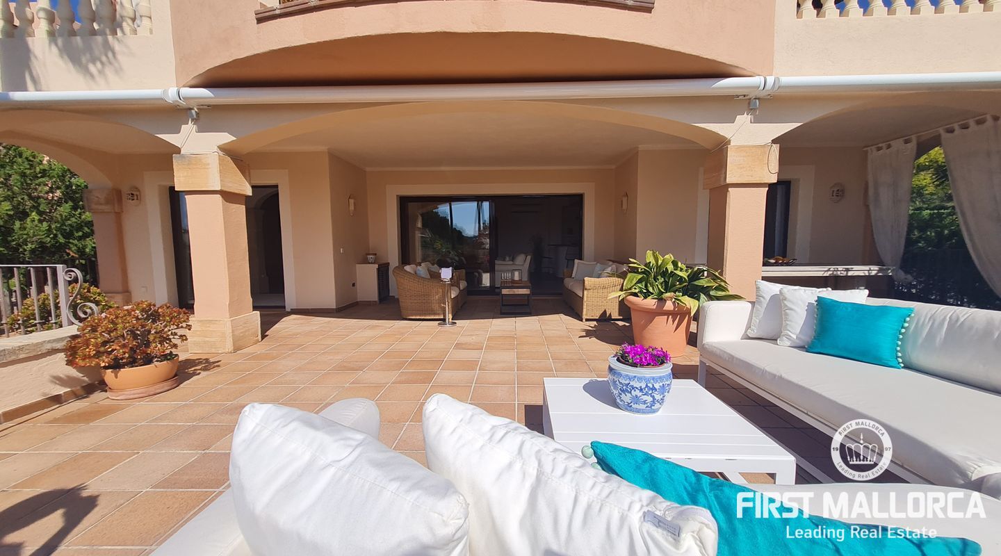An attractive garden apartment located in the exclusive development of Forat 19, only a few minutes walk from the Golf club and Kimpton Aysla Mallorca Hotel. The property has a sunny south facing orientation, an entrance courtyard and a large terrace overlooking the private garden.