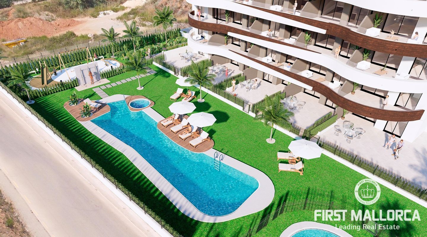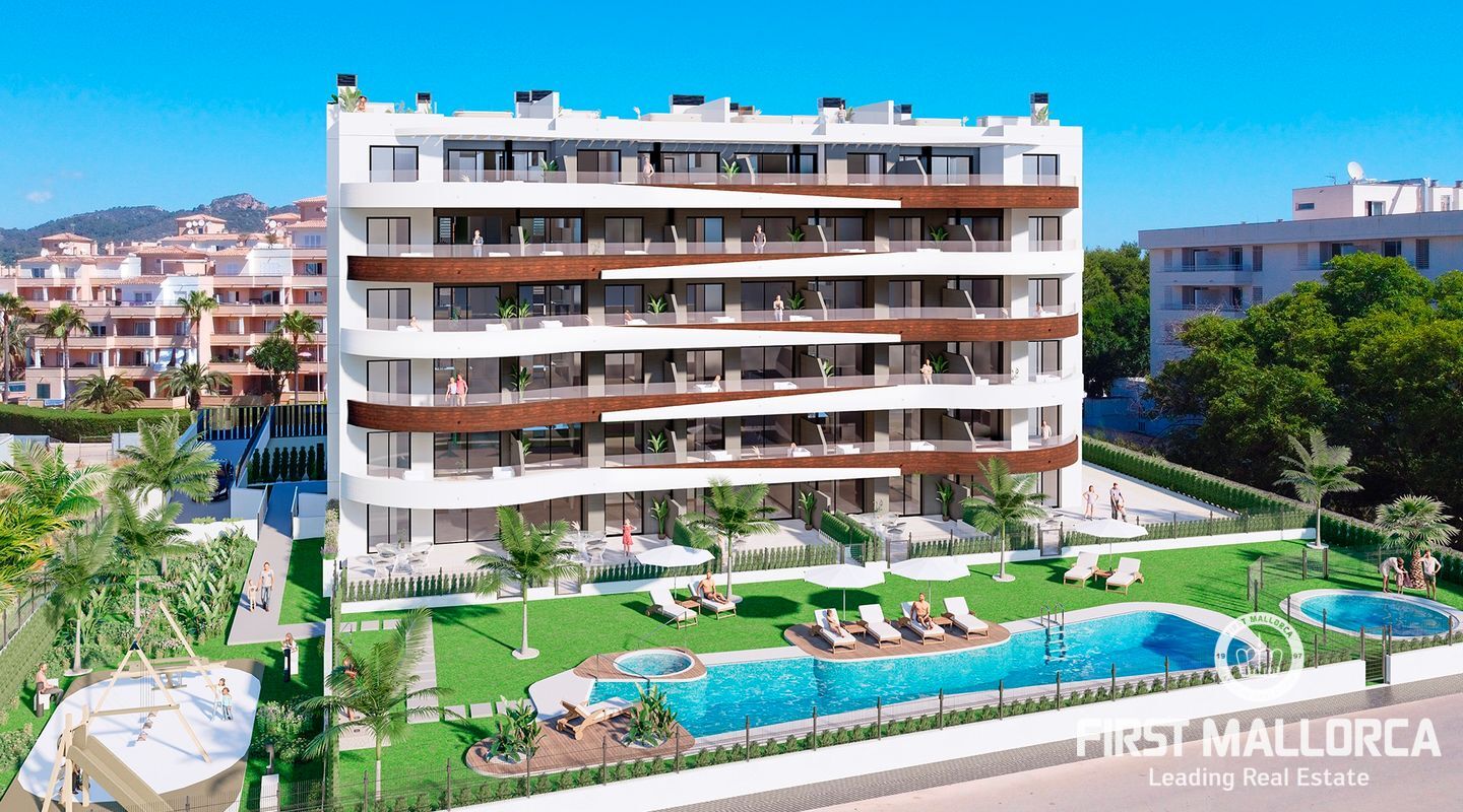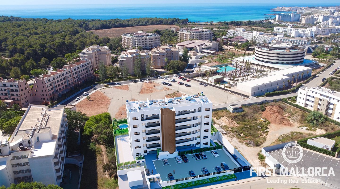 This development is located in the northeast of the island, in the magnificent area of Sa Coma, in the municipality of Sant Llorenç des Cardassar. It is close to spectacular wide sandy beaches with crystal-clear waters and to the Punta de n'Amer protected nature reserve. All this makes your seaside home the perfect place to enjoy the coast of Mallorca and its beautiful nature. The residential complex has two and three-bedroom and two-bathroom flats and penthouses with a solarium and includes an outdoor and/or underground parking space with a storage room. The residential estate has a perimeter fence, meaning greater security for you and your family to enjoy its excellent communal areas with adult and children's swimming pool, jacuzzi, playground, interior garden area and interior pathways. The residential estate offers a magnificent south-facing orientation, with an innovative design that sets it apart from its surroundings. The flats are designed to make the most of natural light and ventilation, thanks to their large balconies that lead from the living room and the main bedroom to the porches or terraces. All properties have a fully-equipped kitchen, ducted aerothermal air conditioning and electric underfloor heating in both bathrooms, as well as a built-in cistern.