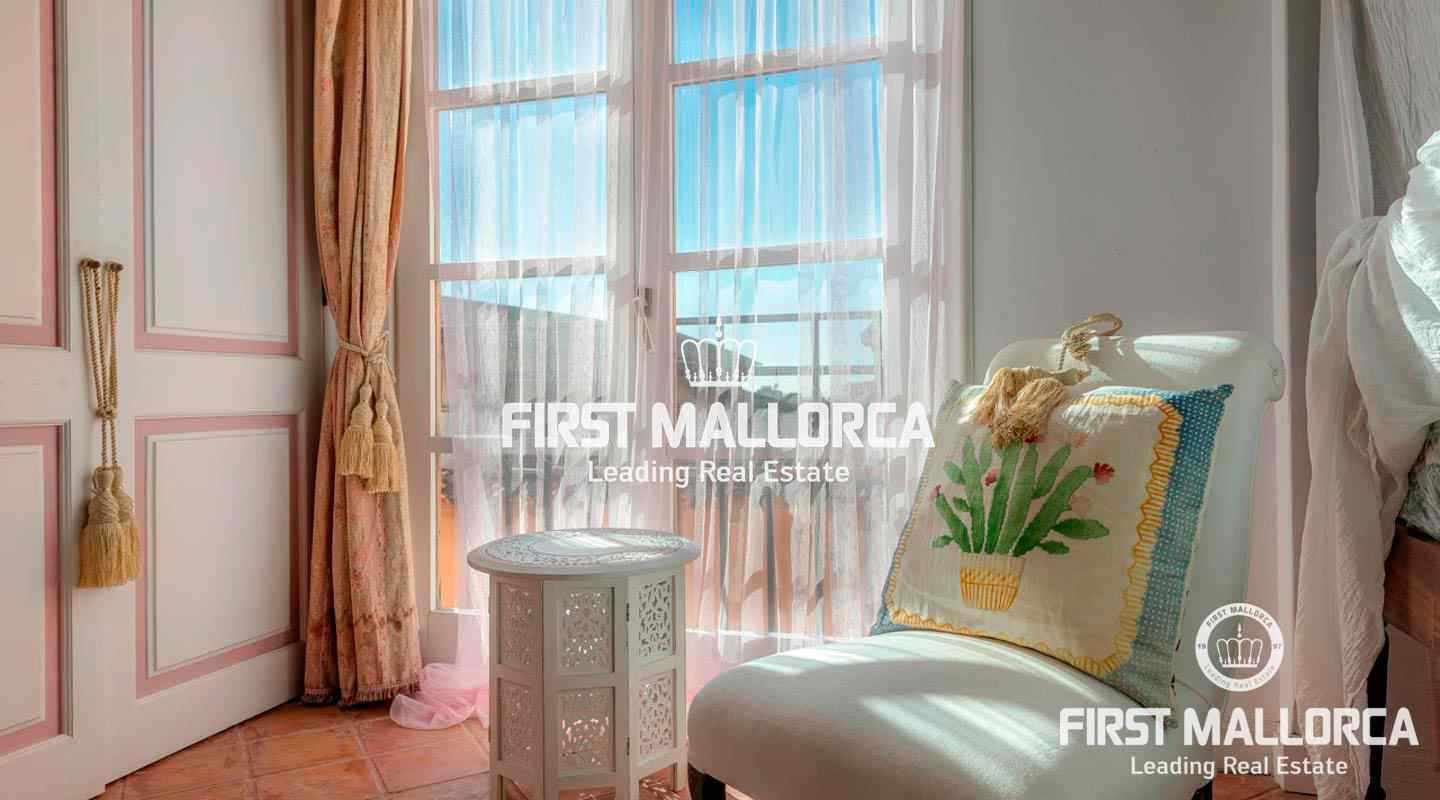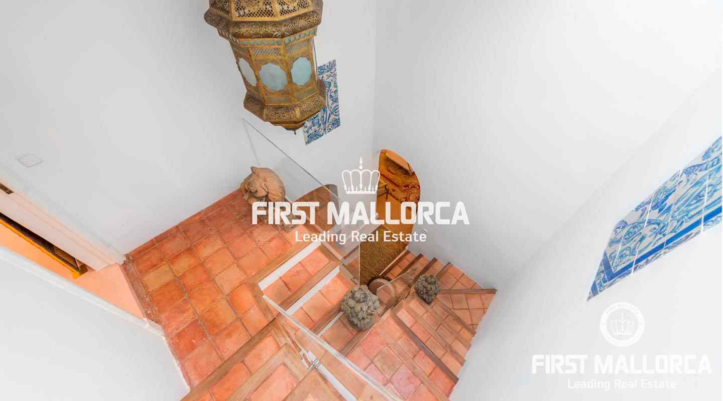 The penthouse is distributed over 3 levels and has been designed combining an extraordinary and special Moroccan style with traditional Majorcan elements. In the entrance level we have a welcoming lobby leading into the special living room with a fireplace and a terrace, kitchen and dining area and one bedroom with an en suite bathroom. The first level has a bedroom suite with a large Jacuzzi and the third level has a second living room and a large en suite bedroom with a private sunny terrace.