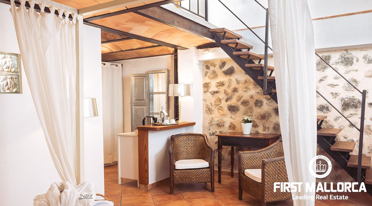 Charming boutique hotel in the heart of the Tramuntana mountain range of typical Mallorcan construction with a rustic and modern touch, perfect for those looking for a business in a natural environment, panoramic views of the Tramuntana mountain range, a quiet atmosphere and a loyal clientele.