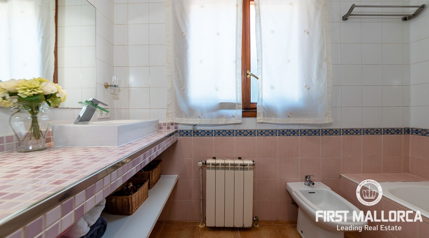 This villa located in quiet countryside consists of 2 separate living places with separate entrances and each with 4 bedrooms, 3 bathrooms, big kitchen and living/dining room with fire place. There is also a large multi-use basement, nice palm entrance and a big legal pool in excess of 55m2. If you're looking for a spacious property in very peaceful country area only 20 minutes from Palma and 2 km from the town centre, do not hesitate to contact us.