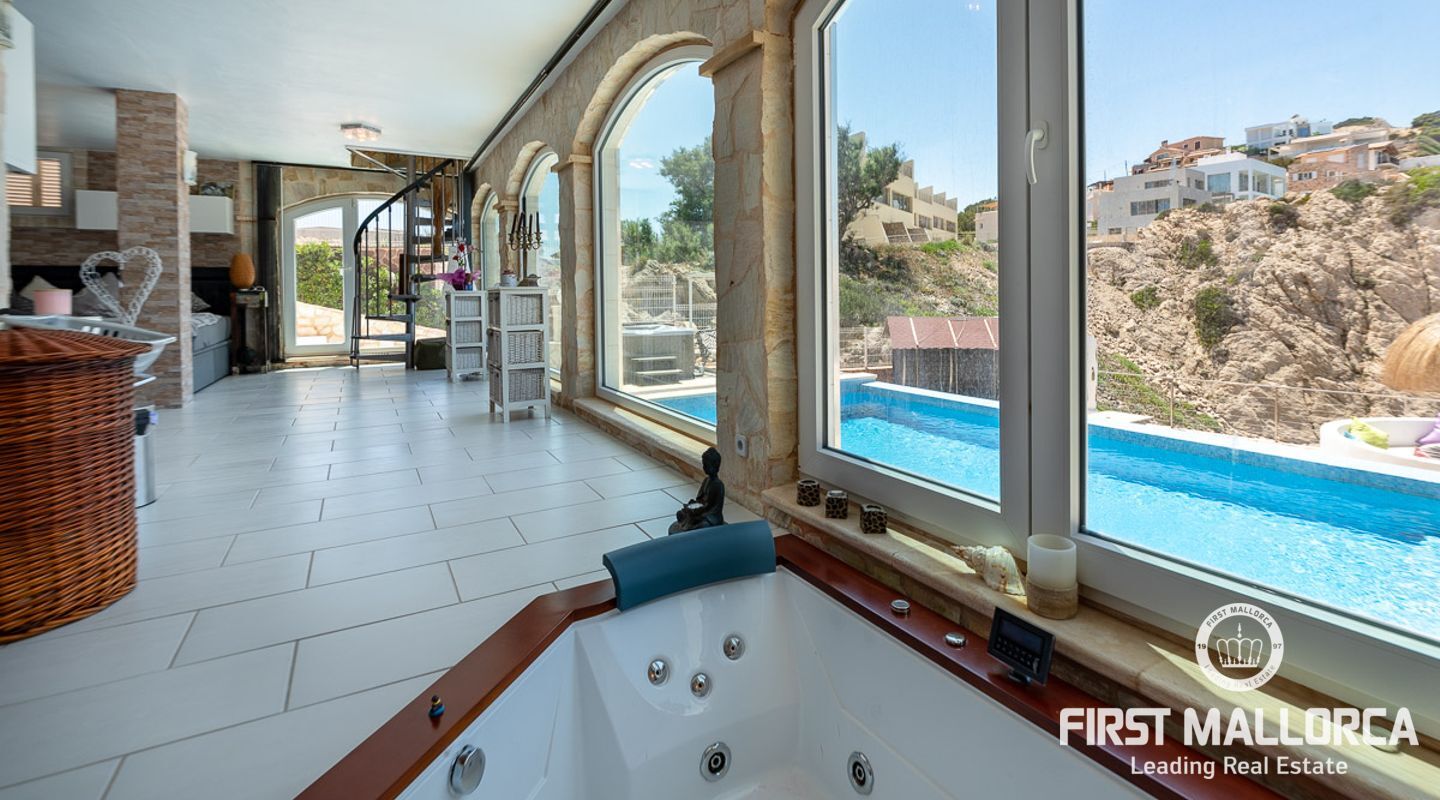 This front line villa is one of the unique properties in the area of Cala Lliteres in the municipality of Capdepera, located directly on the sea front. In total it contains 4 bedrooms, an impressive living room with sea views and the villa has direct access to the beach. Equipped with sauna, gym and a swimming pool with a large solarium with open sea and mountain views. Cala Literes with transparent waters, located in an urban area, has a diving school, the oldest in the area, has a bar service throughout the day, and at night its restaurant offers the possibility to dine a few meters from the sea. This cove is linked to the beach of Cala Agulla by a beautiful promenade that runs along the coast, ideal for enjoying unforgettable full moon nights.
