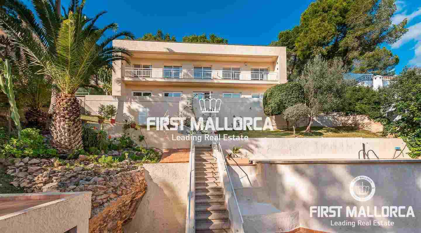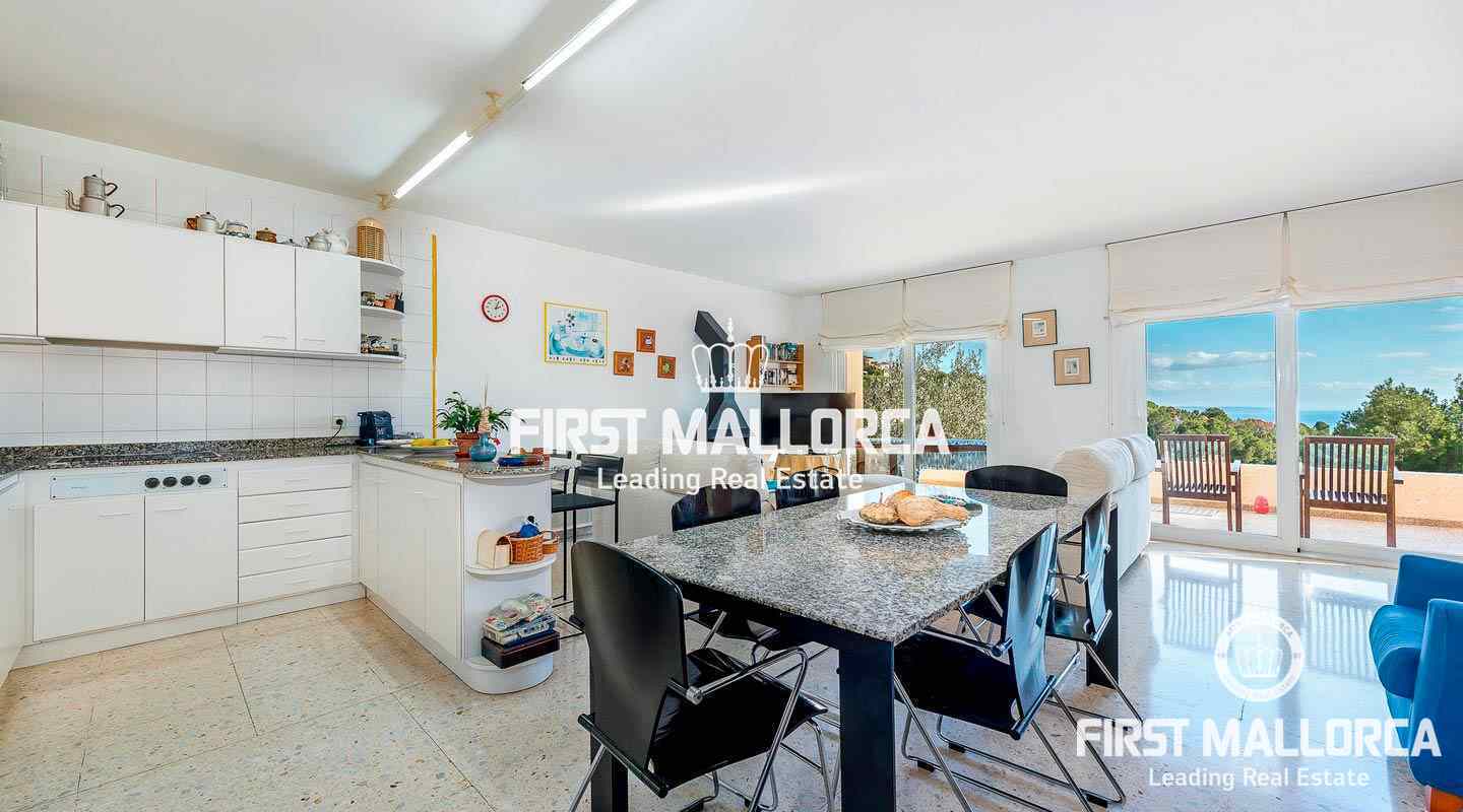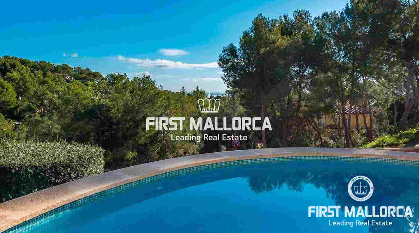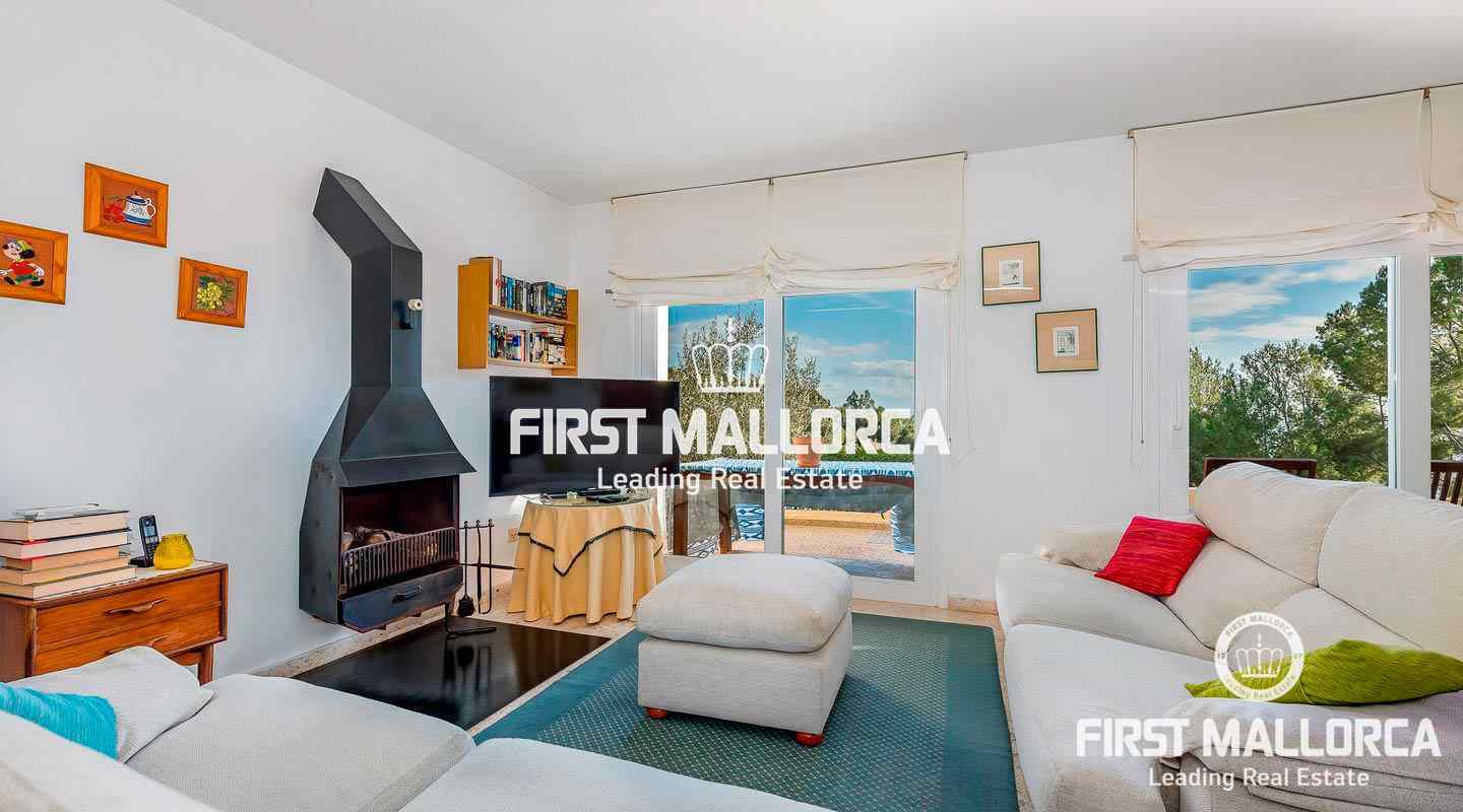 Further features include hot/ cold air conditioning, stone floors, double glazing, fitted wardrobes and a guest WC. In addition, there is a large separate room for storage or parties and a carport for 3 cars. Please contact one of our FIRST MALLORCA real estate agents for more information about this villa in the south-west of the island and arrange a viewing today.