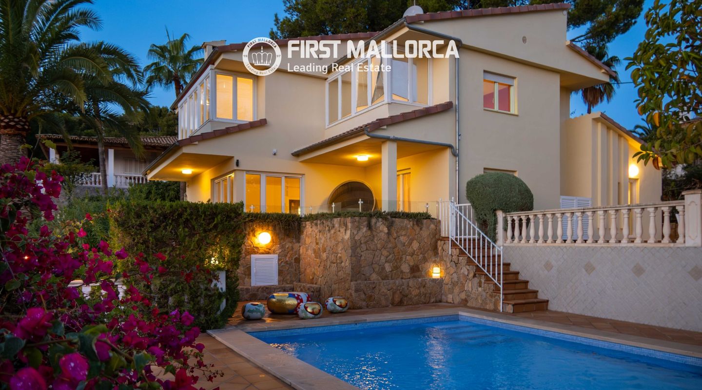 Located in Costa d’en Blanes, this villa features 4 spacious bedrooms, 2 bathrooms, a pool area, and a large terrace surrounded by a well-maintained garden. Just a 5-minute drive away are two beautiful turquoise-water beaches and Puerto Portals, offering a variety of international dining options and year-round leisure activities.