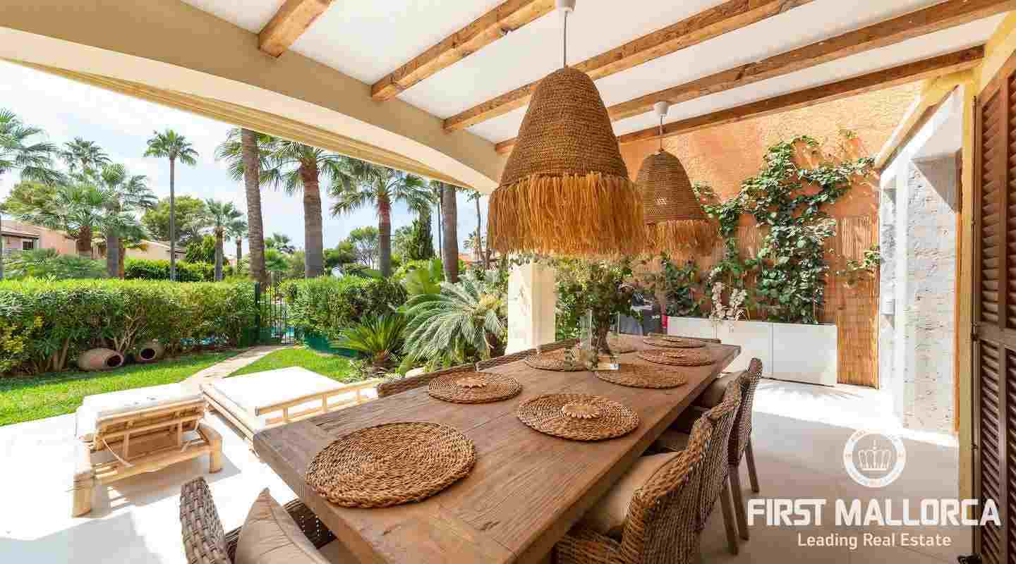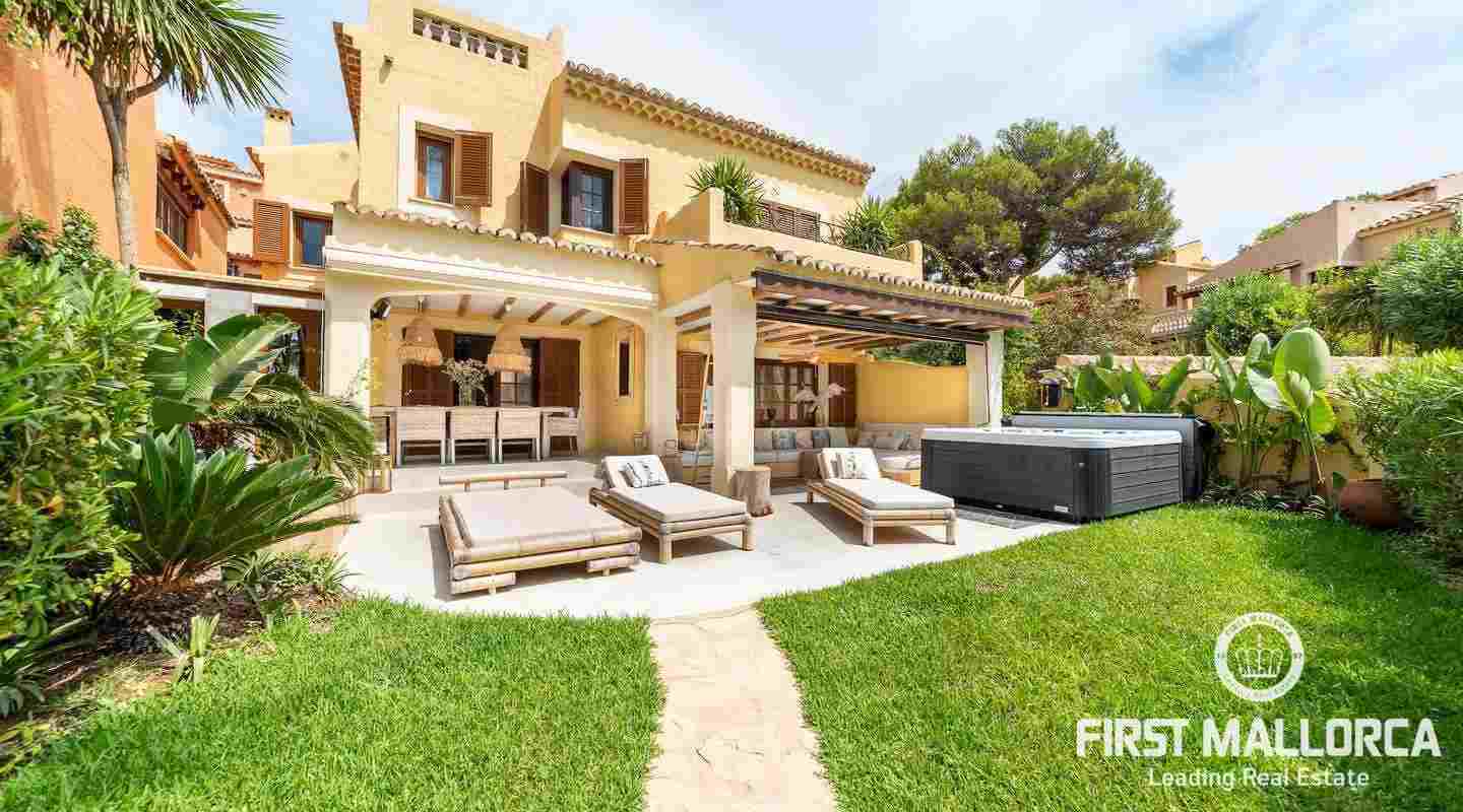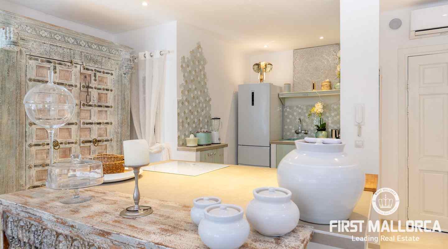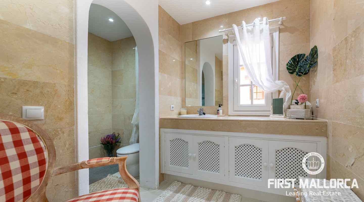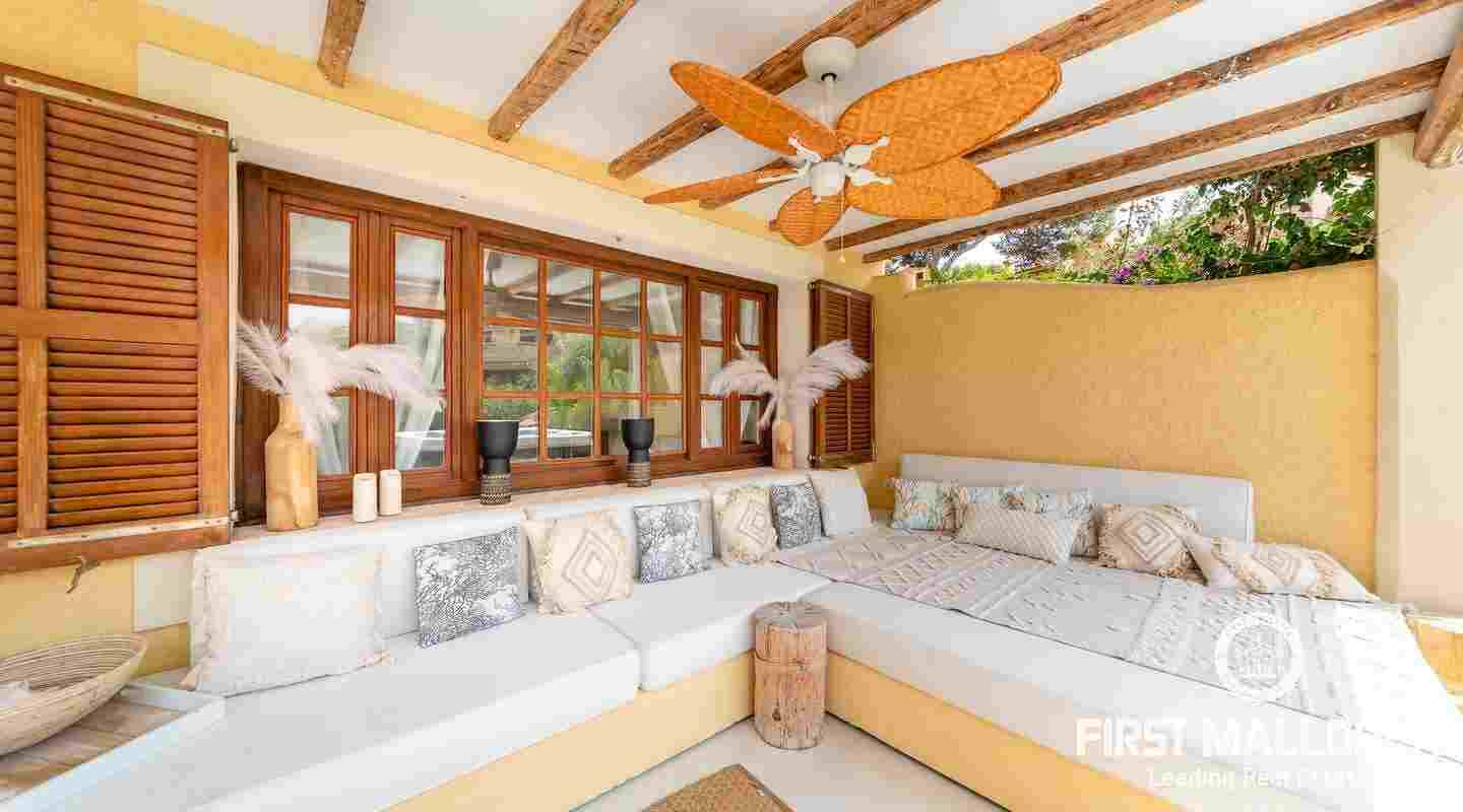 The villa that shines on two levels with an Ibiza-Style interior offers a constructed area of 186 m2 and comes with 3 bedrooms, 2 bathrooms, one of them ensuite and a seperate guest WC. There is a bright open living-dining area and an inviting open plan kitchen with cooking island. In the exterior part you can enjoy the beautiful terrace with lounge area and private jacuzzi. From the roof top terrace you there are magnificent views.