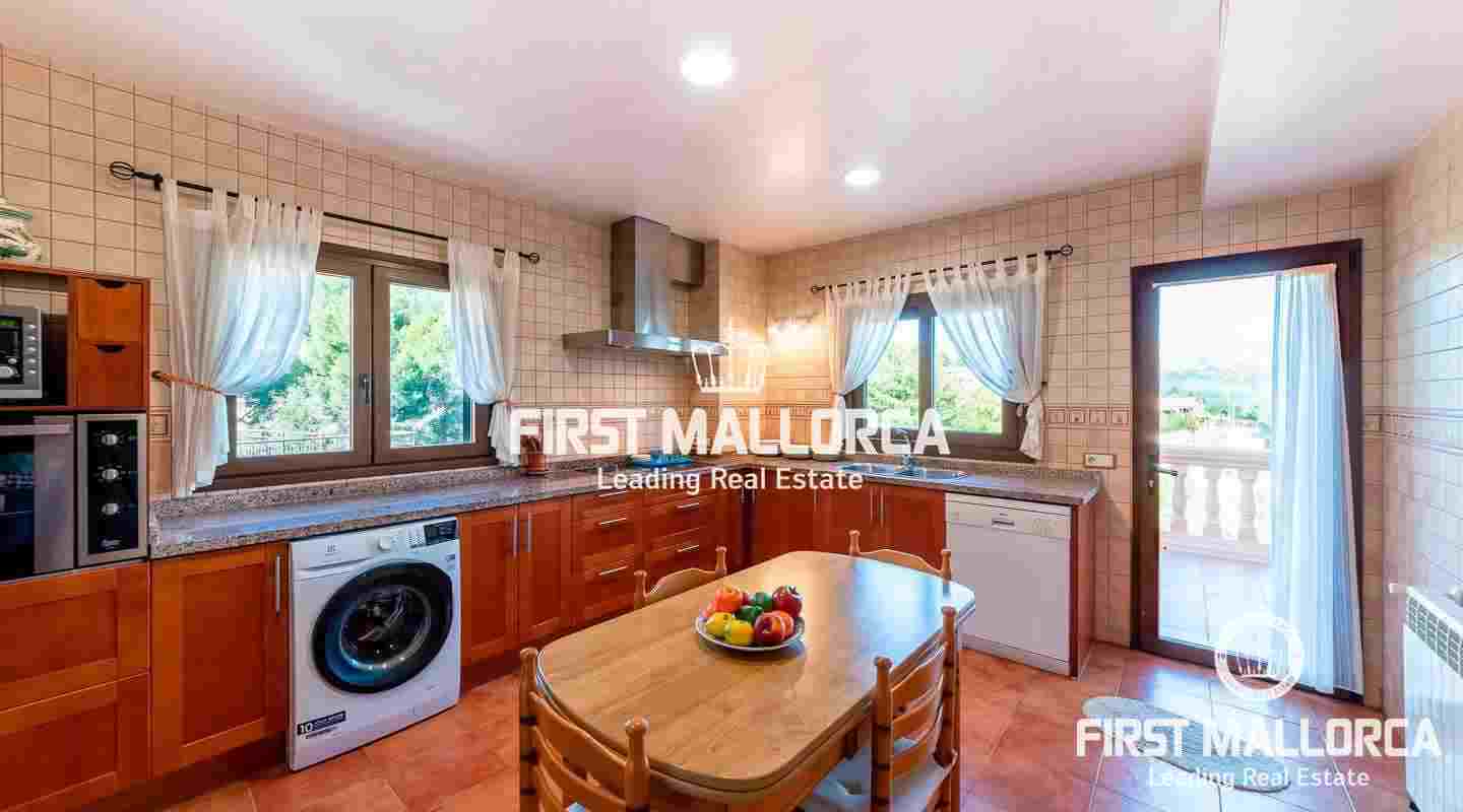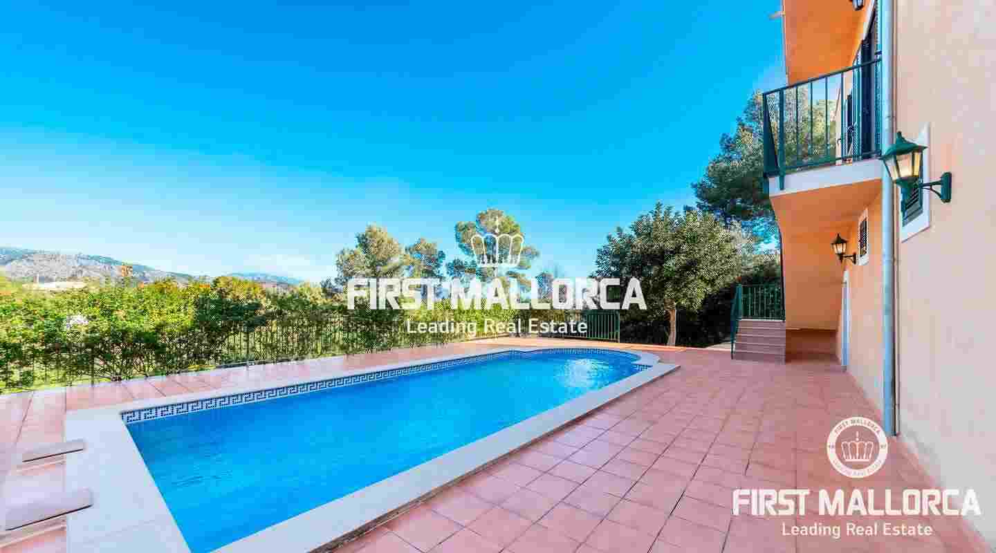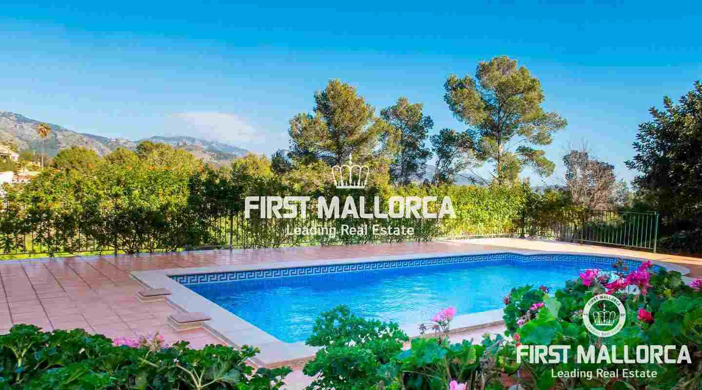 The approx. 200 m² of living space are divided as follows: Living-dining room, kitchen, 4 bedrooms, 3 bathrooms (1 en suite) and a storage room. The land has a size of approx. 2,000m². The features and facilities of this property include tiled floors, iroko wood doors, cimalit, aluminum shutters, central heating, 42 m² pool, barbecue, hot and cold air conditioning, storage room, 2 water tanks and a garage for two cars. Unique opportunity to live next to a village just 10 minutes from Palma.