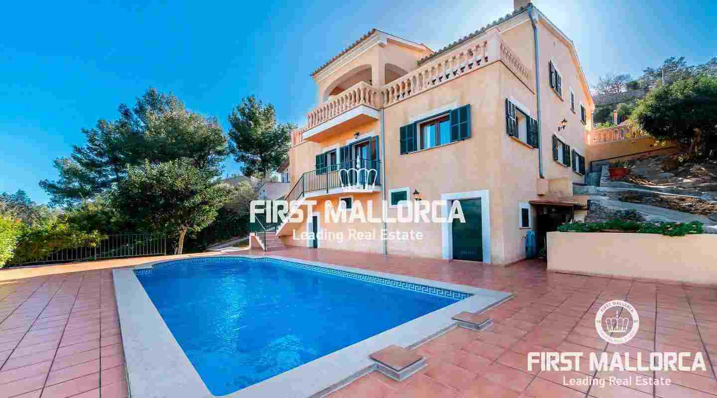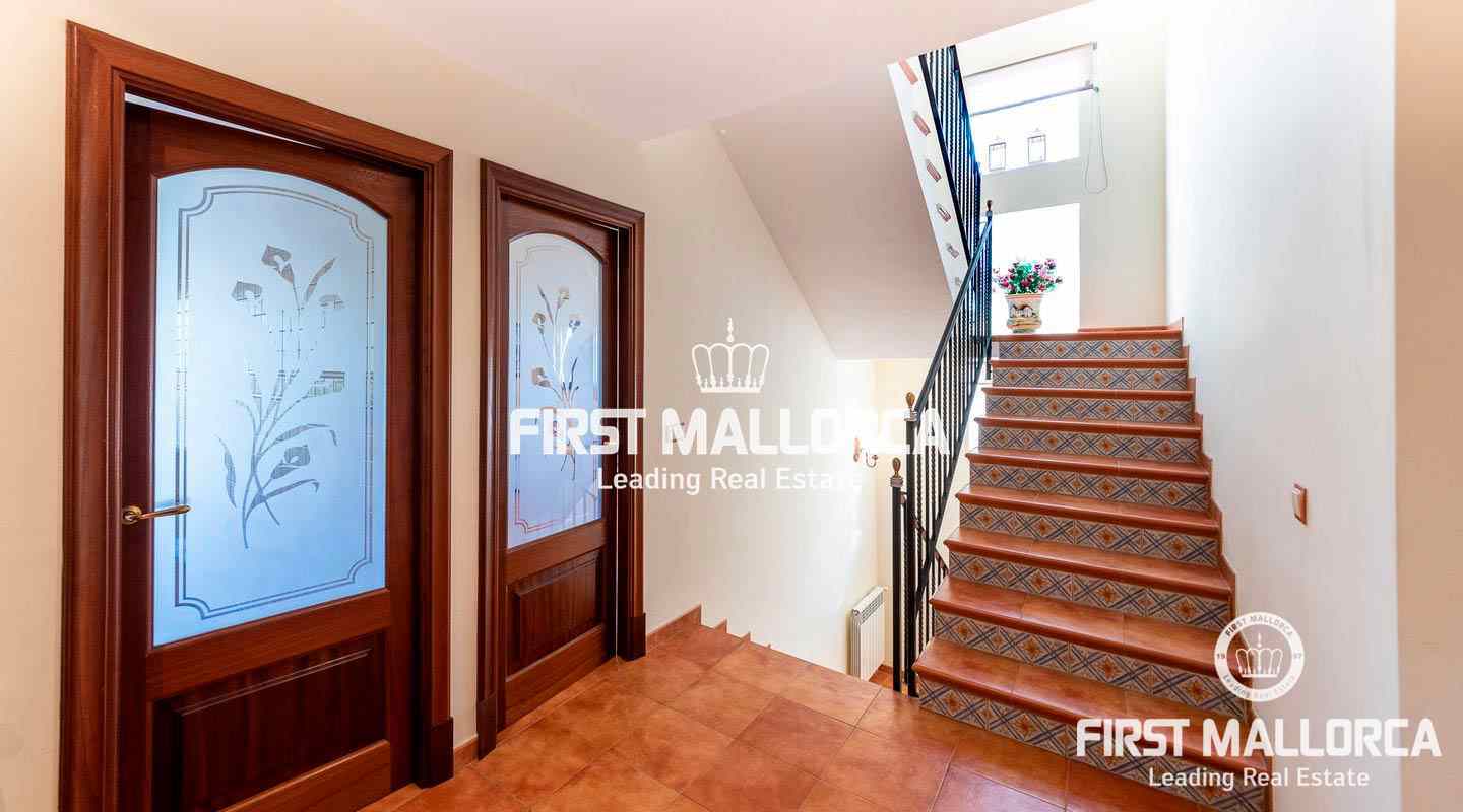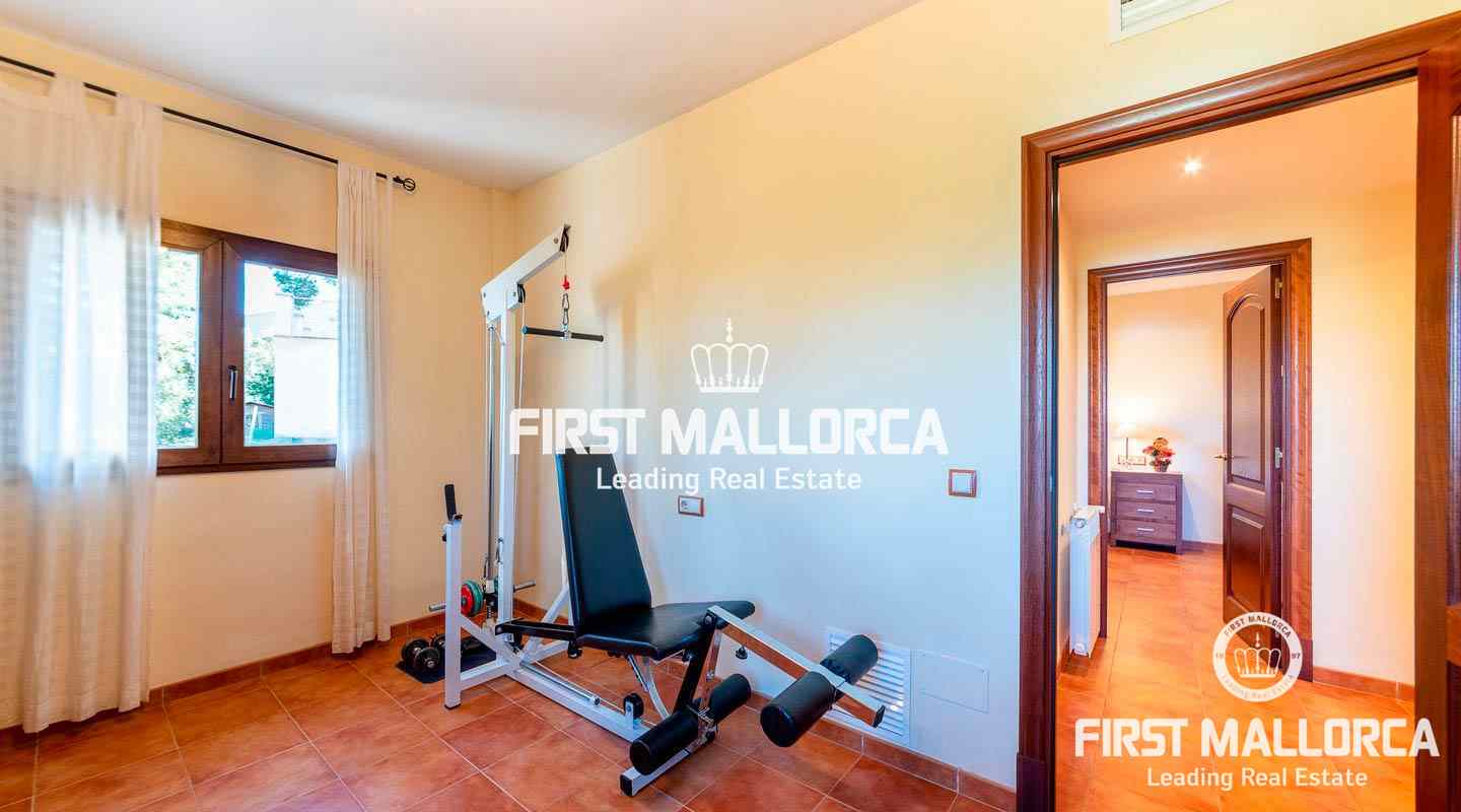 The approx. 200 m² of living space are divided as follows: Living-dining room, kitchen, 4 bedrooms, 3 bathrooms (1 en suite) and a storage room. The land has a size of approx. 2,000m². The features and facilities of this property include tiled floors, iroko wood doors, cimalit, aluminum shutters, central heating, 42 m² pool, barbecue, hot and cold air conditioning, storage room, 2 water tanks and a garage for two cars. Unique opportunity to live next to a village just 10 minutes from Palma.