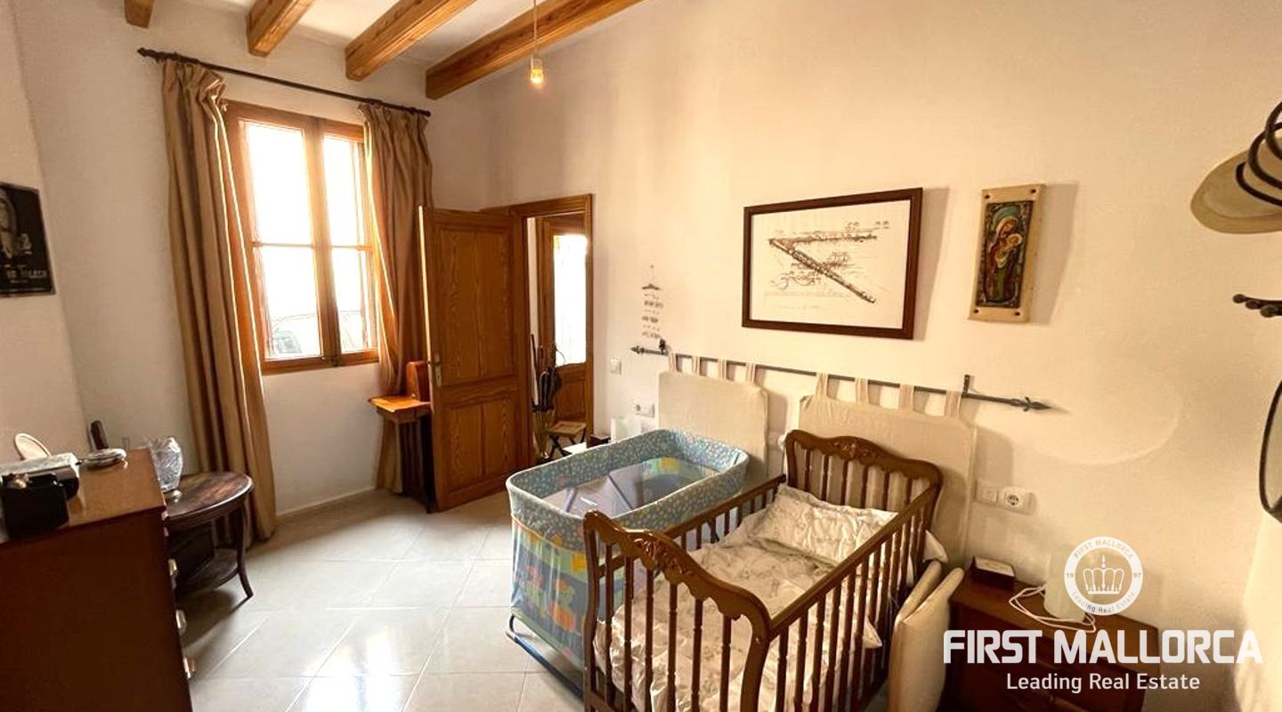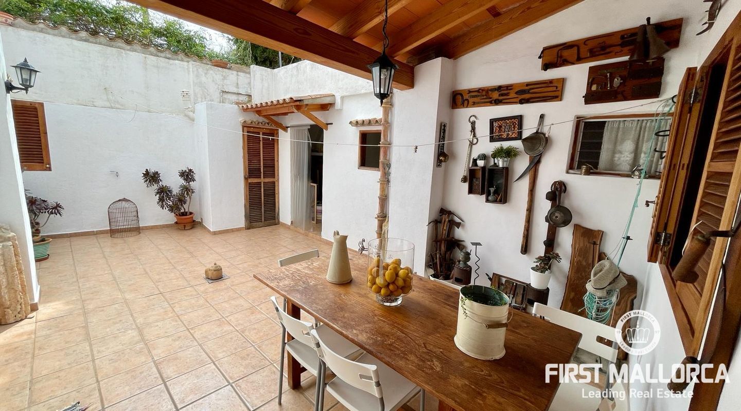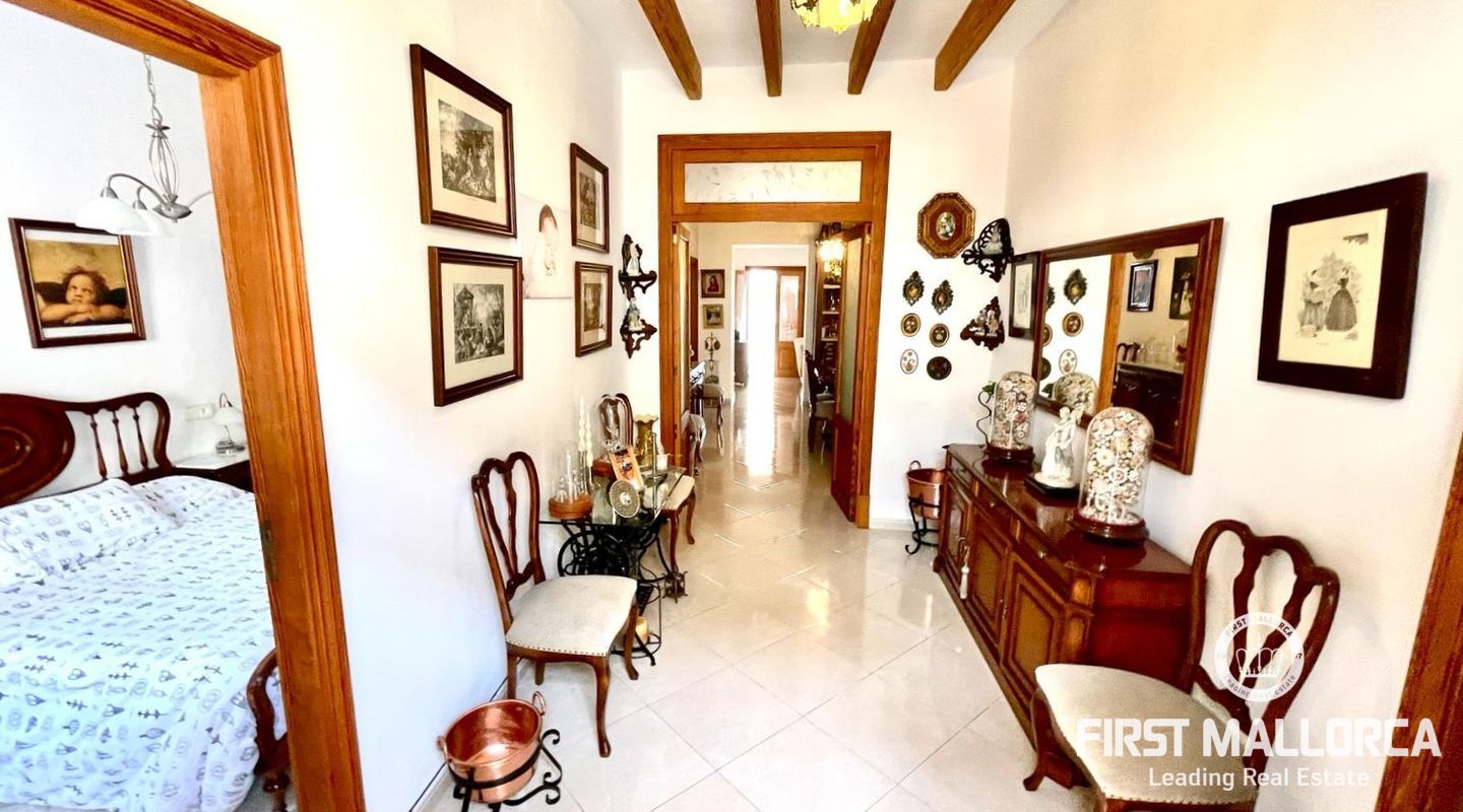 Two-storey typical Majorcan village house with interior patio. The house is distributed in two independent flats. The upper floor consists of three bedrooms, a bathroom, living-dining room, kitchen with access to a small terrace, utility room and pantry. The ground floor offers four bedrooms, a bathroom, a kitchen and a utility room. There is also a patio with a little porch and an outside toilet. The roof loft offers the possibility of an extension and a roof terrace with wide views to Llucmajor completes the amenities.