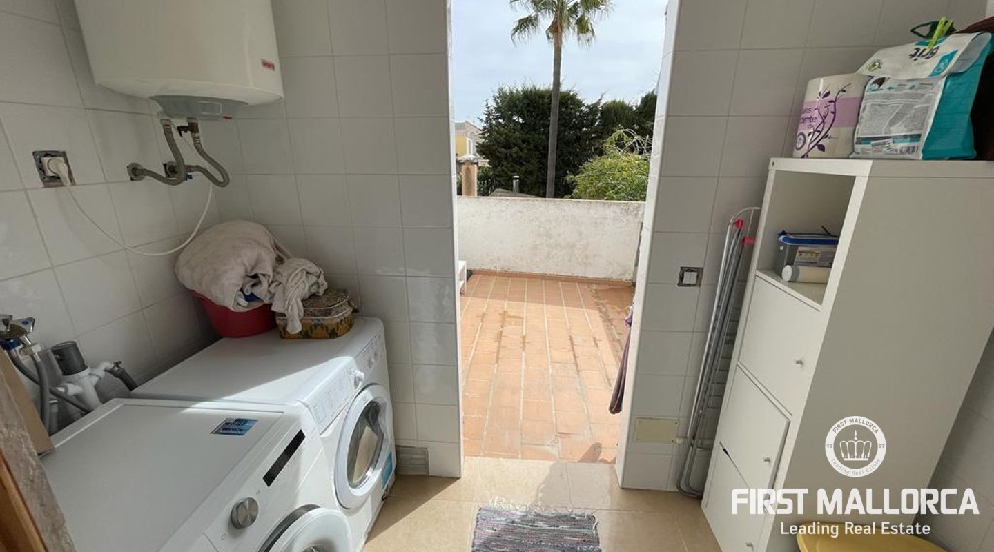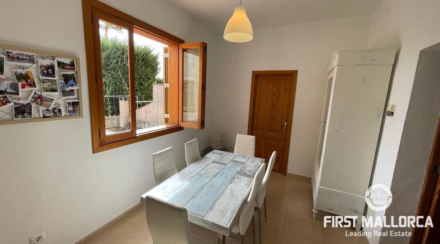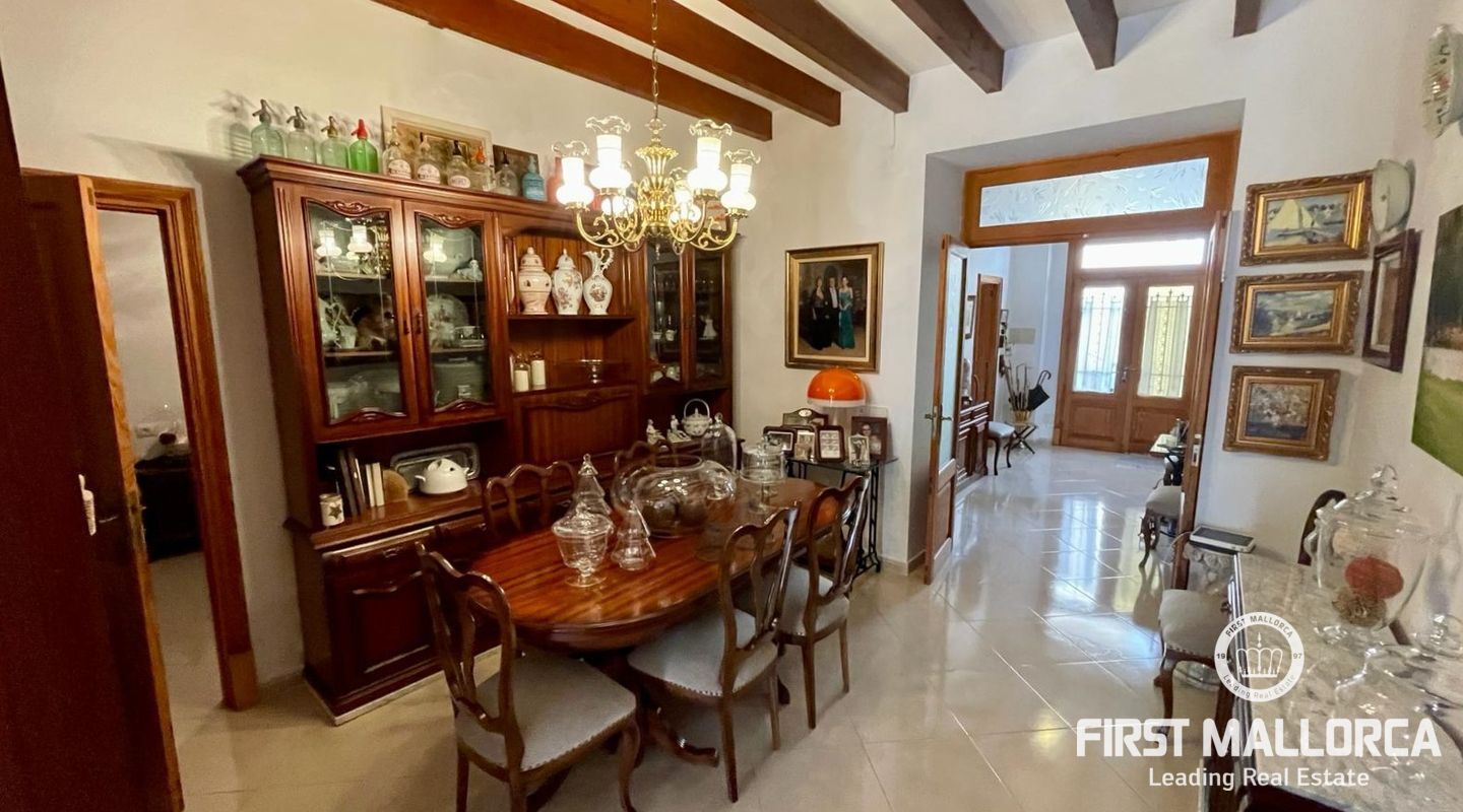 Two-storey typical Majorcan village house with interior patio. The house is distributed in two independent flats. The upper floor consists of three bedrooms, a bathroom, living-dining room, kitchen with access to a small terrace, utility room and pantry. The ground floor offers four bedrooms, a bathroom, a kitchen and a utility room. There is also a patio with a little porch and an outside toilet. The roof loft offers the possibility of an extension and a roof terrace with wide views to Llucmajor completes the amenities.