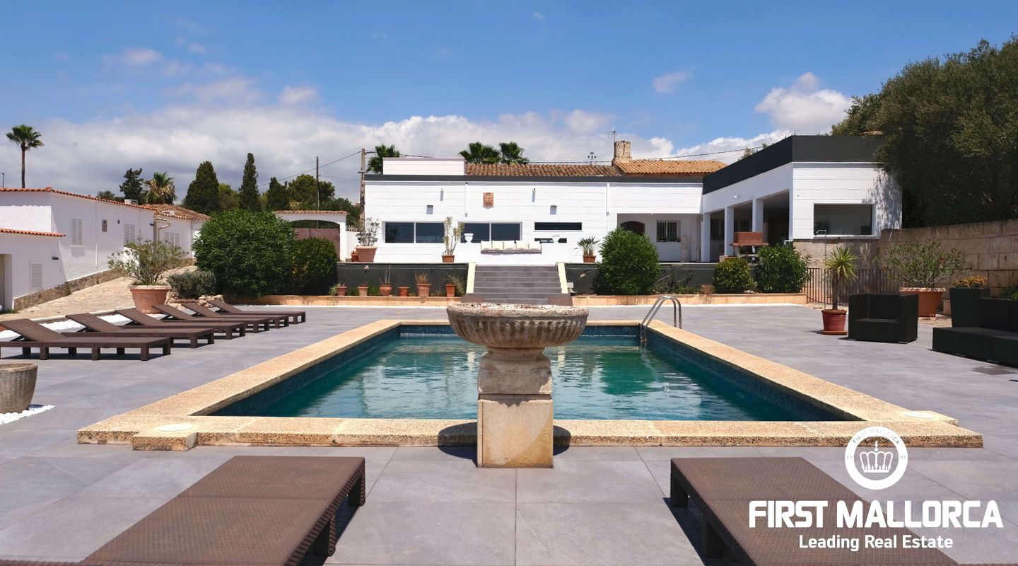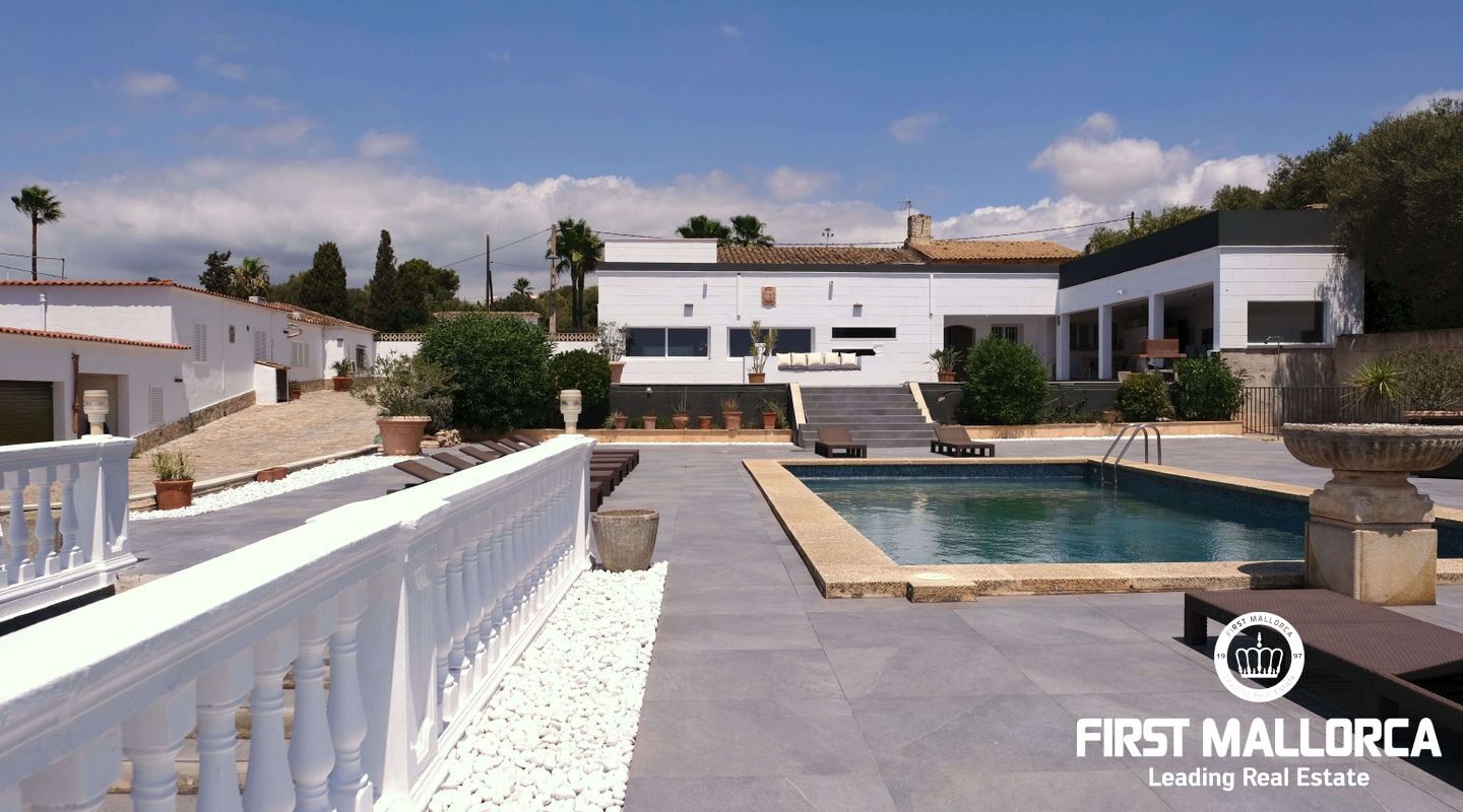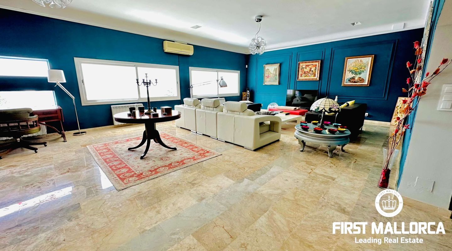 Only 10 minutes away from Playa de Palma and the airport, and 15 minutes away from the centre of Palma. Exclusive, quiet and very private area, with two independent entrances from two different streets. Villa with more than 600 m2 (main house 550m2 + service house of 100m2), and 2.700 m2 of plot, with large solarium and swimming pool of 10mx5m, illuminated private tennis court.
