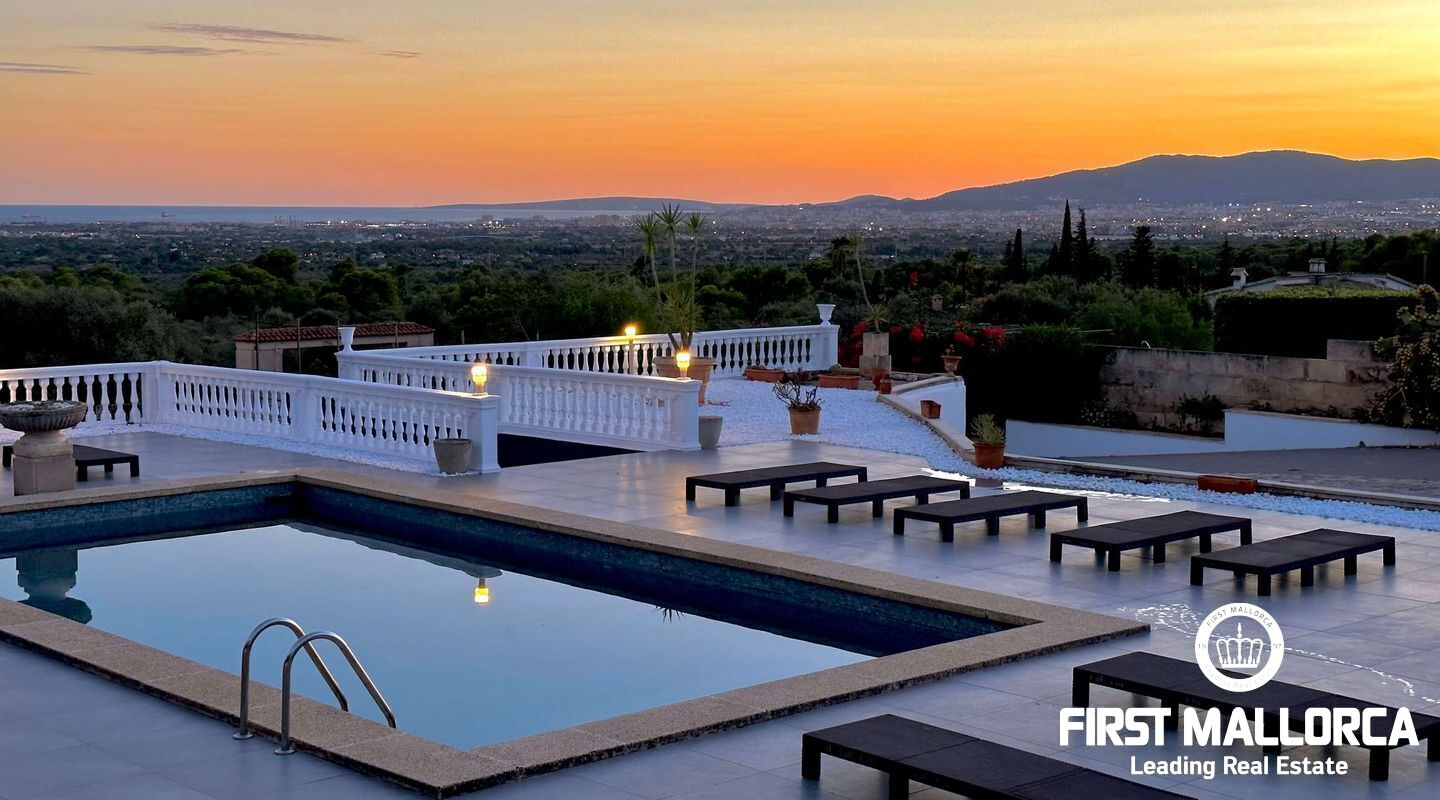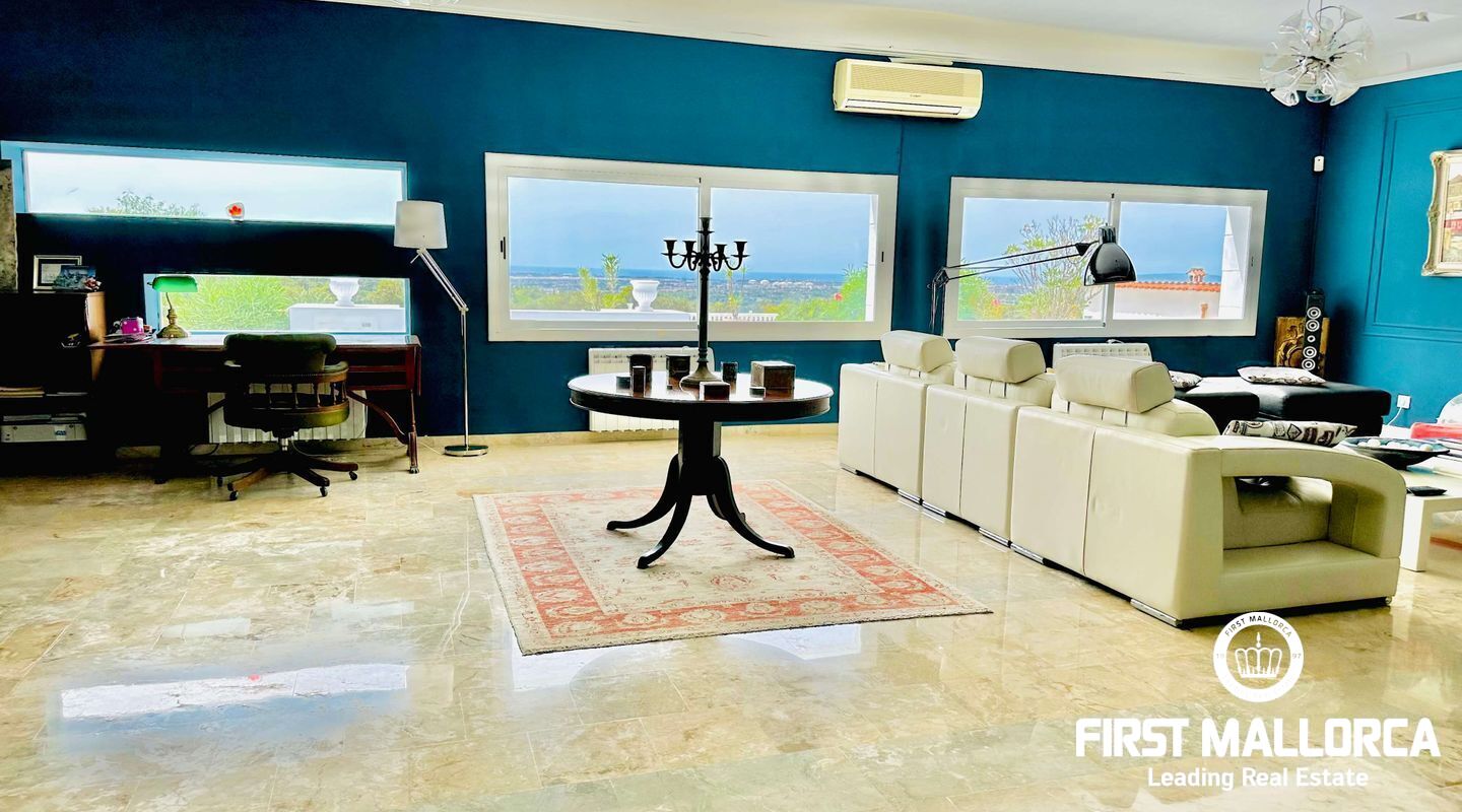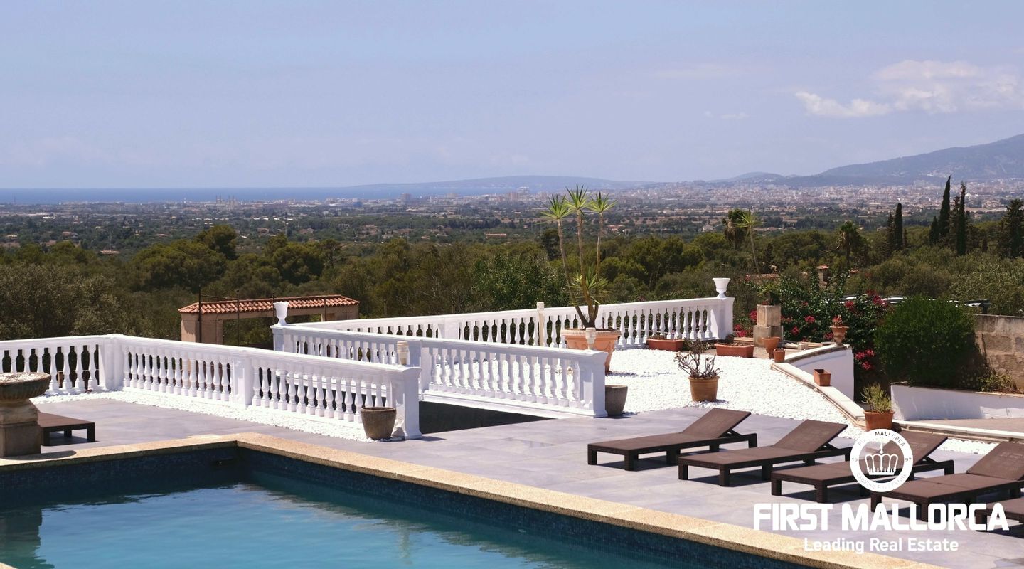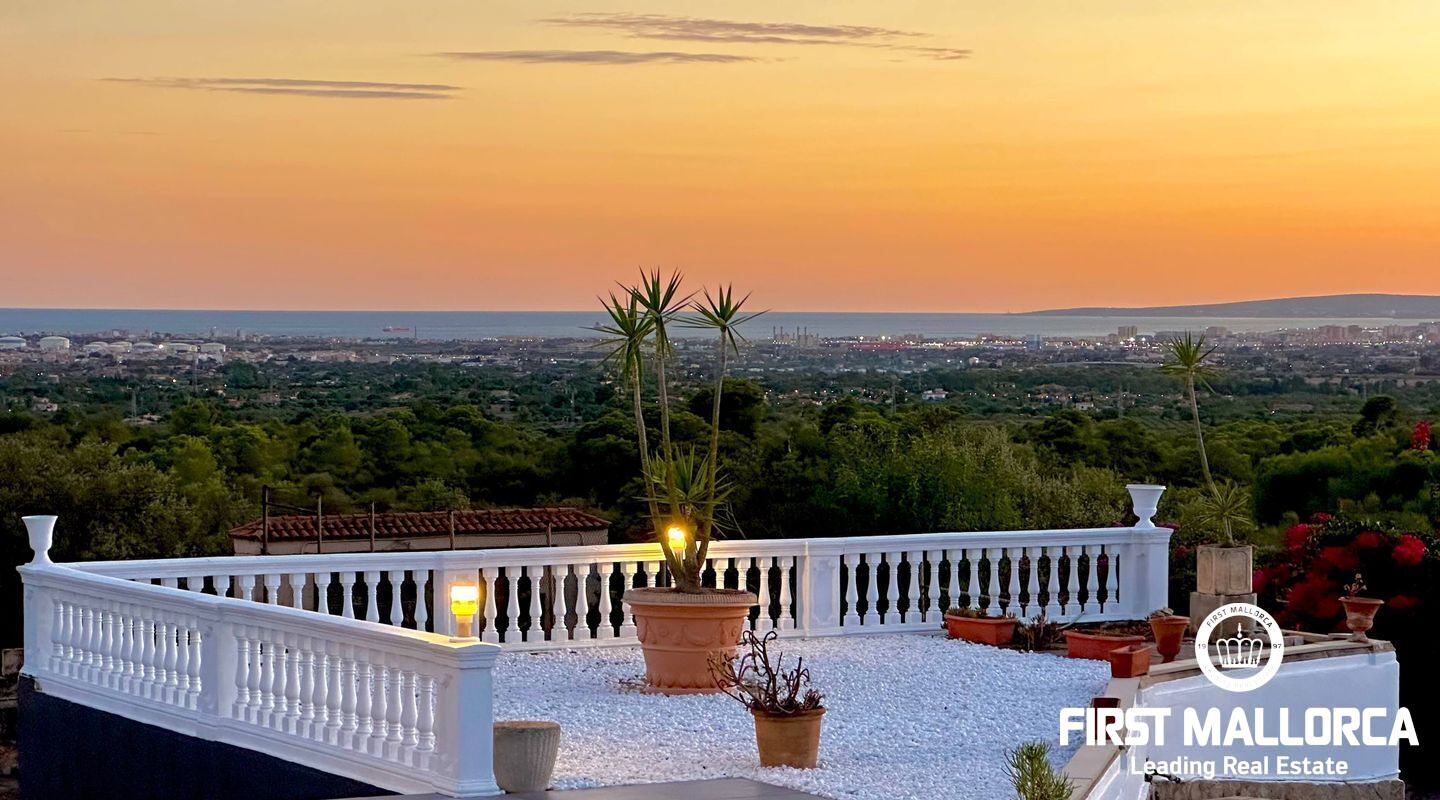 Charming villa with panoramic views over the bay of Palma de Mallorca. Views at the same time: to the sea, to the city of Palma and to the mountains.