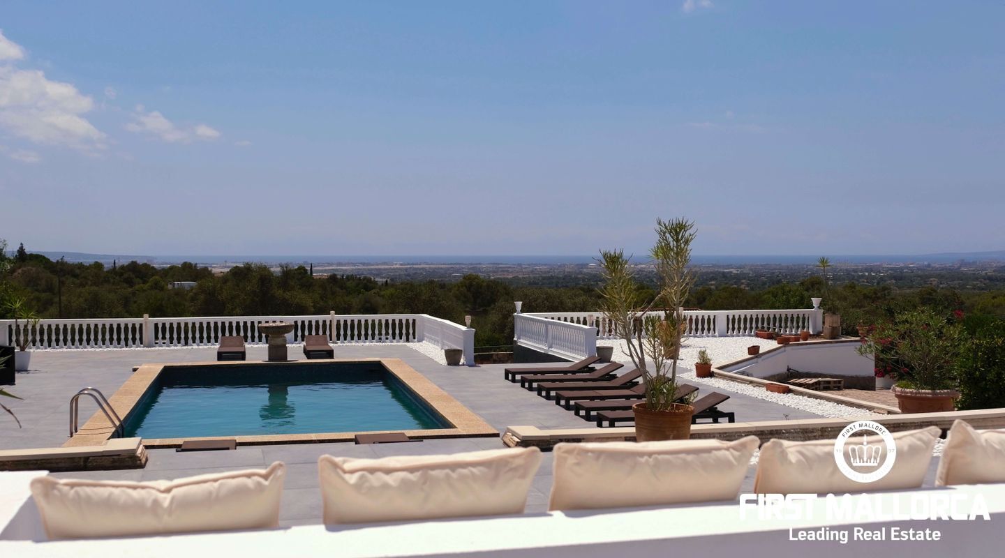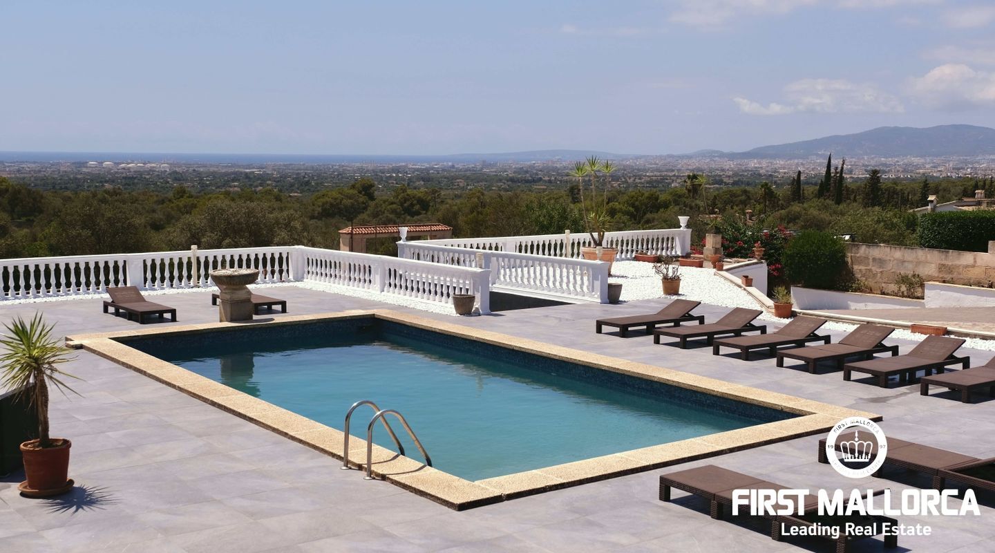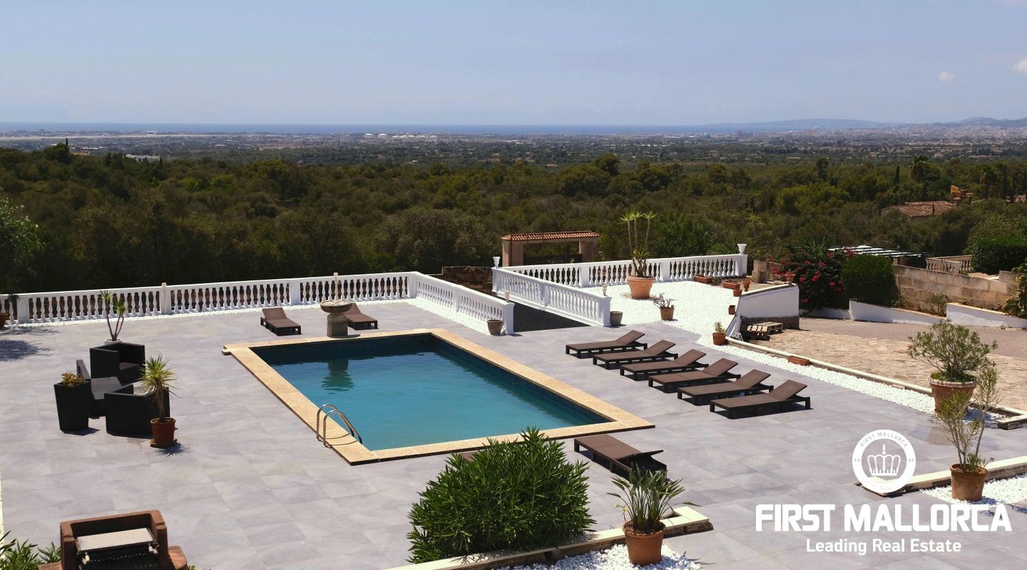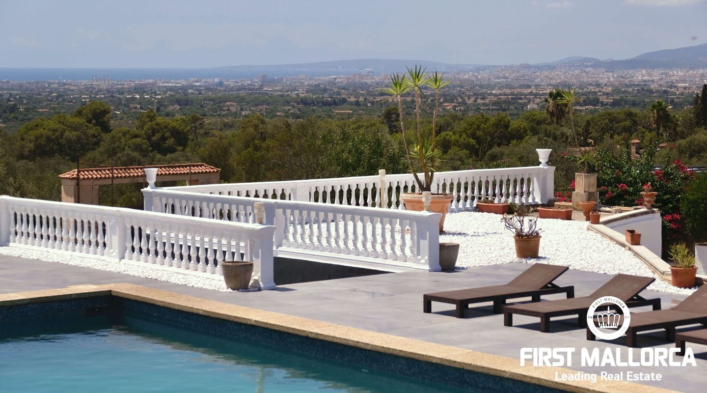 Charming villa with panoramic views over the bay of Palma de Mallorca. Views at the same time: to the sea, to the city of Palma and to the mountains.