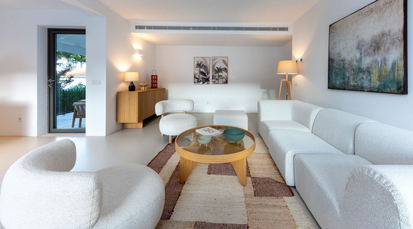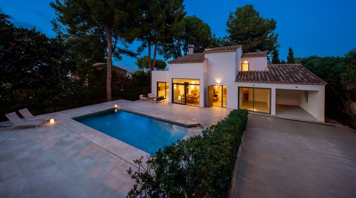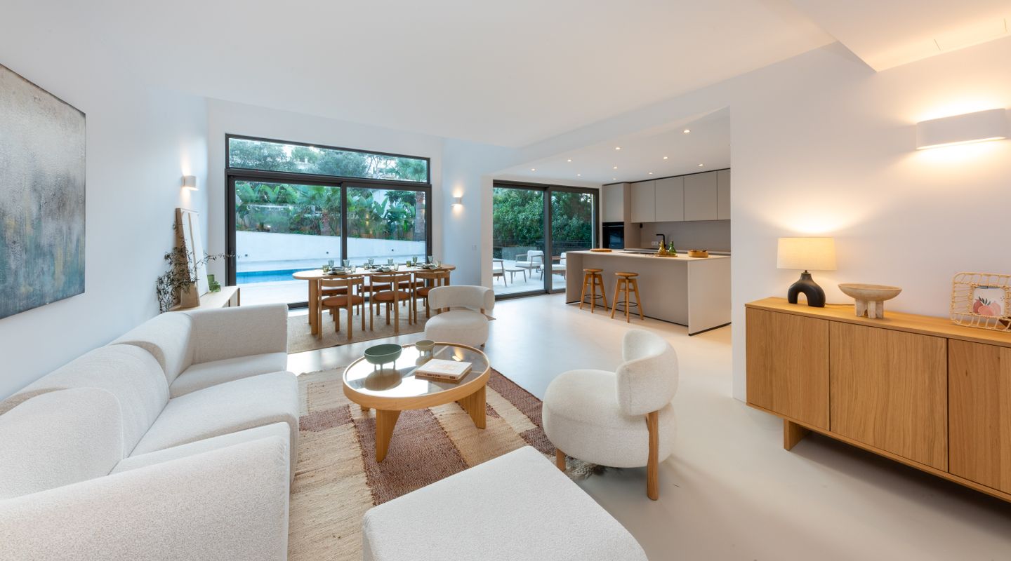 This fully renovated house is located in a prime position on the so-called “Ensaimada” of Nova Santa Ponsa. The property offers 3–4 bedrooms and the same number of bathrooms. Two of the bedrooms enjoy pleasant partial sea views over the bay. Several terrace areas, a swimming pool, a small garden, and a garage with two parking spaces complete this attractive offer.