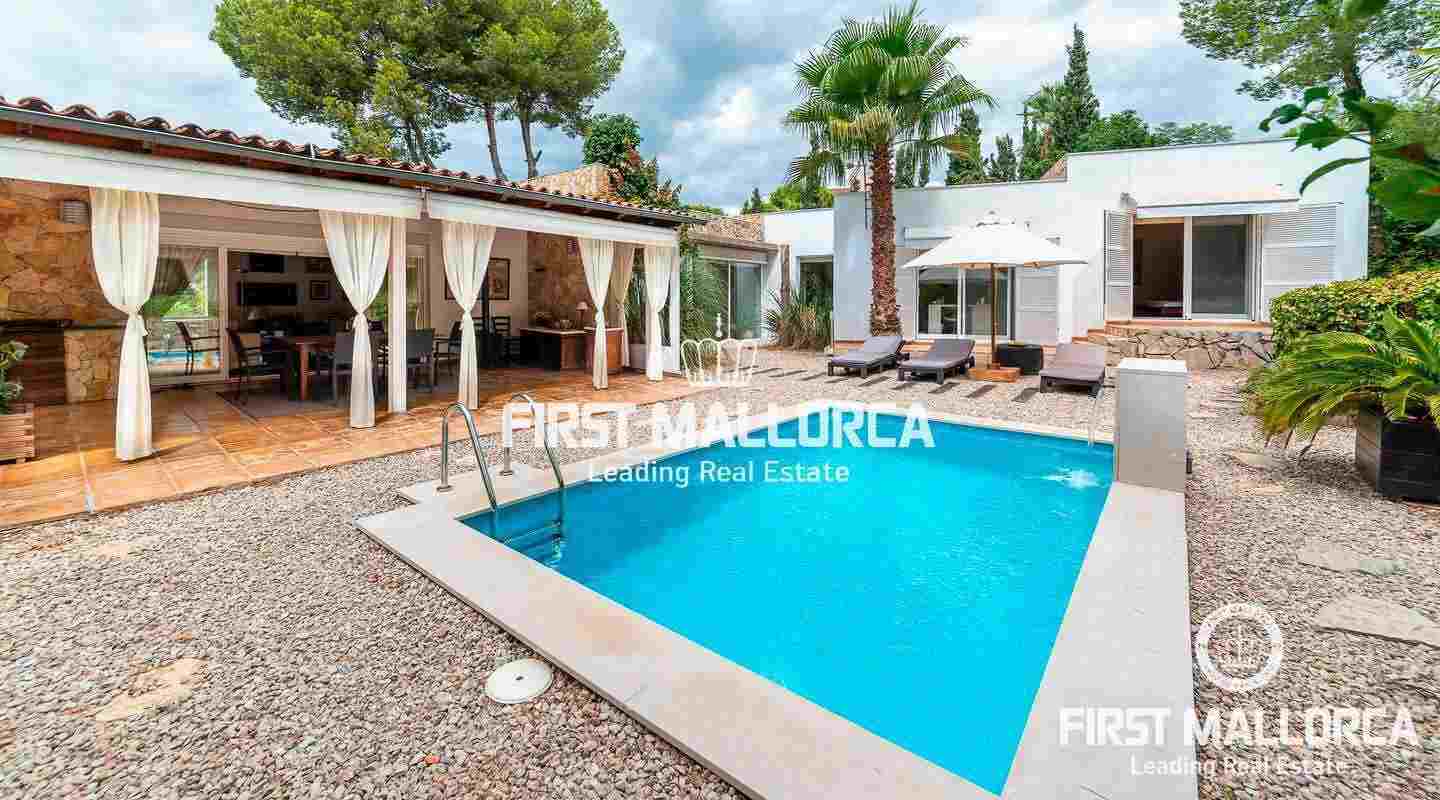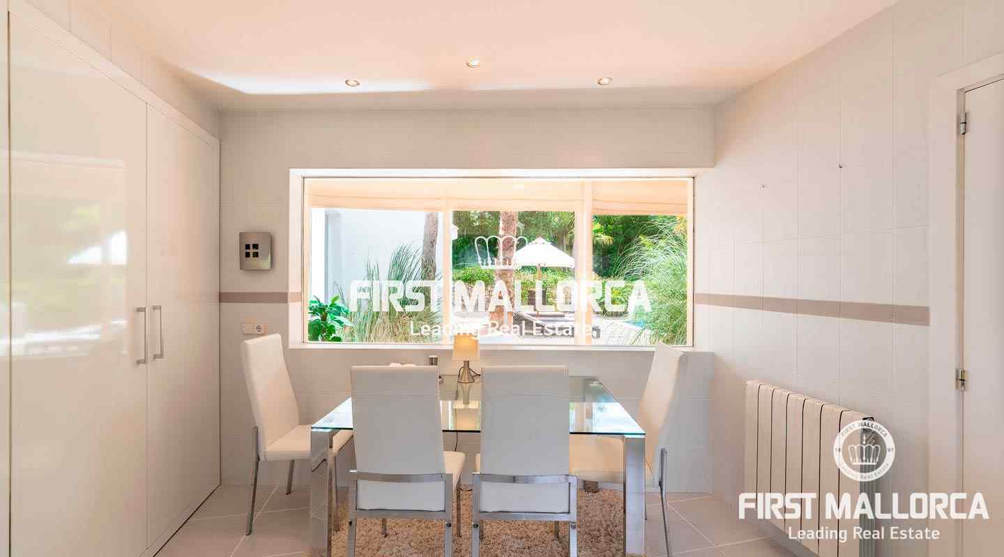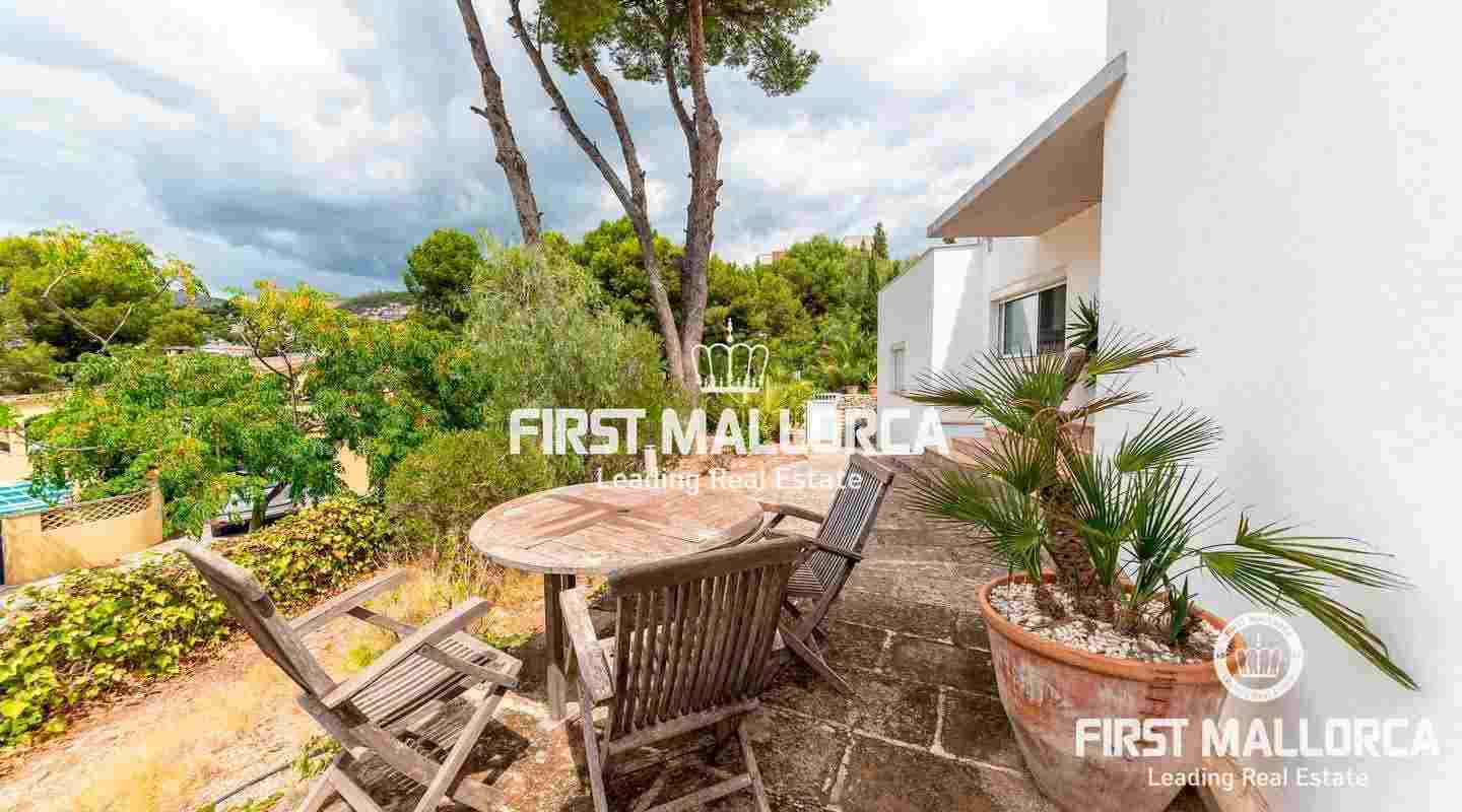 This inviting villa is conveniently located in the heart of the lively village of Portals Nous in a quiet residential street with easy walking distance to all services as well as the elegant Puerto Portals Marina and the beautiful Oratorio Beach. The property is laid out on one level today, allowing maximum use of the space and also practicality. It would however be allowed to add another 84 sqm on the flat roof, making another floor and terrace with sea views. There is furthermore a lovely swimming pool and garden, making it ideal both as a holiday home and a permanent residence. Portals Nous is one of the centre points of Mallorca's bustling southwest coast and the village has maintained its local ambiance dotted with fancy shops and several good restaurants. There are several prestigious private schools in the area, such as Ágora and King Richard III and the city of Palma is a mere 10 minute-drive away.