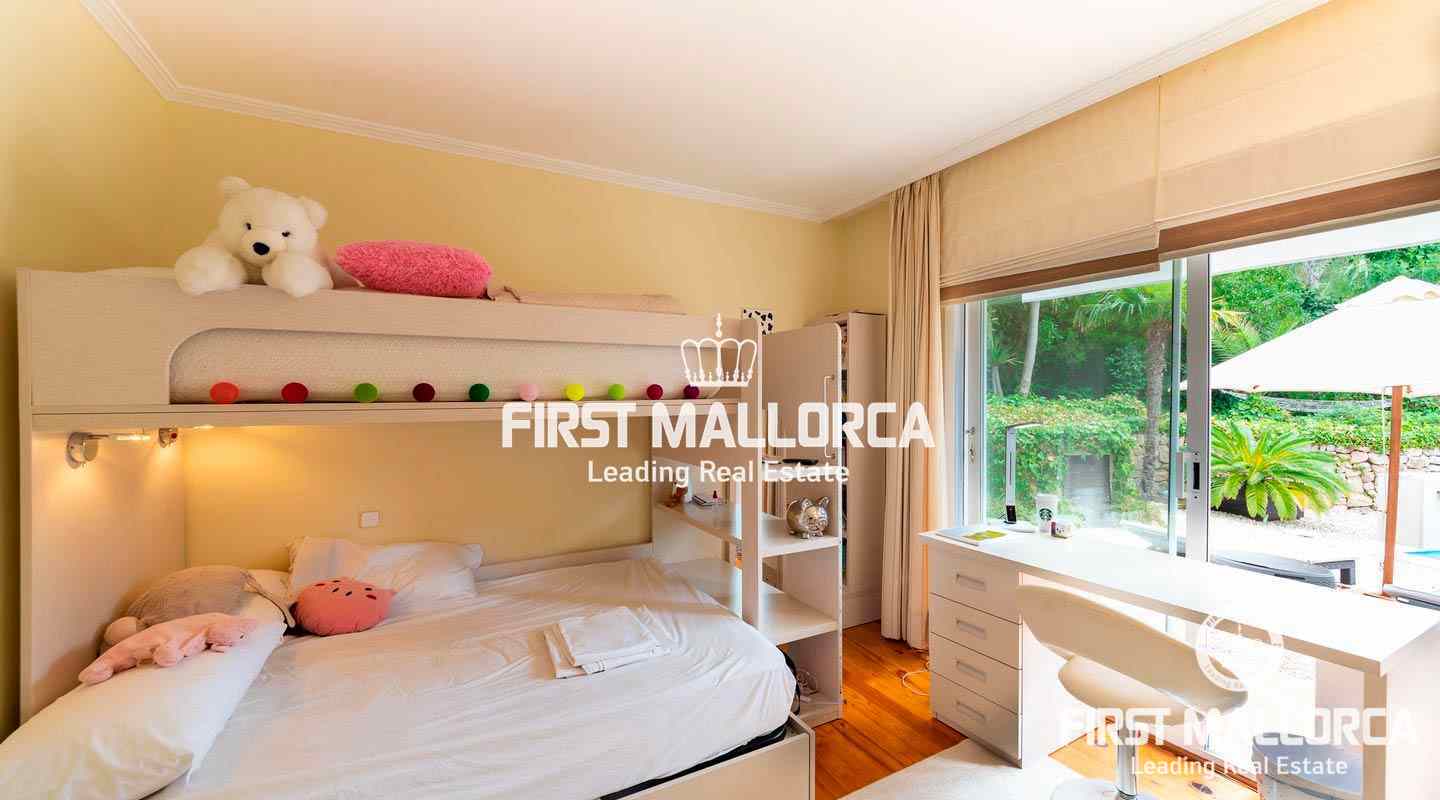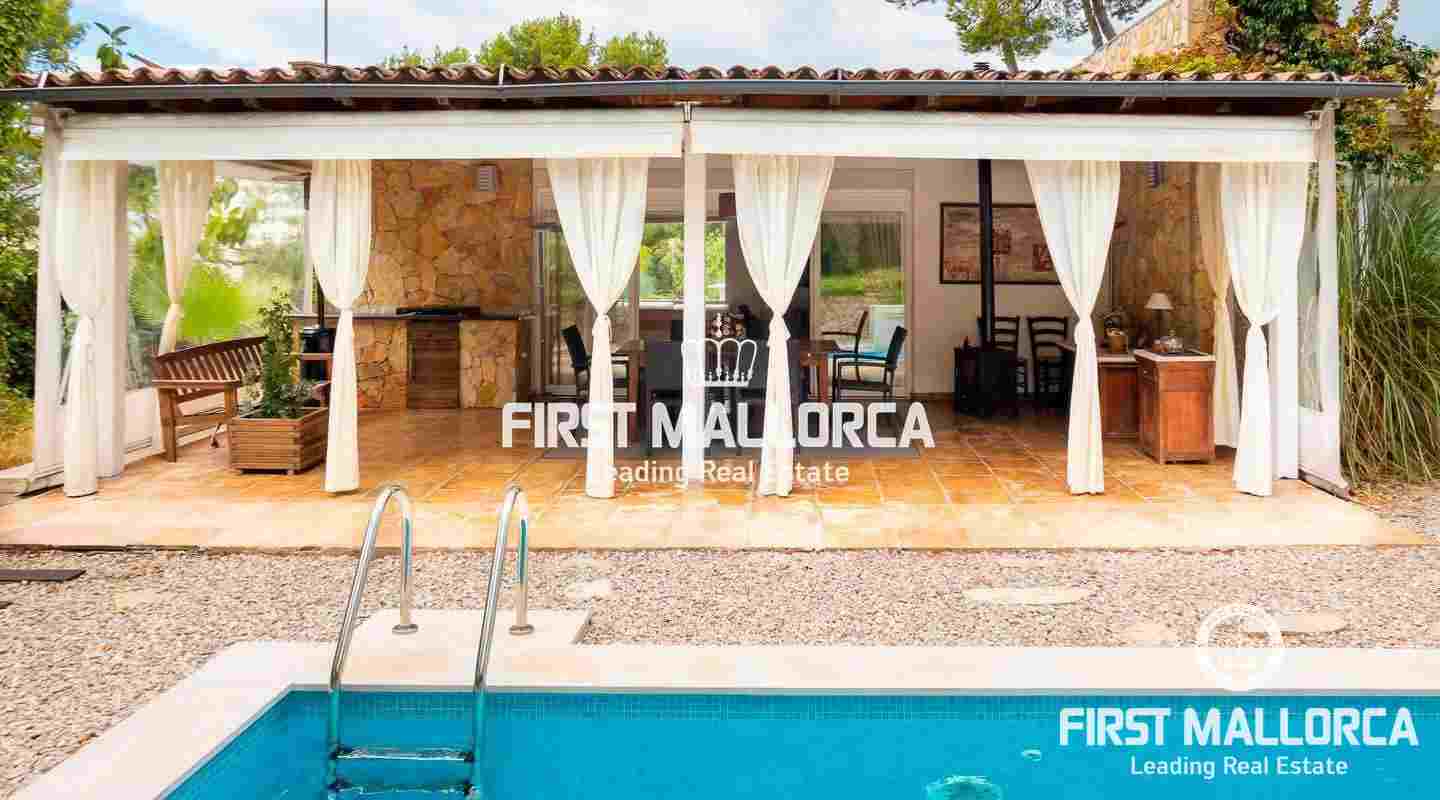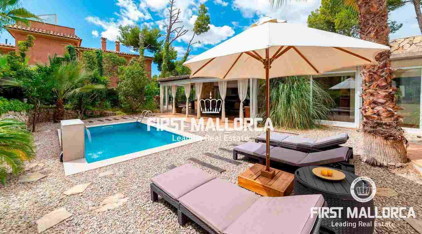 This inviting villa is conveniently located in the heart of the lively village of Portals Nous in a quiet residential street with easy walking distance to all services as well as the elegant Puerto Portals Marina and the beautiful Oratorio Beach. The property is laid out on one level today, allowing maximum use of the space and also practicality. It would however be allowed to add another 84 sqm on the flat roof, making another floor and terrace with sea views. There is furthermore a lovely swimming pool and garden, making it ideal both as a holiday home and a permanent residence. Portals Nous is one of the centre points of Mallorca's bustling southwest coast and the village has maintained its local ambiance dotted with fancy shops and several good restaurants. There are several prestigious private schools in the area, such as Ágora and King Richard III and the city of Palma is a mere 10 minute-drive away.