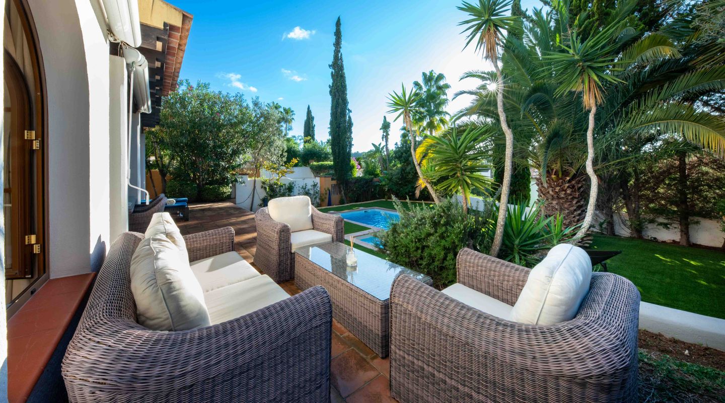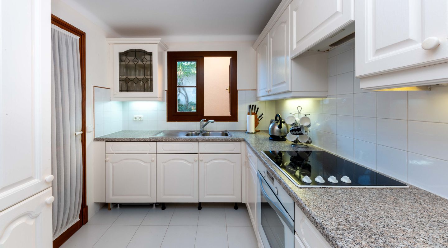 Outside, the property is surrounded by a low-maintenance Mediterranean garden, ideal for enjoying the island’s tranquil lifestyle with minimal upkeep. There is also a private garage and additional outdoor parking space for convenience.