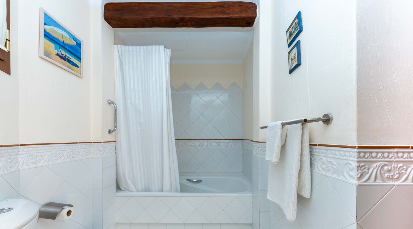 Maintained in its original state, the villa has been beautifully preserved and well cared for over the years. It features three bedrooms and two full bathrooms, including a master bedroom with en-suite bathroom on the lower level, a shared bathroom upstairs, and a guest toilet. The home boasts tall ceilings, wooden beams, and authentic Mallorcan character, creating an inviting and timeless atmosphere.