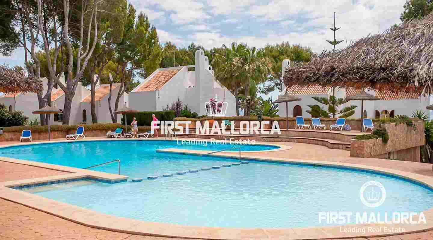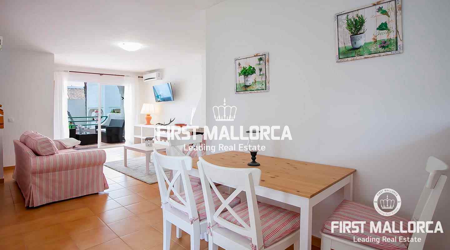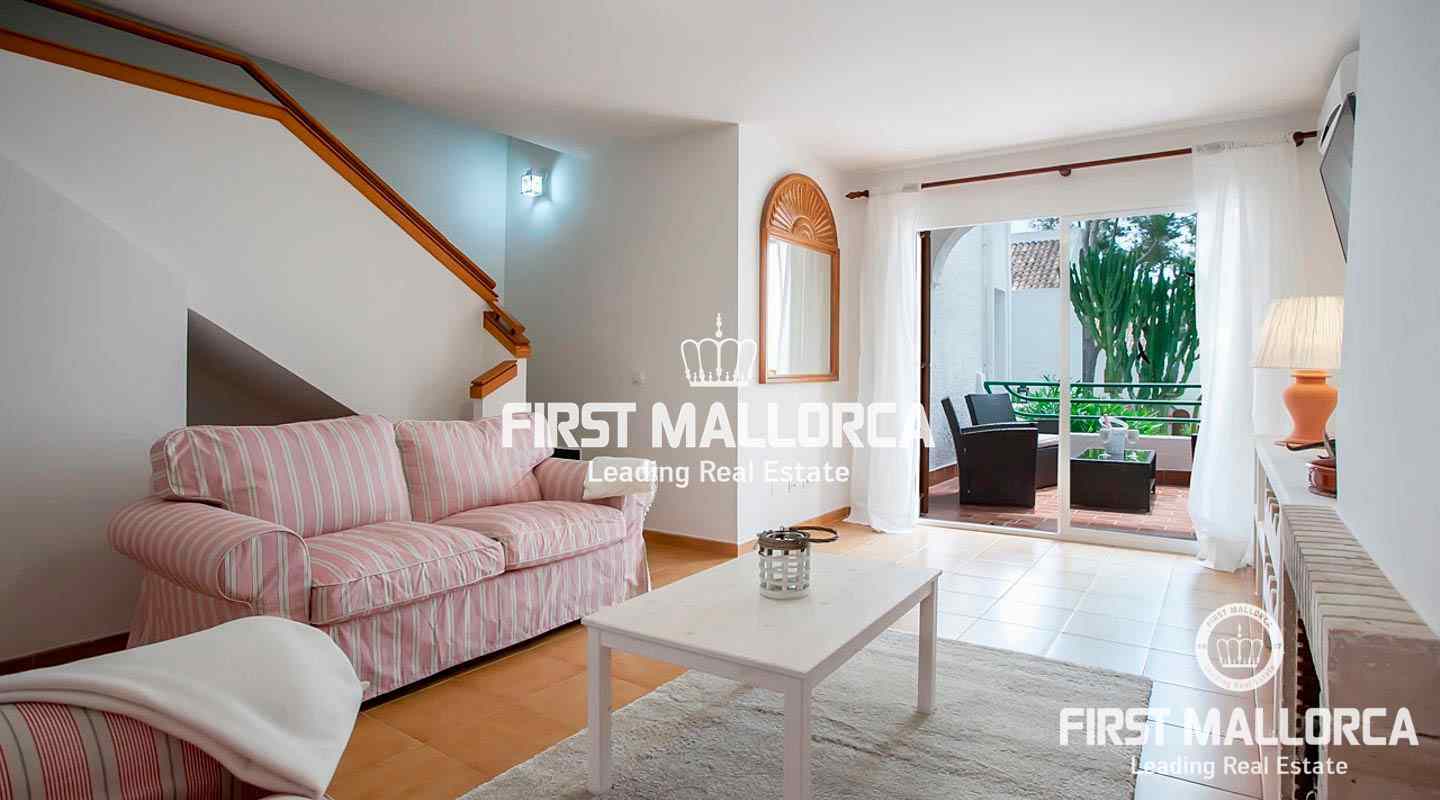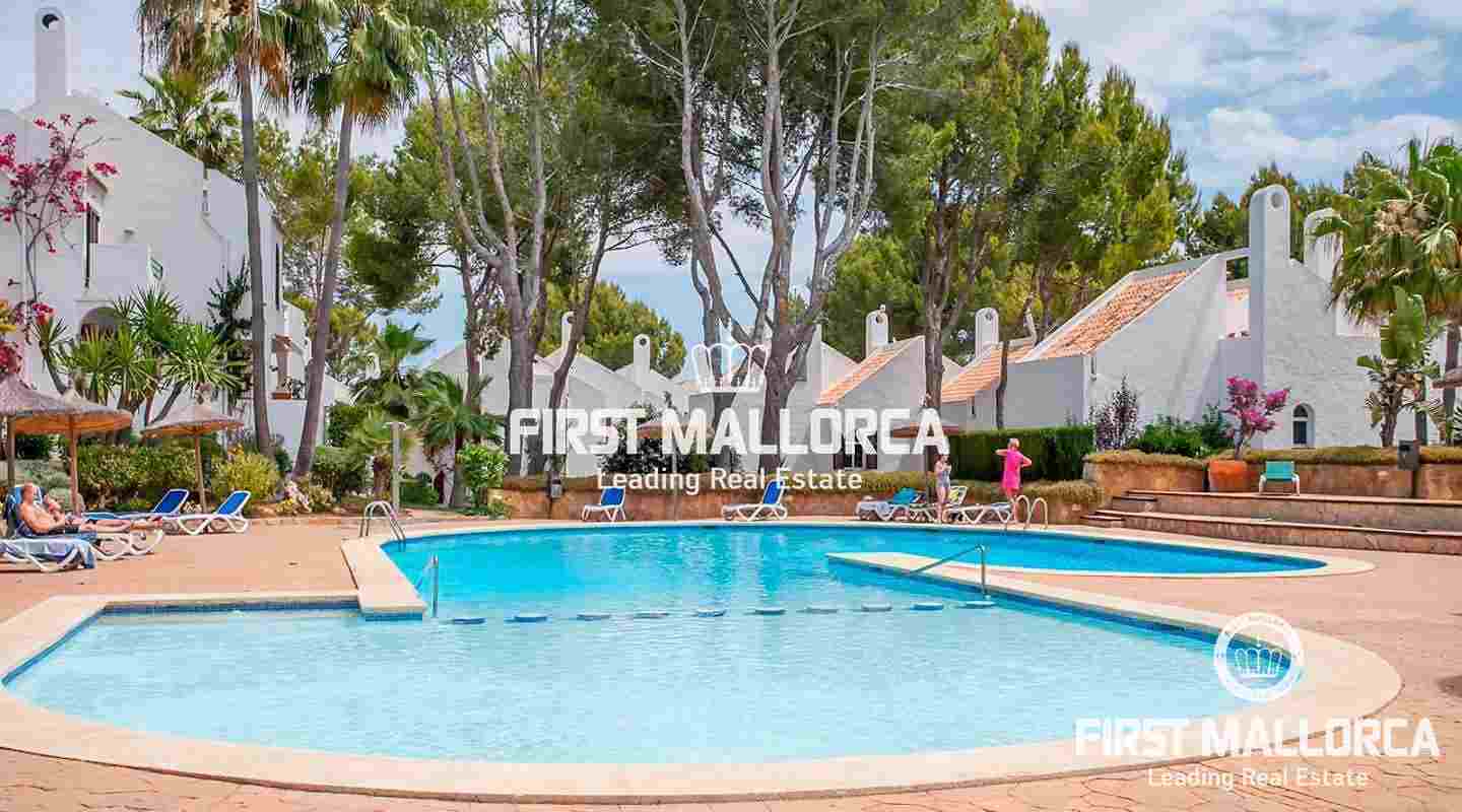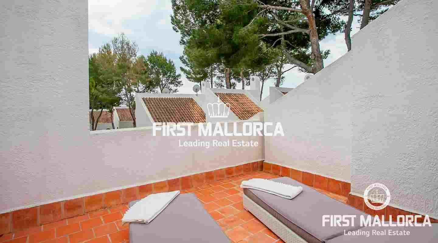 This terraced house is located in a beautiful Mediterranean development in the heart of Sol de Mallorca, just a short walk from the beach of Cala Dona.