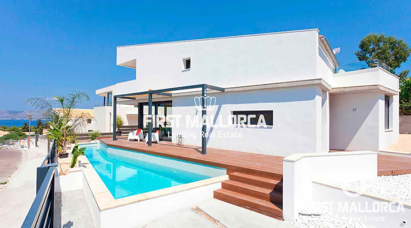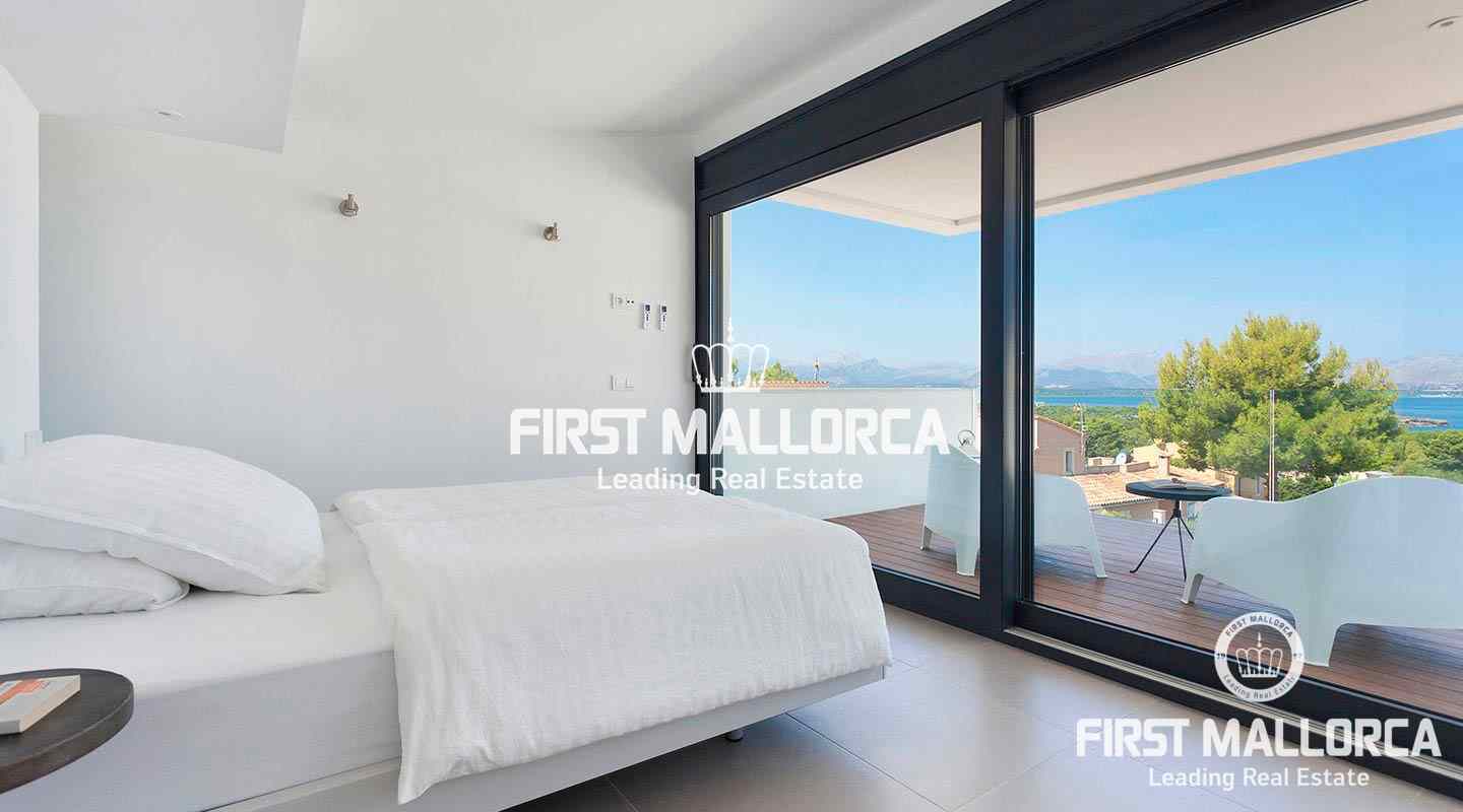 This recently finished, modern villa, located in the hills of Bonaire, enjoys stunning views of the bay of Pollensa and the mountains.