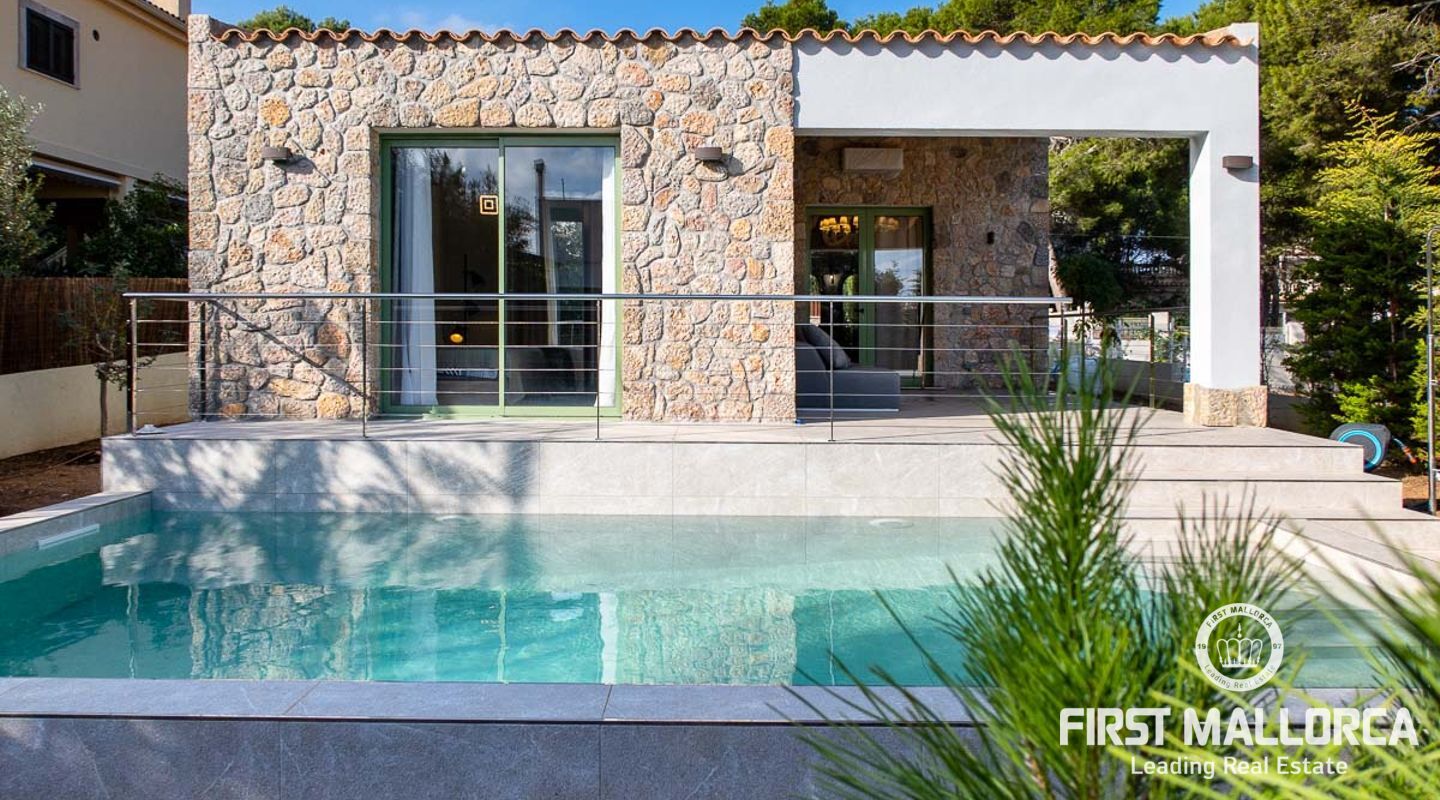 This newly built house near Port Adriano offers a perfect balance between modern and Mediterranean living style. It comes with a fully equipped and high quality kitchen, as well as an open and brightly designed living-dining area with access to the inviting outdoor space with sun terrace and pool.