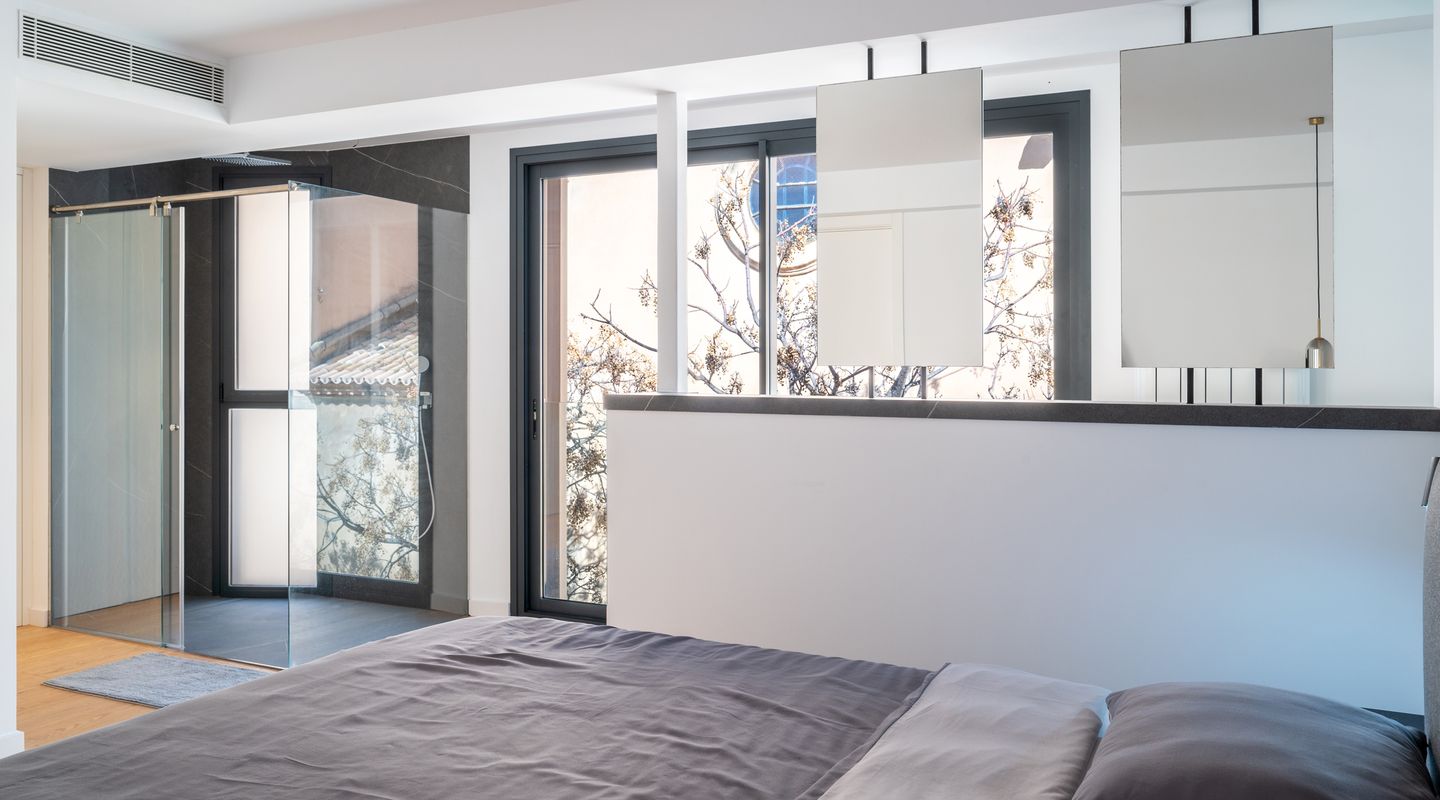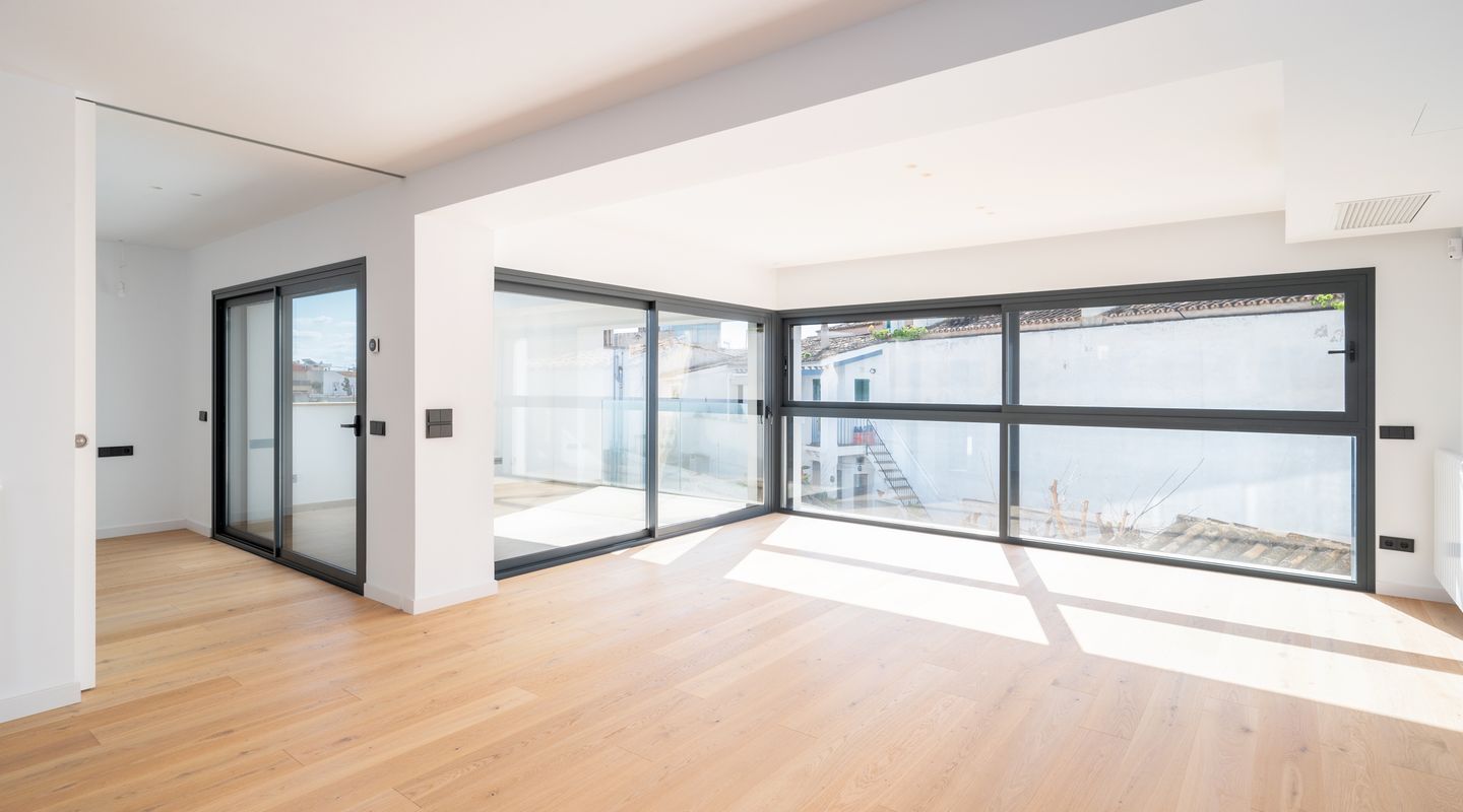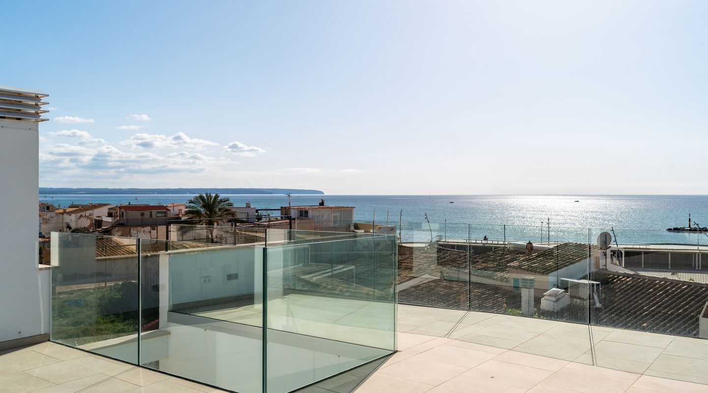 This spectacular townhouse has just been completely reformed and redistributed to the highest standards. The townhouse is situated in a privileged location close to the sea in Portixol/Molinar, in one of the most charming and popular areas of Palma. The townhouse with a total area of approx. 385 sqm has three floors, which are divided into a main house and a studio. The studio of approx. 70 sqm offers a living-dining room and all necessary connections to set up a kitchen, a bedroom with built-in wardrobe, a private bathroom and two terraces. The studio is perfect as a guest flat. In the other part of the first floor there are two double bedrooms with built-in wardrobes and two bathrooms. From this part of the house, a wide staircase leads to the second floor, which features an open light-flooded large living area with open kitchen, on this level you will also find the spacious master bedroom with dressing room, bathroom ensuite, as well as a guest toilet. On the upper floor you can access the large sun terrace of approx. 150 m2 with breathtaking views of the sea and the charming surroundings. An internal lift connects the whole house and a private garage are further advantages of this special property.